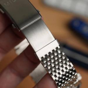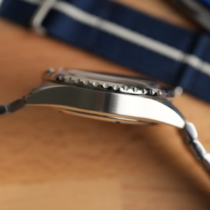 L’Ocean Star GMT Special Edition viene venduto in corredo con bracciale in acciaio e cinturino in nylon. Il primo ha lo stesso design a 11 elementi già visto su alcuni Tribute ma in questo caso è interamente satinato per adattarsi alla finitura della cassa. Personalmente trovo lo trovo bellissimo in questa configurazione, ma quel che colpisce ancora di più è la sua estrema morbidezza e flessibilità. Le maglie sono piuttosto corte e in più sono molto flessibili tra loro. La chiusura è ben fatta, con bracci interni solidi e la scatoletta satinata con logo inciso. Non ci sono fori per la microregolazione ma è presente un’estensione rapida a cremagliera, molto efficace nel garantire una vestibilità perfetta con le variazioni tipiche del polso durante la giornata. È un vero peccato che il bracciale non abbia delle anse a sgancio rapido, ma viene comunque fornito un attrezzo apposito.