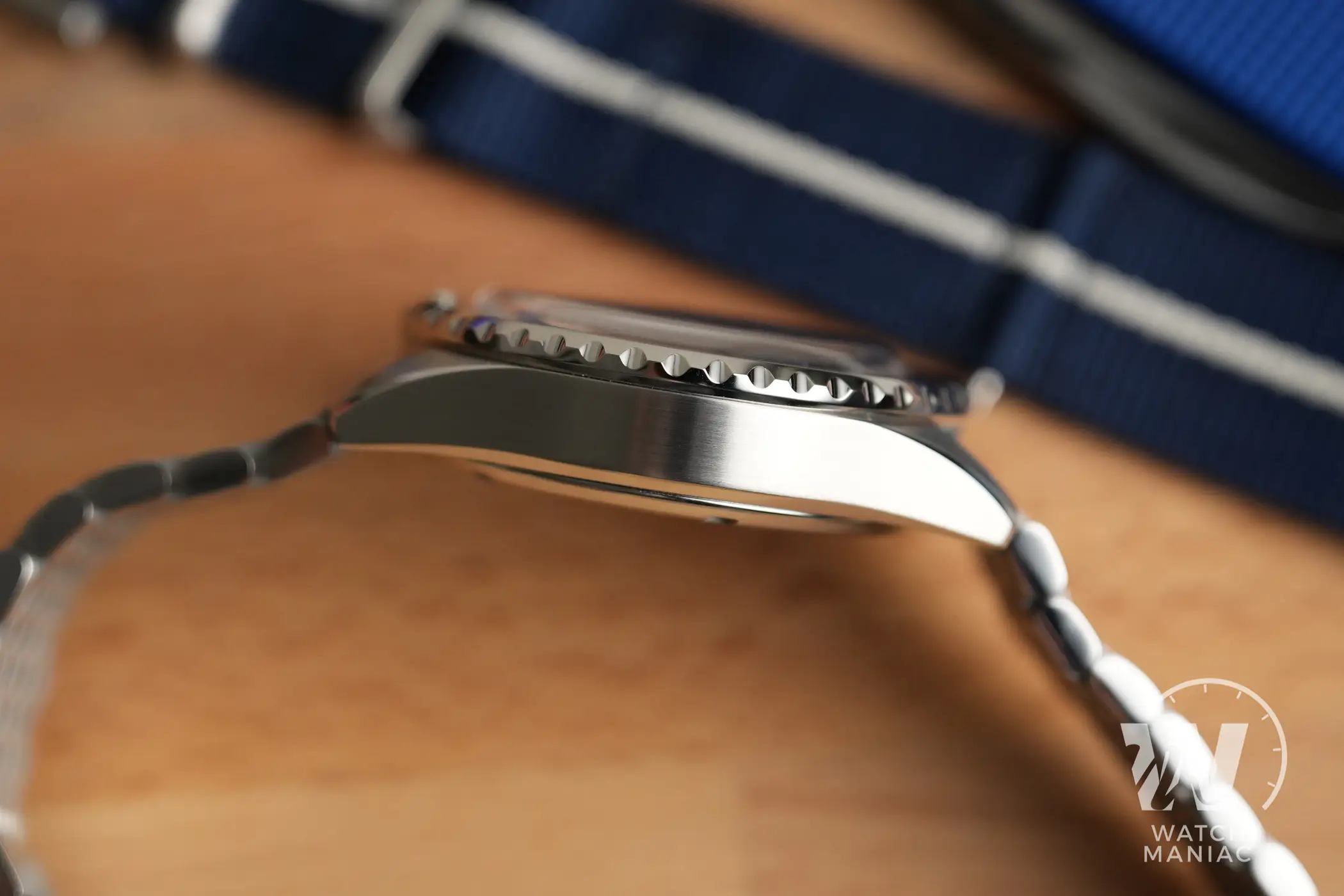L’Ocean Star GMT Special Edition viene venduto in corredo con bracciale in acciaio e cinturino in nylon. Il primo ha lo stesso design a 11 elementi già visto su alcuni Tribute ma in questo caso è interamente satinato per adattarsi alla finitura della cassa. Personalmente trovo lo trovo bellissimo in questa configurazione, ma quel che colpisce ancora di più è la sua estrema morbidezza e flessibilità. Le maglie sono piuttosto corte e in più sono molto flessibili tra loro. La chiusura è ben fatta, con bracci interni solidi e la scatoletta satinata con logo inciso. Non ci sono fori per la microregolazione ma è presente un’estensione rapida a cremagliera, molto efficace nel garantire una vestibilità perfetta con le variazioni tipiche del polso durante la giornata. È un vero peccato che il bracciale non abbia delle anse a sgancio rapido, ma viene comunque fornito un attrezzo apposito.