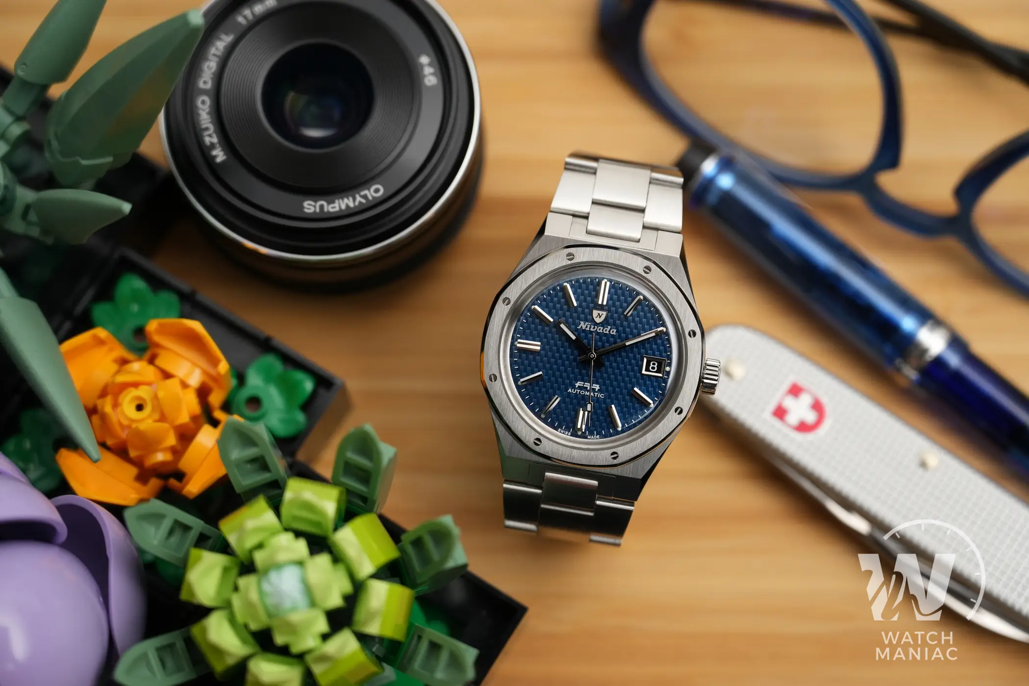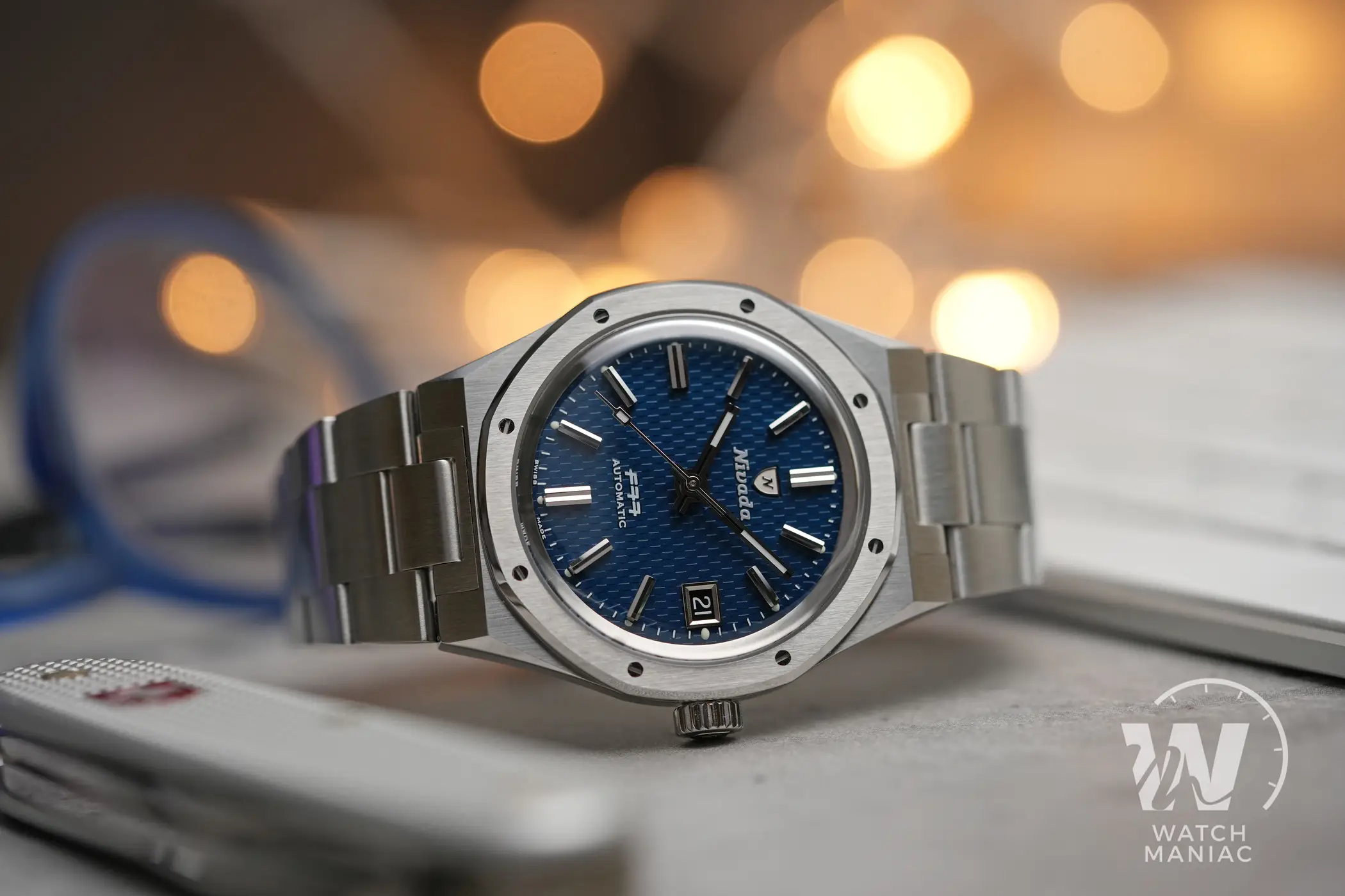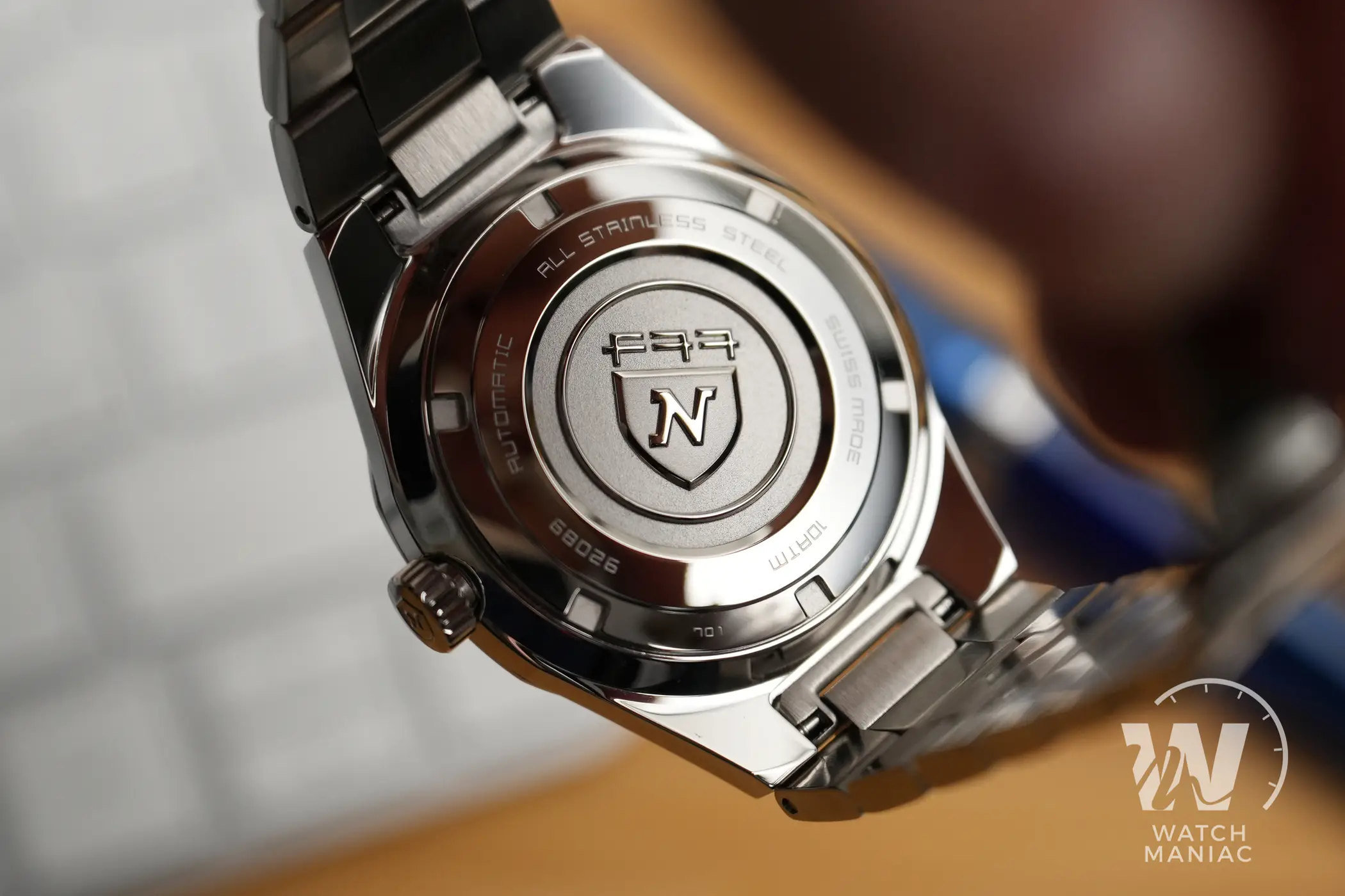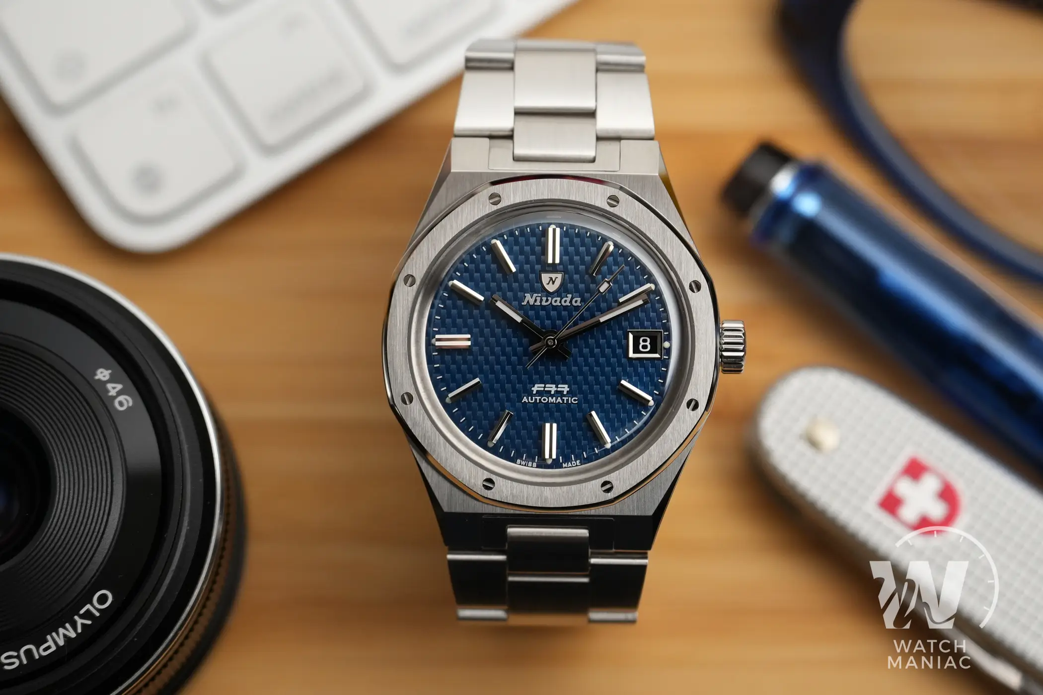 La moda degli sportivi anni ’70 con bracciale integrato ha influenzato le scelte di moltissimi marchi, praticamente in ogni fascia di prezzo. Alcuni non hanno potuto fare a meno di creare dei modelli partendo da zero, dato che in passato o non esistevano ancora o non avevano mai inserito a catalogo modelli di questo genere. Altri però hanno puntato sulla riedizione di loro referenze vintage, ridando vita a dei design ormai archiviati da tempo. Nivada Grenchen, che dal rilancio ha costruito gran parte della sua attuale fortuna sulla riedizione di referenze storiche, a inizio 2023 ha ridato vita al suo F77. L’approccio nel riproporre questo design in chiave moderna è stato molto conservativo, dato che persino il diametro è rimasto lo stesso dell’orologio presentato nel 1977.