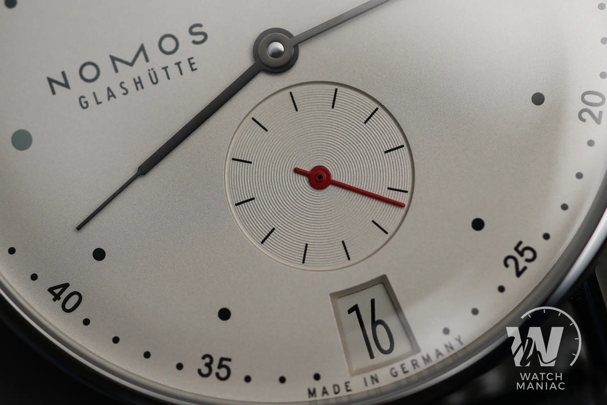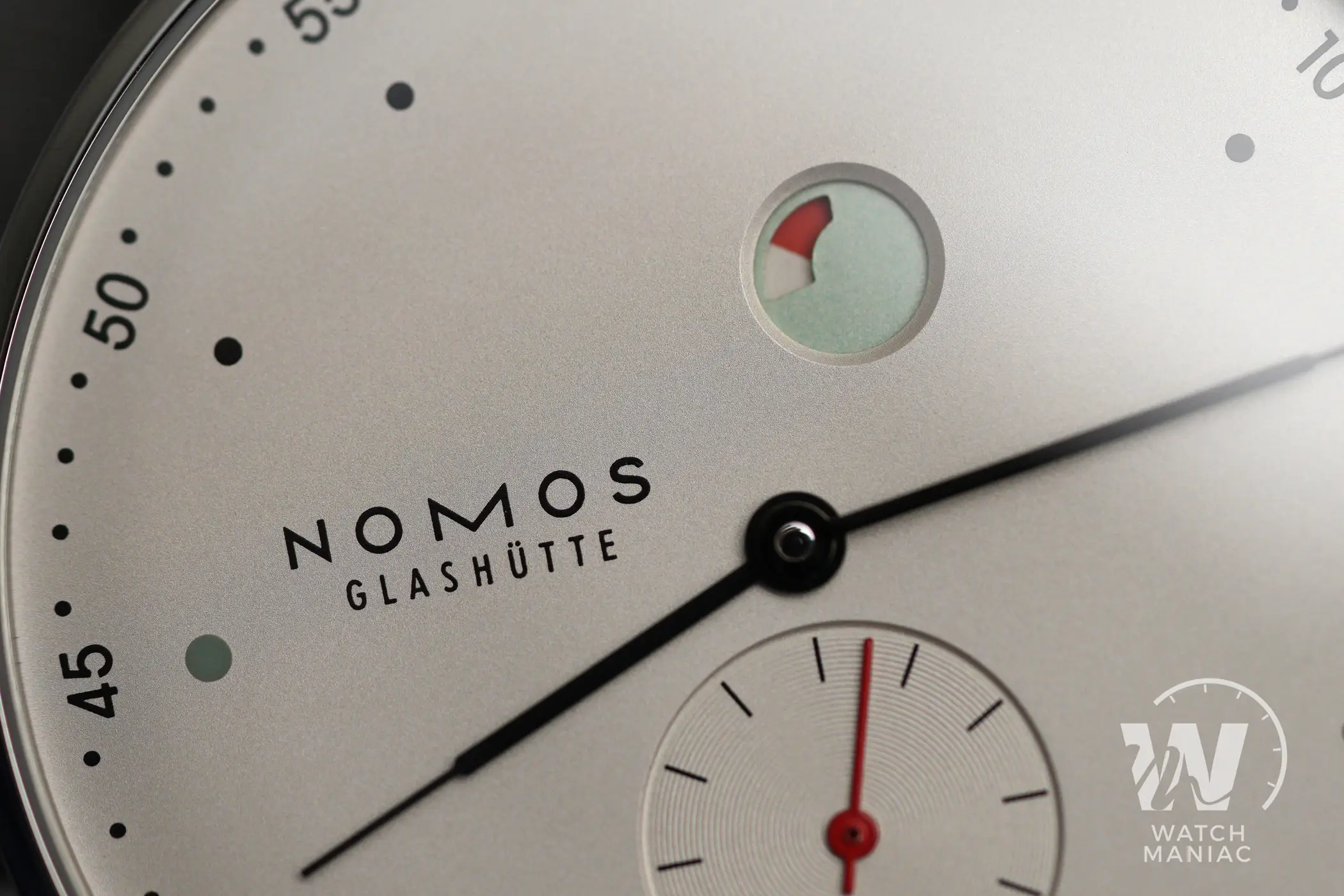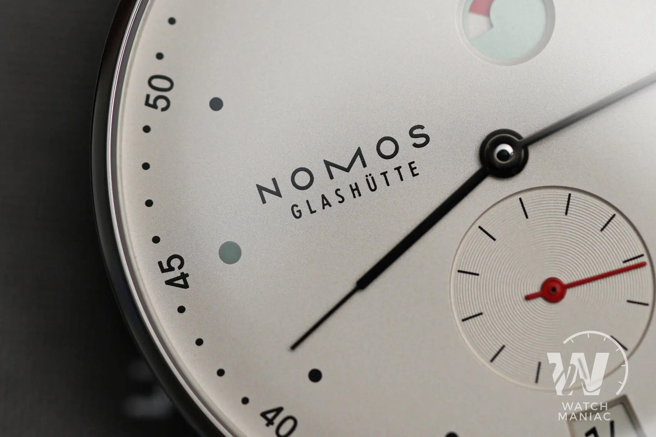 Il Metro è stato presentato nel 2014 come reinterpretazione in chiave moderna dello stile classico di Glashütte. Il primo modello all’interno di questa linea è stato proprio l’1101, nato dalla mente del designer berlinese Mark Braun e grazie al quale Nomos ha ottenuto vari premi e riconoscimenti. Il quadrante, nella classica colorazione argento/champagne molto frequente nel catalogo del produttore tedesco, presenta una grafica molto diversa rispetto a quella del Tangente, la più nota del marchio. Gli amanti della simmetria dovranno certamente guardare altrove, ma uno degli elementi più caratteristici di questo modello è proprio la posizione inusuale in cui sono posizionati il logo, a ore 9, e l’indicatore della riserva di carica in alto. Si tratta di un sistema decisamente ingegnoso di rappresentare lo stato di carica del movimento. In pratica il rosso diventa sempre più evidente man mano che l’autonomia residua si riduce. A carica completa, invece, il rosso dell’indicatore è completamente nascoso.