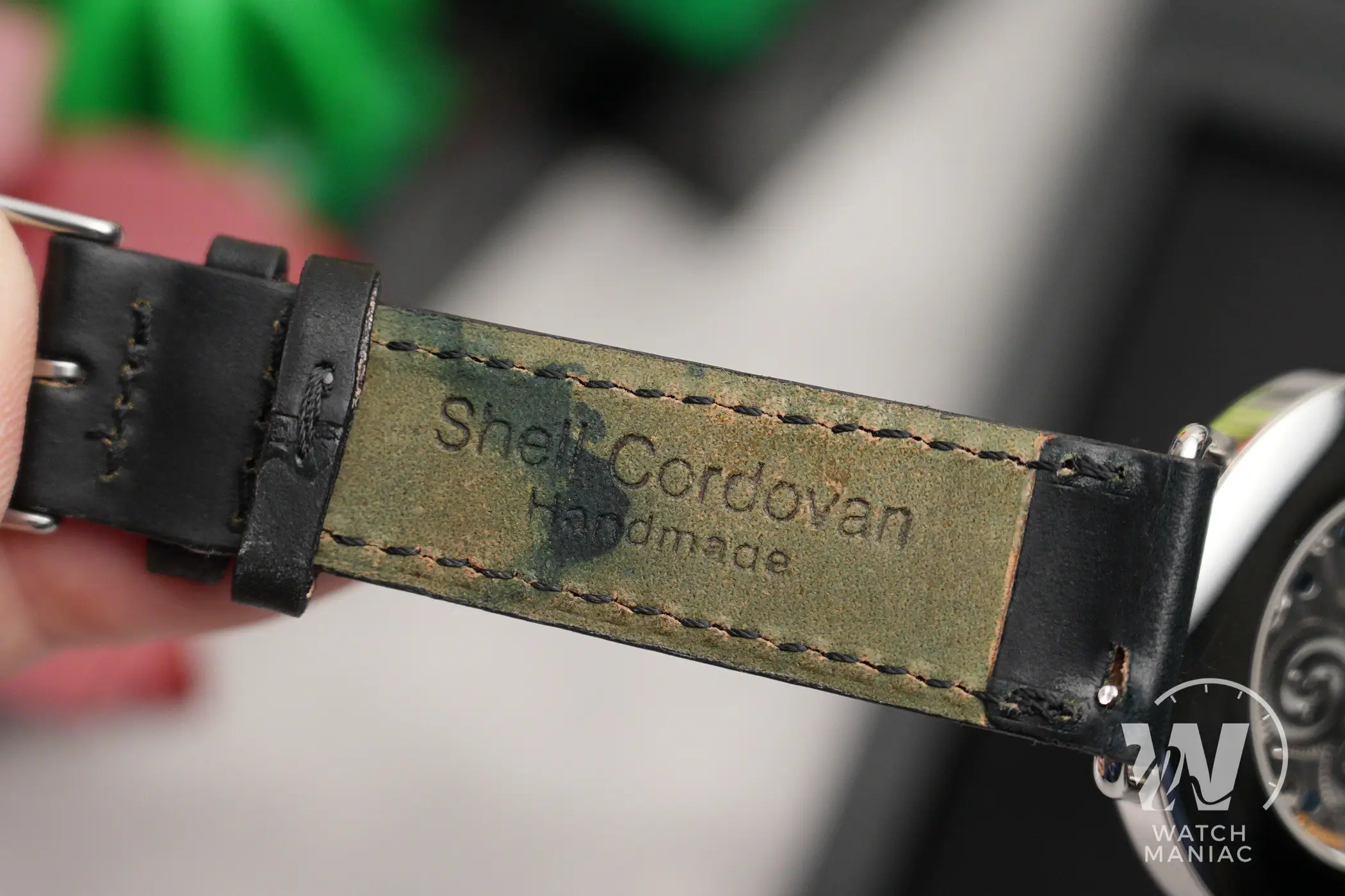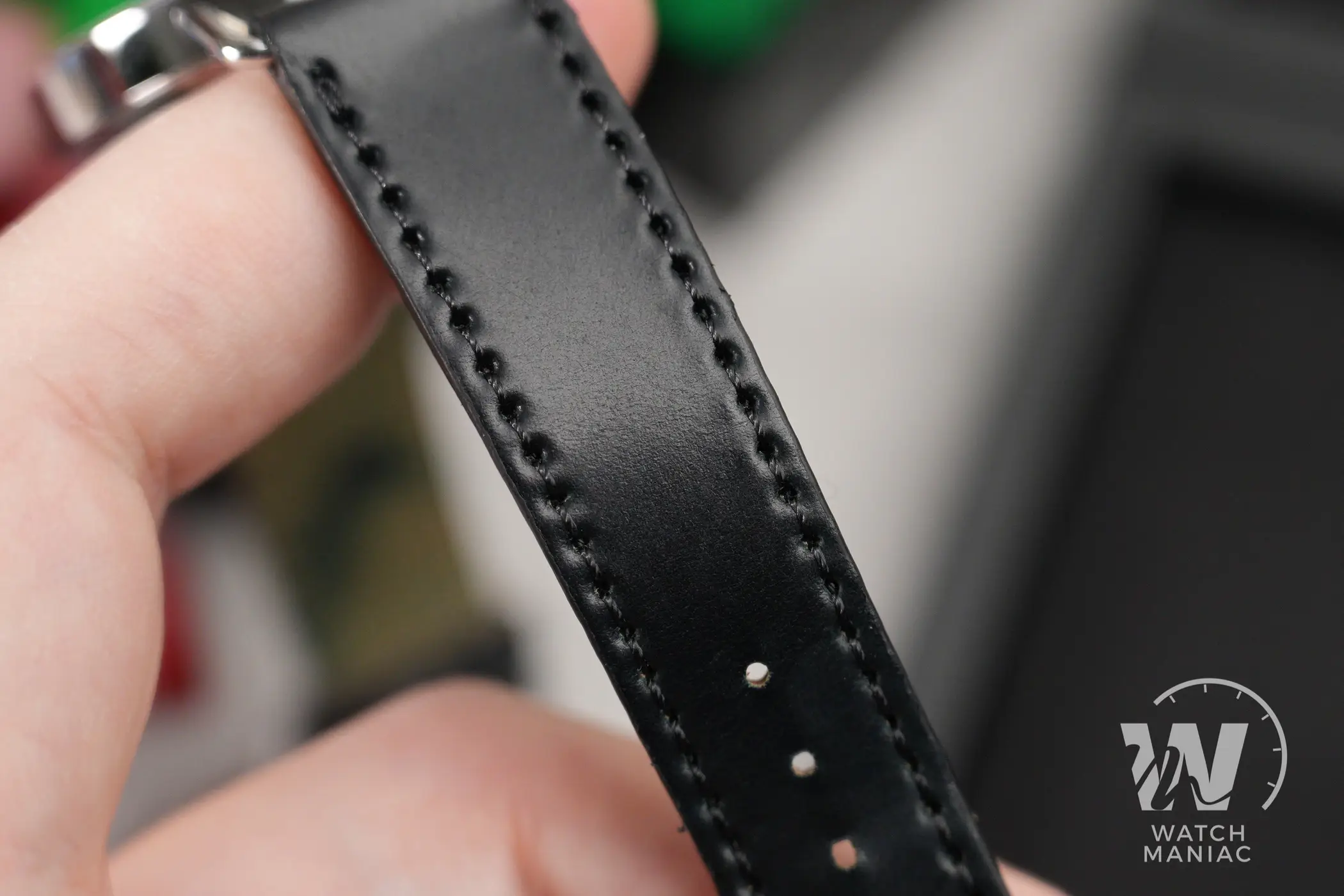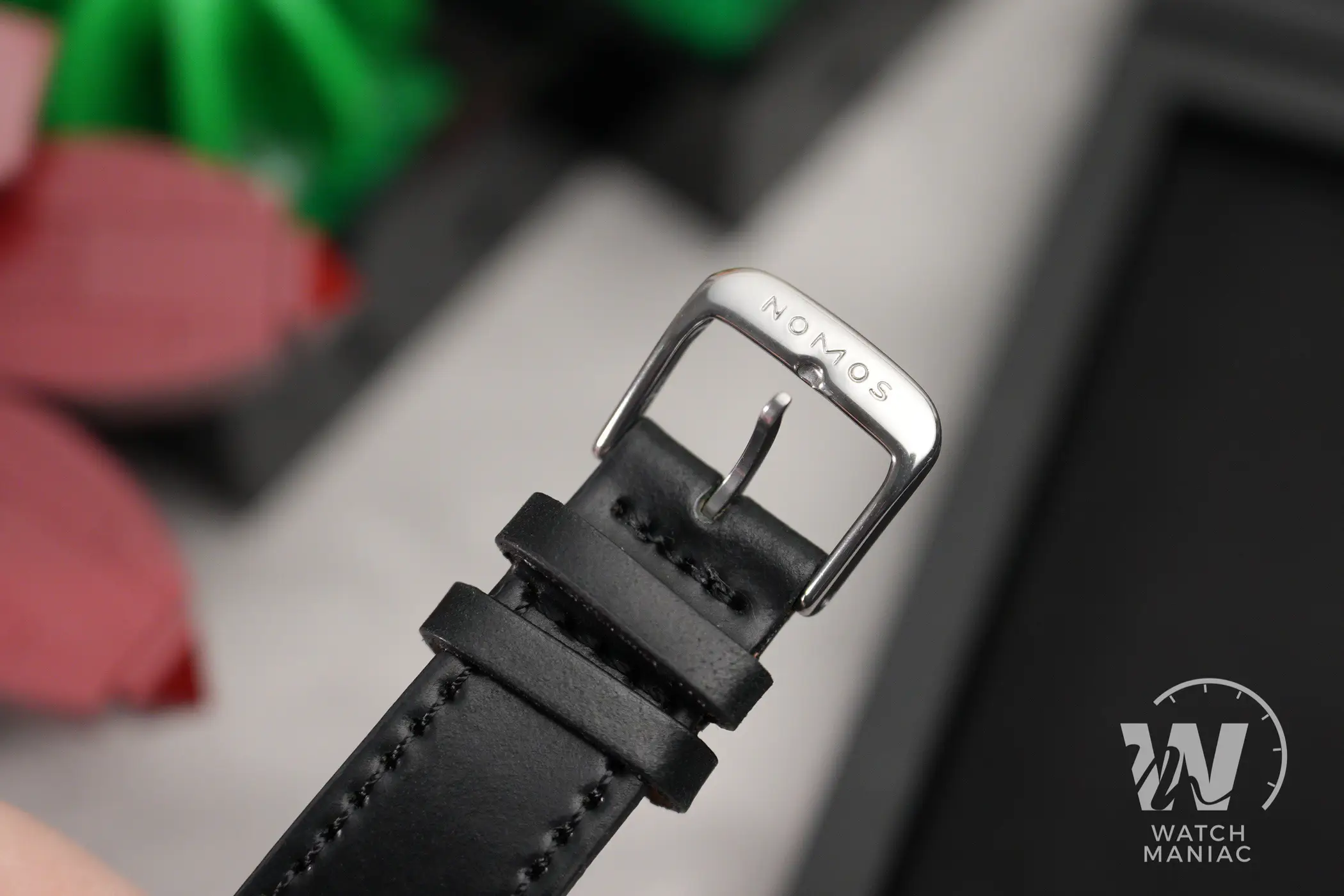 Sul Nomos Metro 1101 il cinturino di serie è quello classico in cordovan nero semilucido con cuciture in tinta. La qualità è sempre altissima, anche perché oltre ad essere un materiale molto flessibile, è anche decisamente resistente. La fibbia è di tipo tradizionale ad ardiglione, con finitura lucida e marchio inciso.