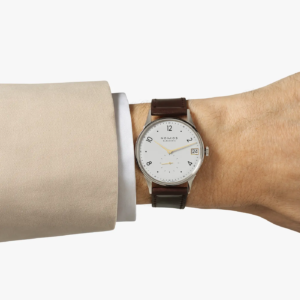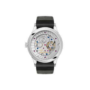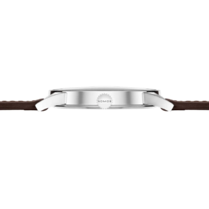 Per la prima volta nella linea Minimatik compaer la finestra della data, che qui è contornata da una cornice dorata. Questo dettaglio è legato alla presenza del calibro DUW 4601 introdotto nel 2024, una meccanica di manifattura prodotta in totale indipendenza da parte di Nomos, con carica manuale, autonomia di 52 ore e selezione rapida della data. I designer si sono anche concentrati sul carattere per il datario, che è stato ottimizzato per garantire una facile lettura dei numeri. La ciliegina sulla torta è poi rappresentata dalla splendida decorazione visibile attraverso il fondello, con una costolatura a raggi di sole con i raggi che partono dal centro del bilanciere, il componente più importante di tutto il movimento.