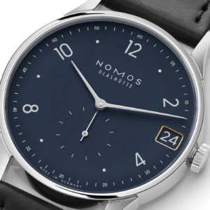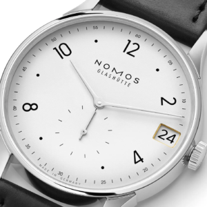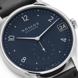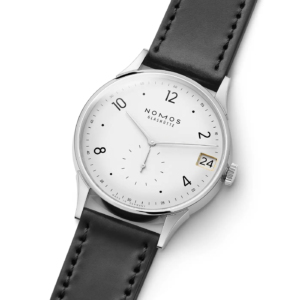 Il Nomos Minimatik 39 Datario è disponibile in tre versioni, ognuna con un carattere unico, tutte accomunate dalla presenta della cornice dorata intorno alla finestra della data: