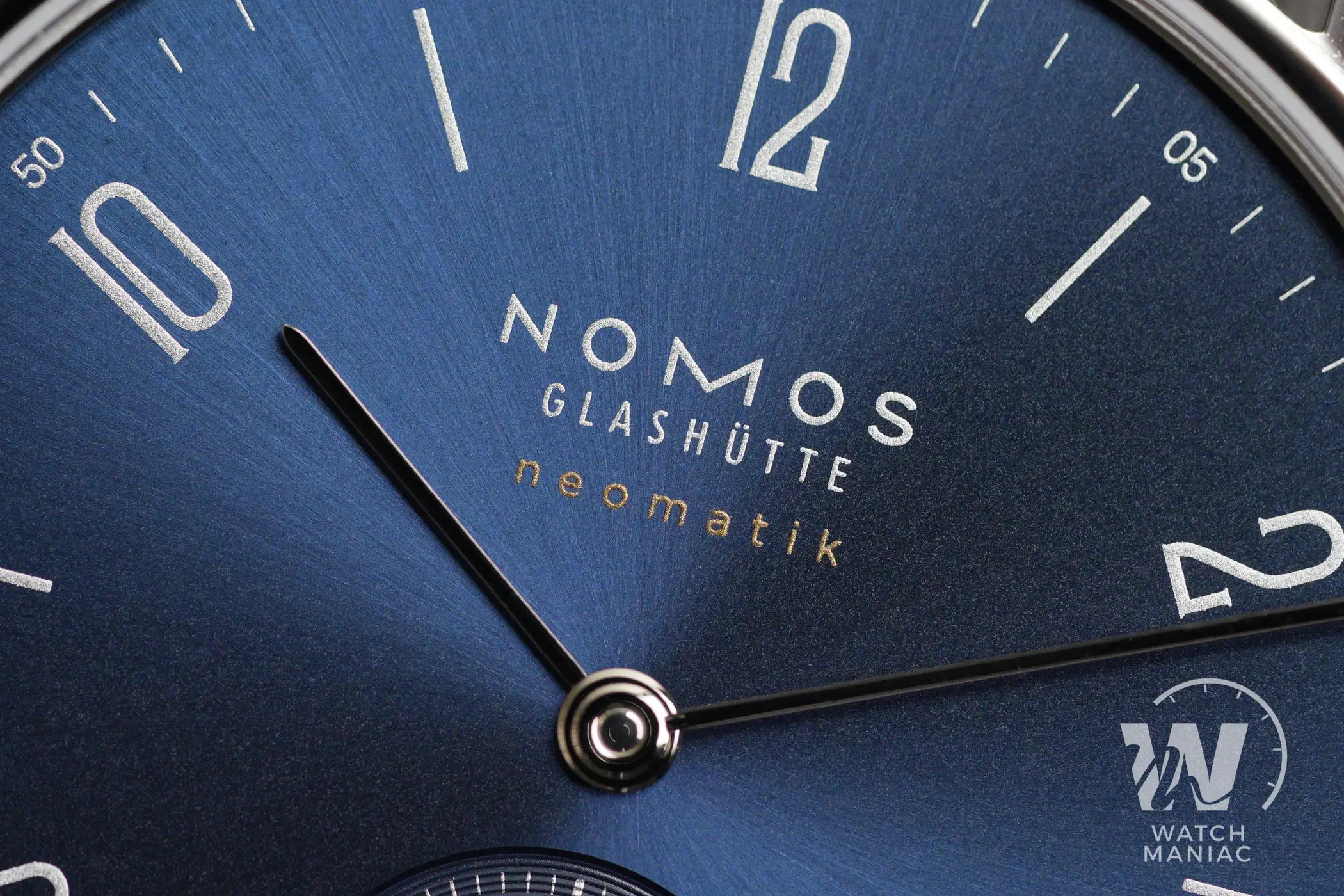 Nel Tangente Blu Oro invece c’è un magnifico quadrante blu intenso con lavorazione soleil che, a quanto pare, Nomos sta iniziando ad utilizzare un po’ più frequentemente dalla presentazione dei Club Sport in poi. La parola “oro” nella denominazione di questa variante può sembrare strana, ma si riferisce al processo di produzione dei quadranti. Sul disco in ottone, subito dopo aver realizzato la tipica raggiera della finitura soleil, viene applicata una sottile placcatura d’oro. È proprio per questa ragione che il quadrante ha una colorazione così profonda e intensa.