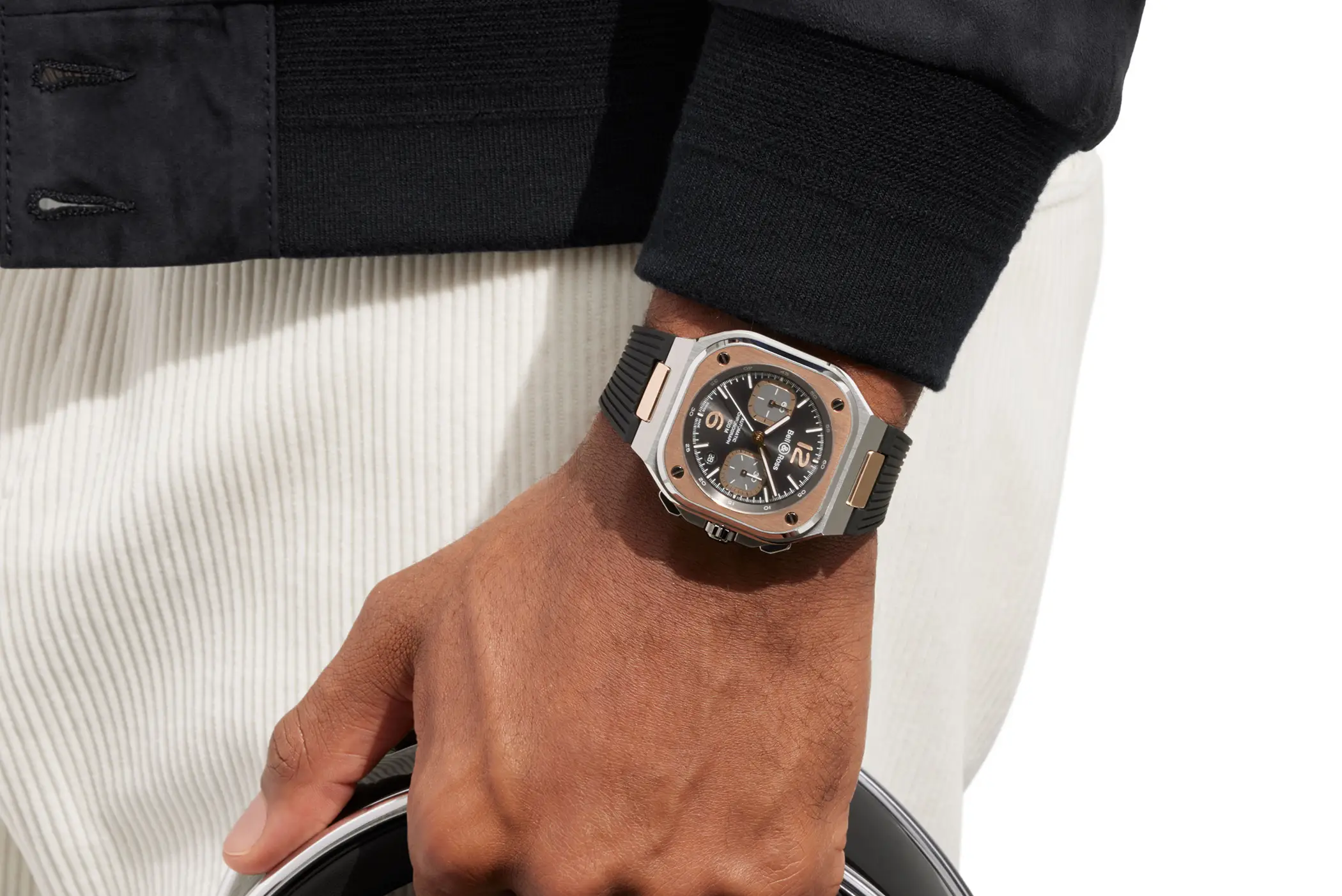 A Watches and Wonders Bell & Ross ha mostrato in anteprima alcune novità molto interessanti, sia per quanto riguarda l’aspetto estetico che per i materiali adottati. Il BR 05, il modello che reinterpreta con uno stile urbano il design tipicamente squadrato del marchio, rinnova il proprio abito con l’aggiunta di ben 3 varianti in ceramica nera. Arriva anche il BR 05 Chrono Grey Steel & Gold, che all’acciaio abbina anche l’oro sui dettagli di cassa e bracciale. E poi, dulcis in fundo, c’è il BR-X5 Black Titanium, con la sua cassa elaborata e i contenuti tecnici di alto livello. Esaminiamoli nel dettaglio.
