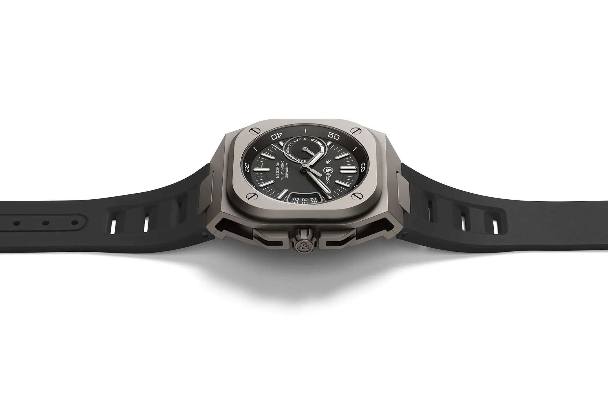 All’interno della cassa da 42mm di larghezza è alloggiato il calibro BR-CAL326, una meccanica basata sul Sellita SW510 (che a sua volta condivide gran parte del design con la famiglia Valjoux 77xx) con 60 ore di riserva di carica e frequenza a 28.800a/h. Il tutto rimane visibile dal fondello con finestra in vetro al centro.