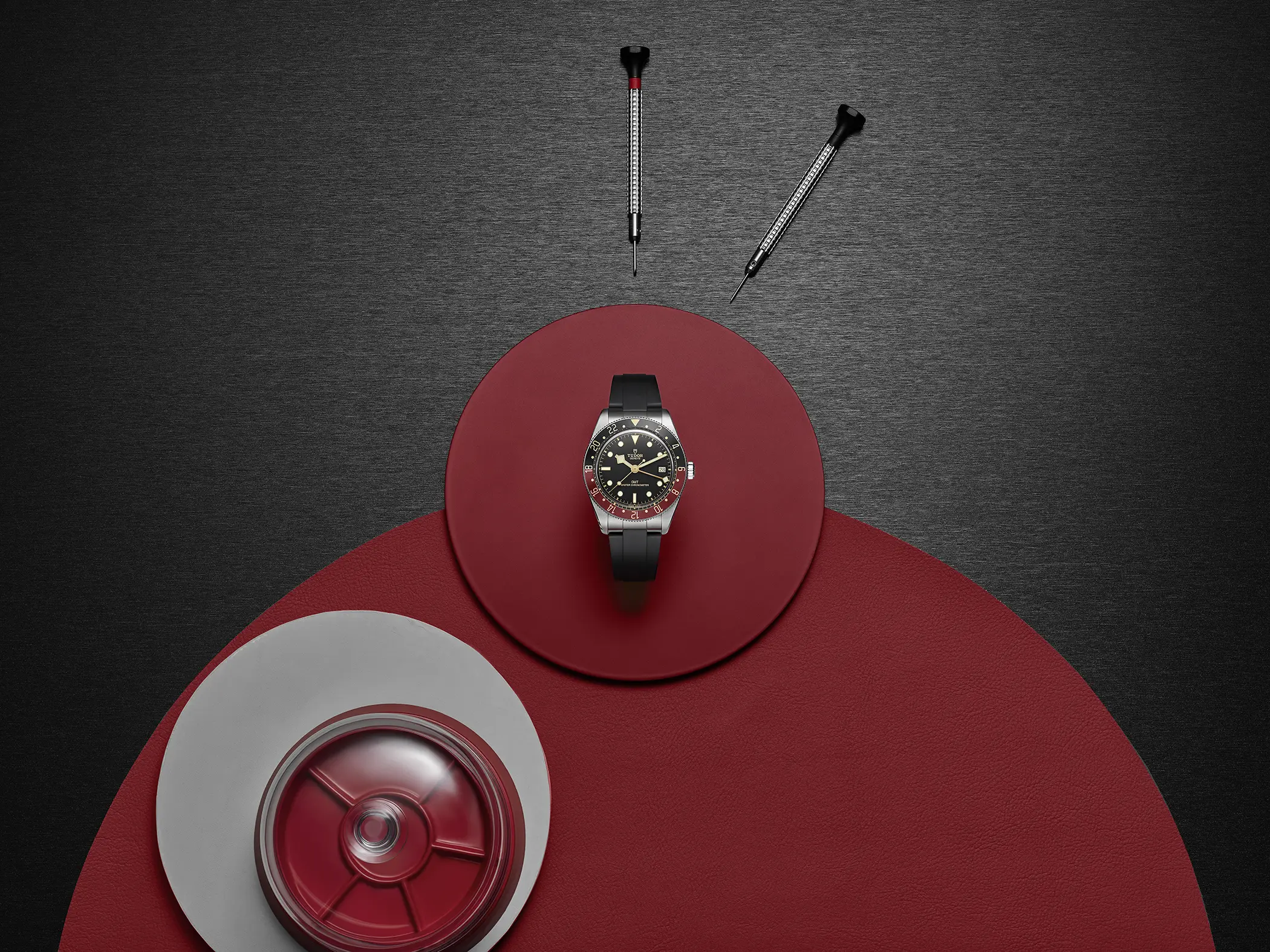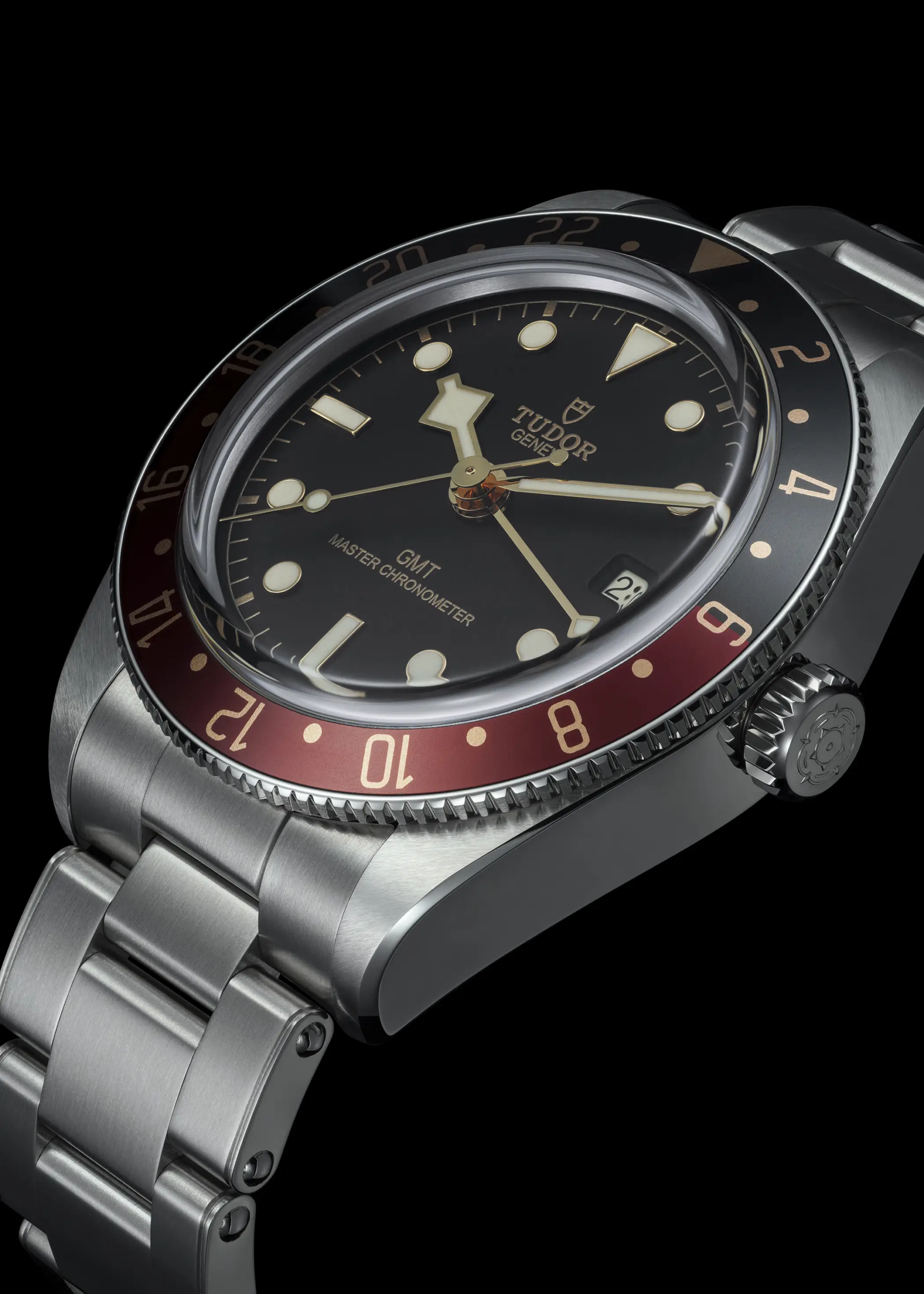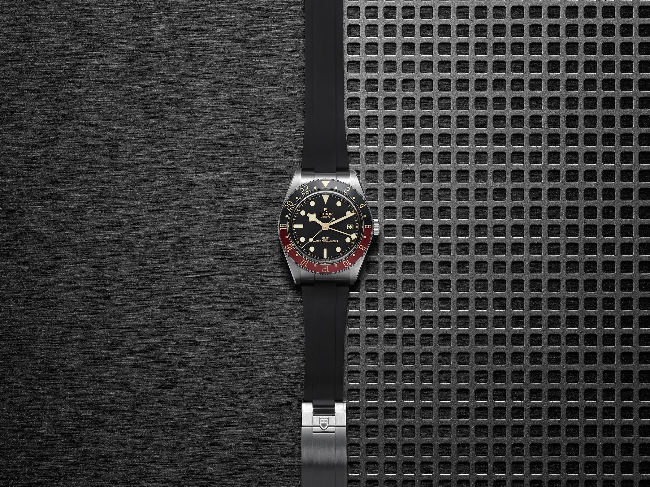 La ghiera riprende colorazioni chiaramente ispirate al passato di Tudor (e anche di Rolex), enfatizzate ancora di più dalla finitura semilucida sull’inserto, un dettaglio distintivo rispetto alle altre referenze della linea Black Bay. Ma i progettisti non si sono concentrati ovviamente solo su proporzioni e design. All’interno del nuovo Black Bay 58 GMT c’è il calibro MT5450-U prodotto da Tudor, con certificazione COSC e METAS, in grado di resistere a campi magnetici fino a 15.000 Gauss grazie alla spirale in silicio. La riserva di carica è di 65 ore ed è presente la funzione GMT in configurazione “flyer” (con regolazione rapida della sfera delle ore). Il BB58 GMT può essere acquistato con bracciale in acciaio a 3 elementi oppure con cinturino in gomma e, in entrambi i casi, è prevista la chiusura T-Fit con microregolazione rapida integrata.