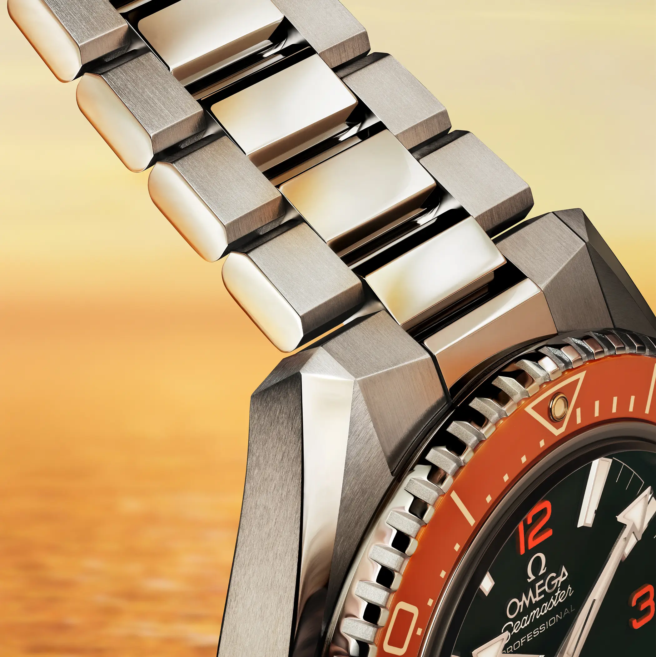 Il salto dalla terza alla quarta generazione è netto. Il nuovo Omega Planet Ocean, pur rimanendo ancorato al carattere che ha reso celebre questo modello (incluso il distintivo color arancione adottato in alcune configurazioni) è cambiato profondamente. Se le fonti di ispirazione per il design del 2005 erano stati i Seamaster 300 degli anni ’60, in questo caso i progettisti hanno preso spunto dai diver prodotti negli anni ’80 e ’90. Questo risulta evidente dalle linee tese della cassa, che perde le consuete anse ad elica di Omega ma guadagna un look ancora più moderno e aggressivo. Inoltre anche il bracciale è stato pensato per integrarsi ancora meglio al design della cassa.