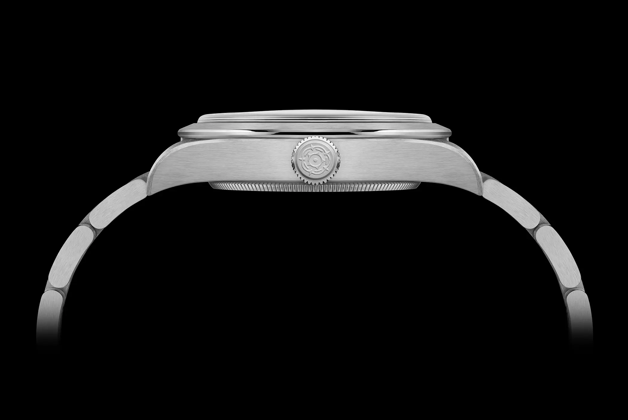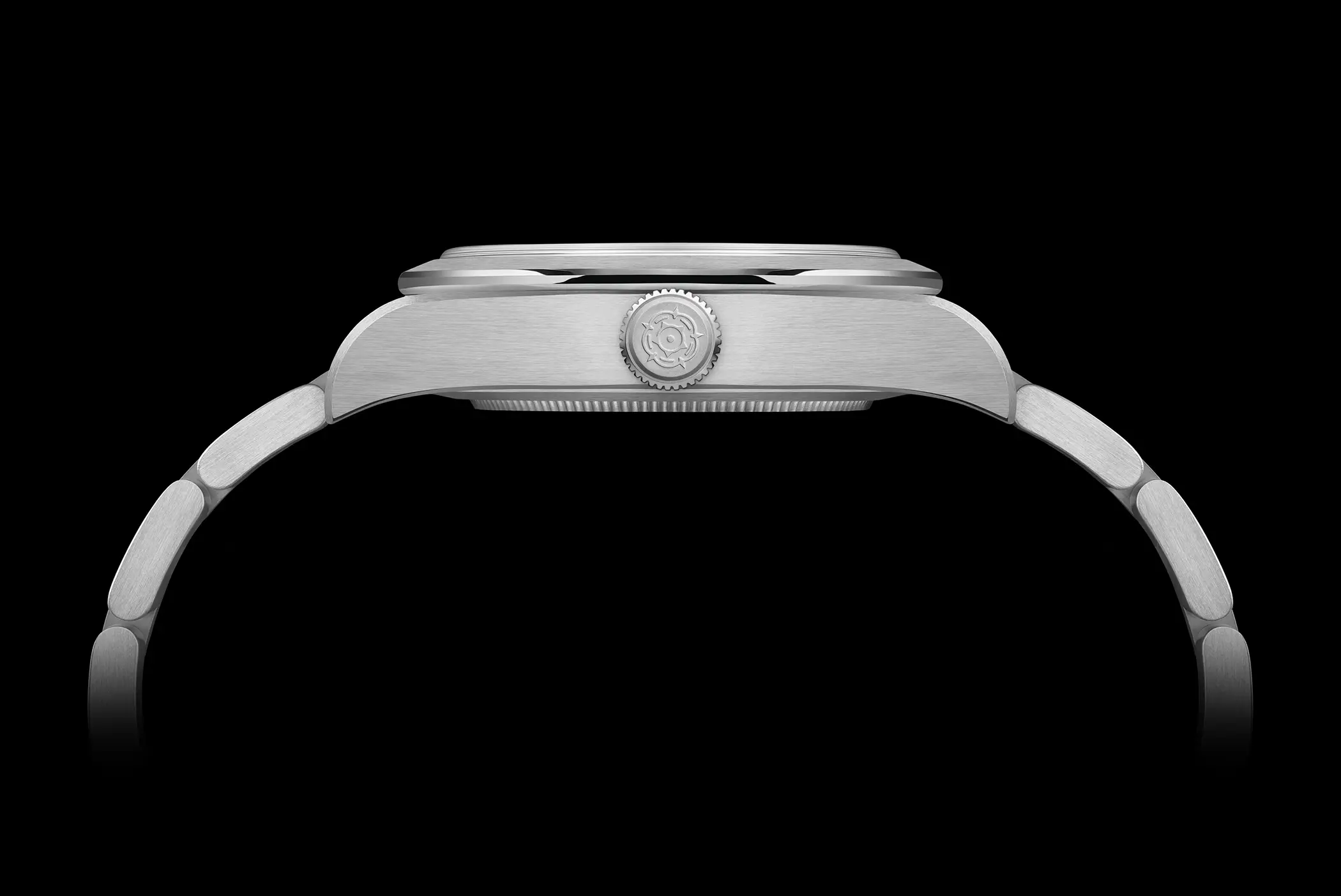 Ora la linea Ranger si arricchisce e viene presentata la versione con cassa da 36mm che si aggiunge a quella già esistente con diametro di 39 mm. Per mantenere le corrette proporzioni, rispetto alla versione da 39 mm, La cassa da 36 mm ha uno spessore diminuito che passa dai 12 agli 11 mm. Anche la larghezza delle anse viene ridotta dai 20 mm per la versione da 39 ai 19 mm per la versione da 36. Il materiale utilizzato resta, per entrambe le versioni, l’acciaio 316L con finitura satinata che conferisce al segnatempo un carattere più tecnico e adatto allo spirito degli orologi da spedizione. Alcuni elementi, come il bordo della lunetta, sono lucidi per mettere in risalto le linee della cassa.