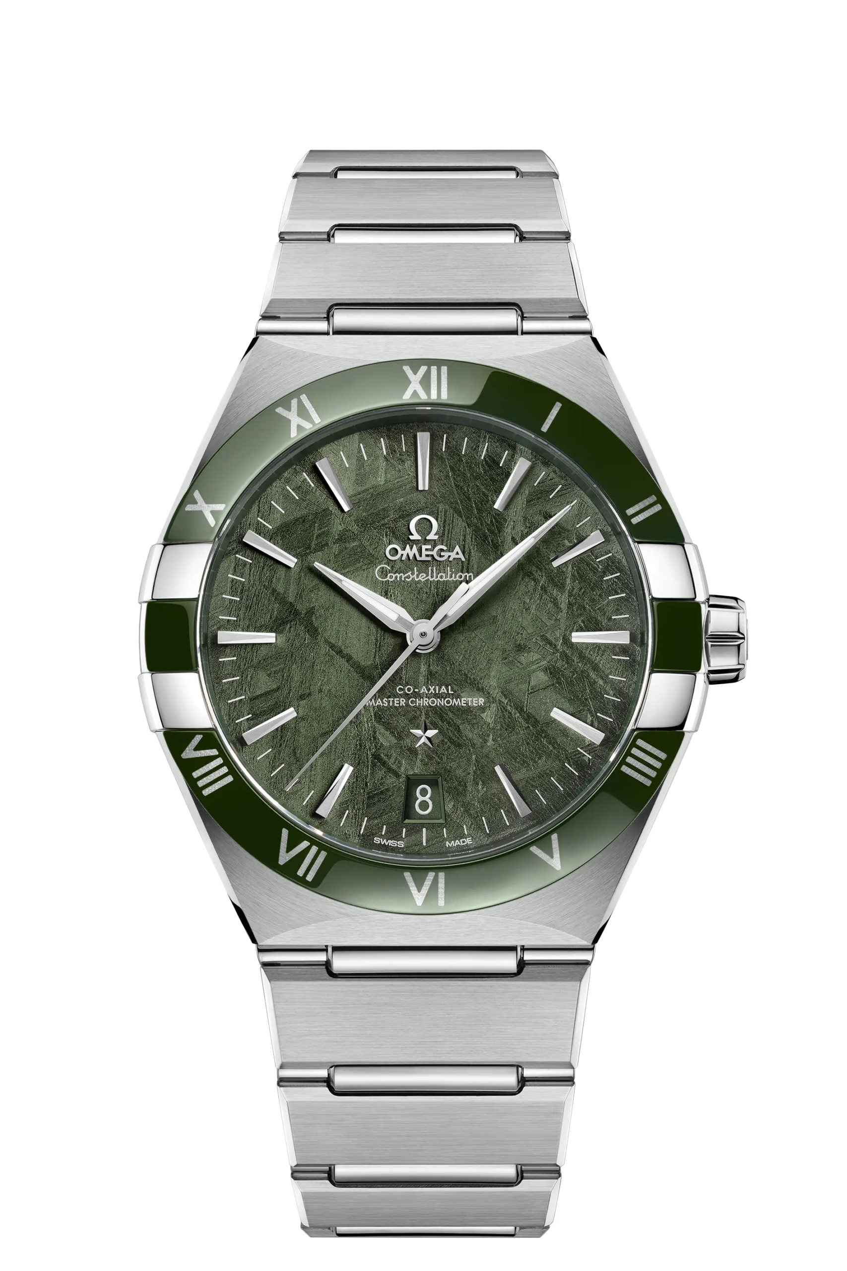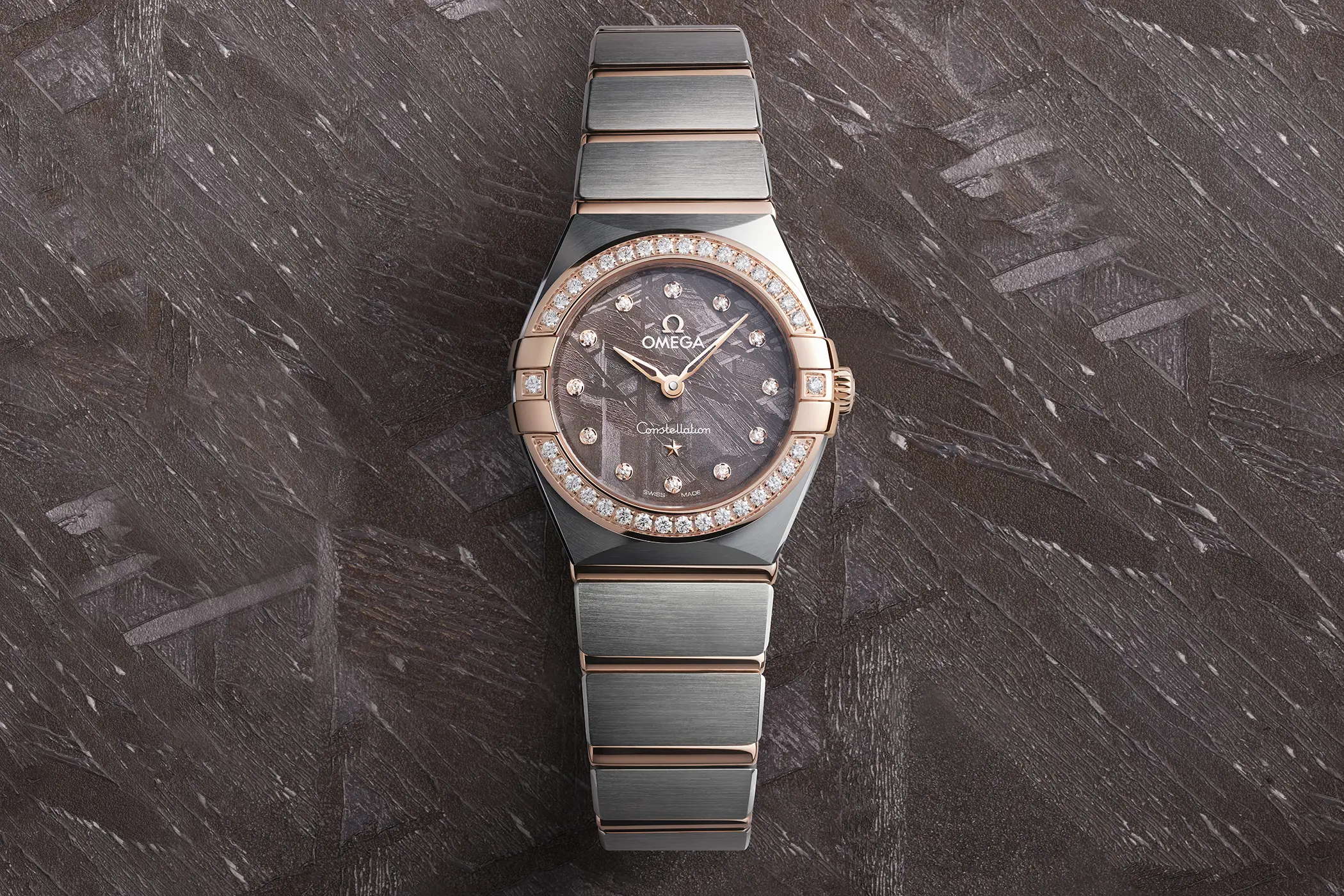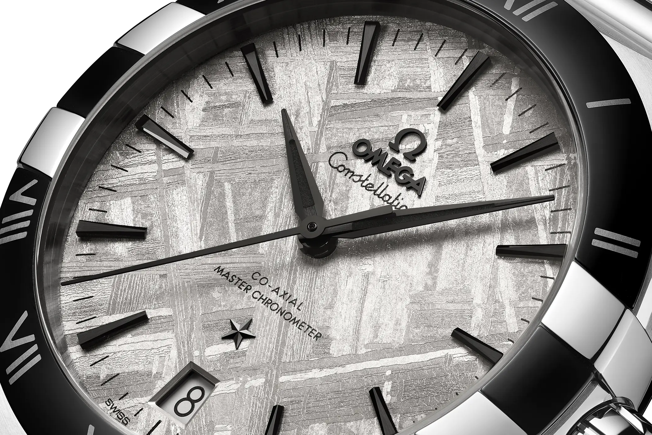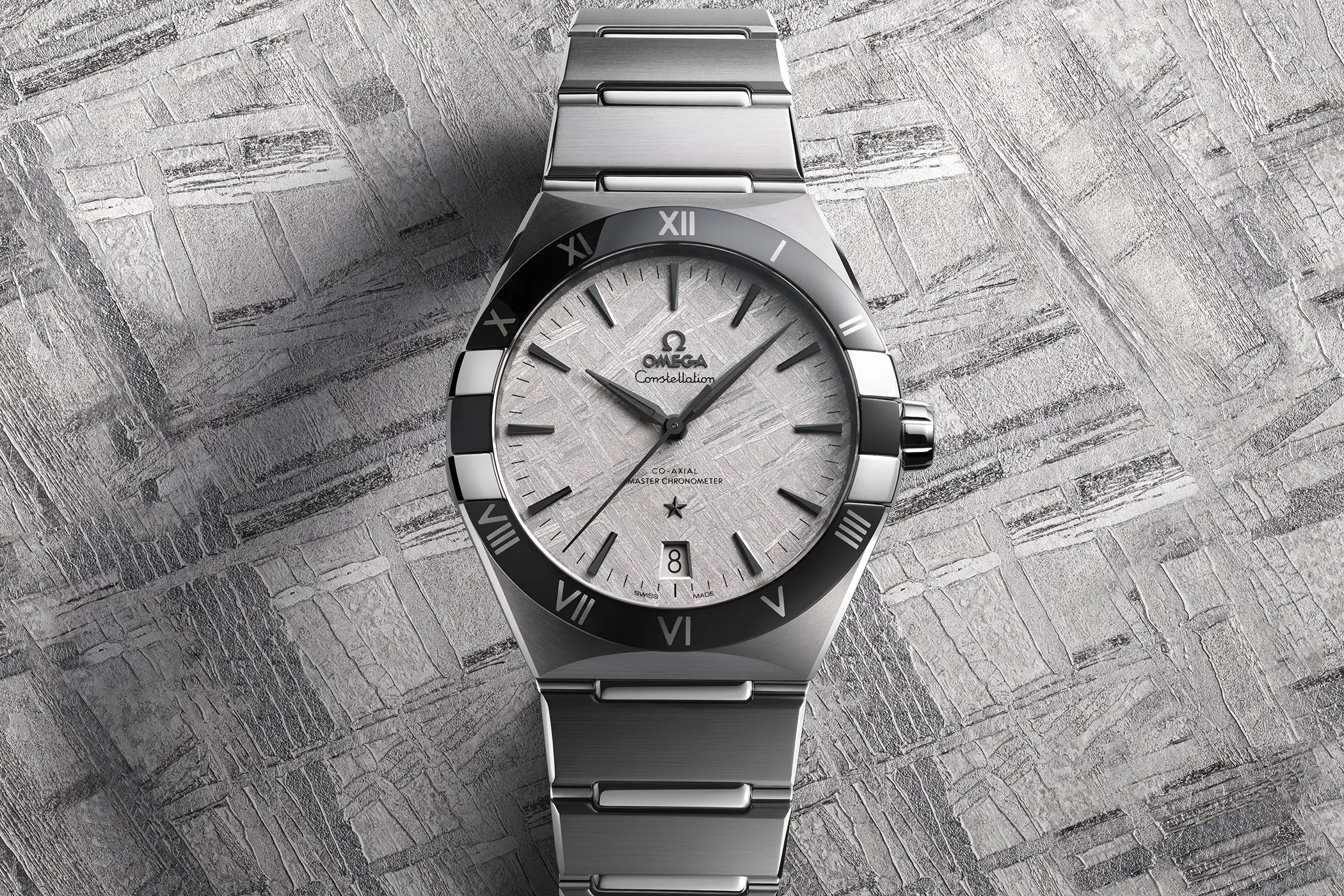 Omega ha presentato 20 nuove referenze che vanno ad arricchire la famiglia Constellation, quella che con il suo nome si è ispirata, fin dalle sue origini, al movimento preciso e ordinato delle costellazioni nel cielo. È ormai da alcuni anni che stiamo vedendo utilizzare sempre più spesso dei dischi di meteorite per la realizzazione dei quadranti. Una scelta che accomuna tanti marchi differenti tra loro, da microbrand come Zelos e Direnzo ad alcuni dei più grandi colossi dell’orologeria mondiale come Rolex. Il primo modello di Omega ad aver utilizzato questo materiale è lo Speedmaster “Apollo Soyuz” del 2010 in edizione limitata (Ref. 311.30.42.30.99.001), seguito successivamente dal più recente Speedmaster Dark Side of the Moon tuttora disponibile a catalogo (Ref. 311.63.44.51.99.001).