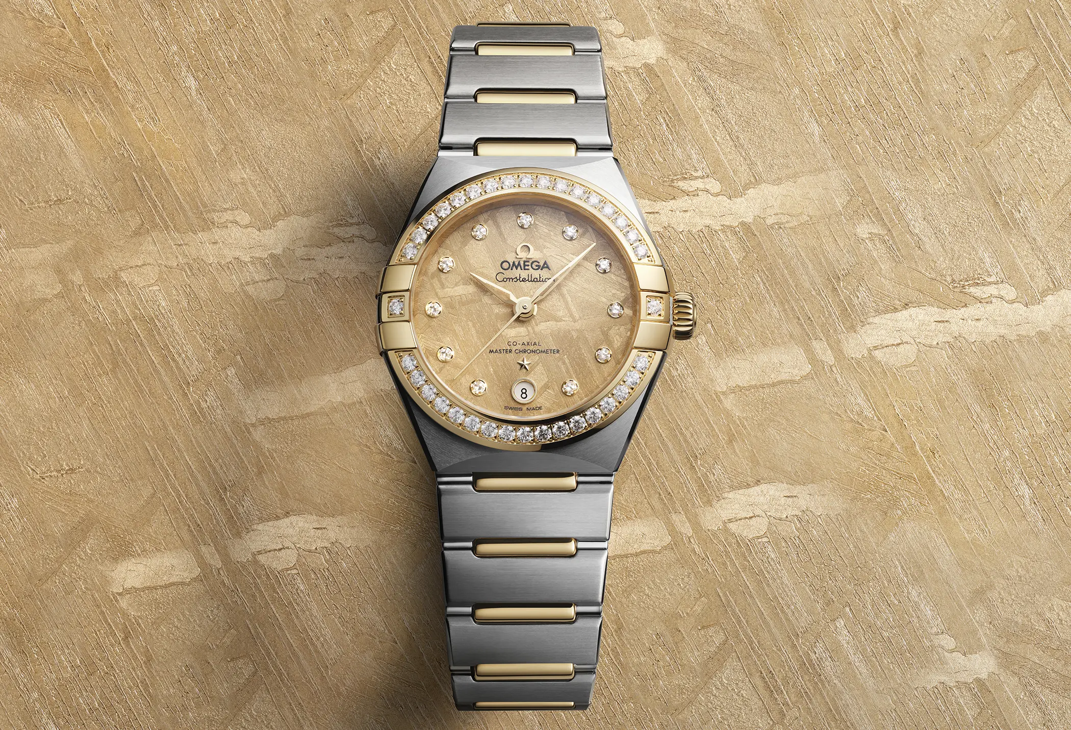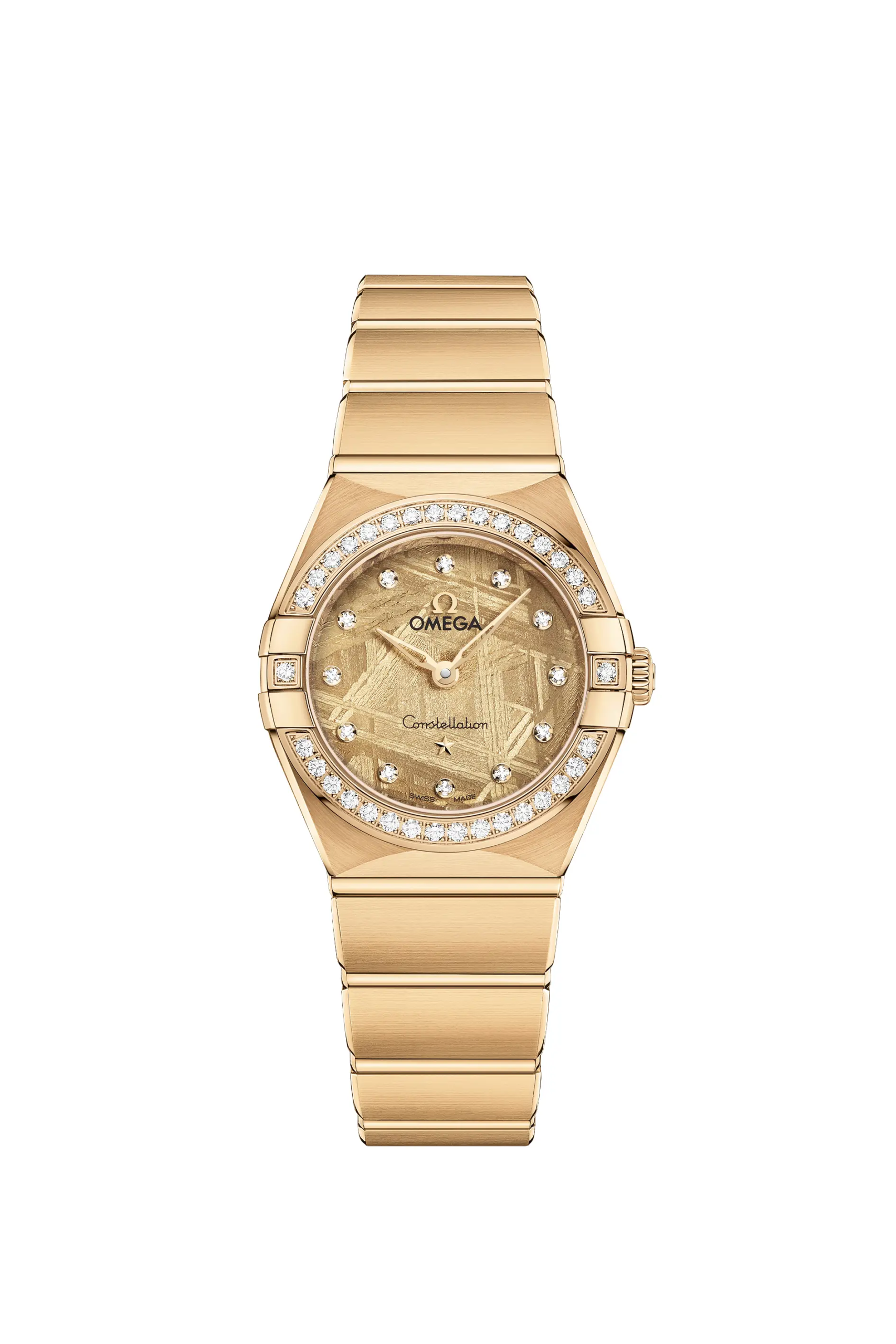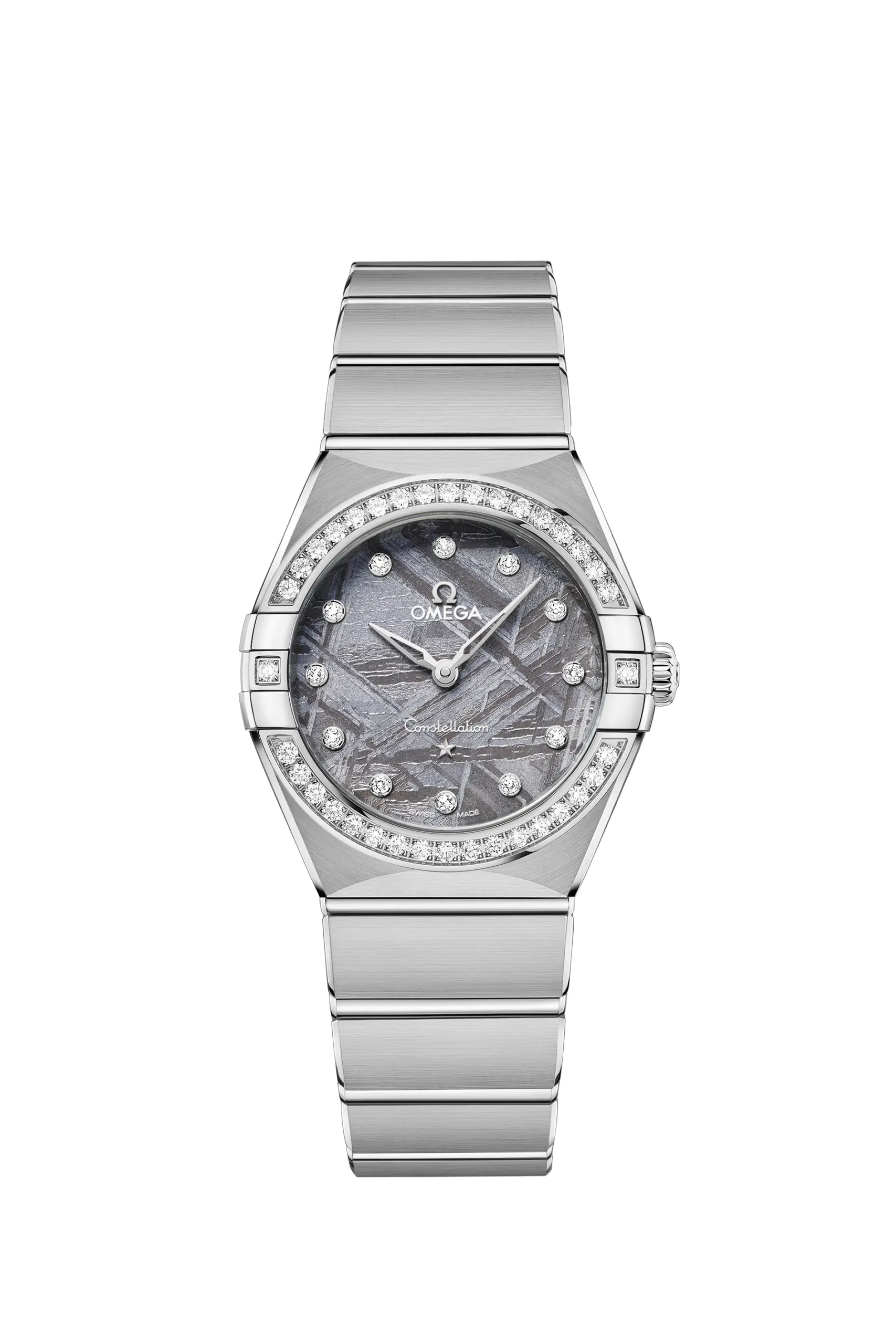 Il meteorite Muonionalusta è il più antico tra tutti quelli scoperti finora sulla Terra, con un’età stimata che va oltre i 4,5 miliardi di anni. La composizione metallica è responsabile del suo tipico aspetto irregolare, che varia anche in base all’orientamento del taglio ella successiva levigatura. Il risultato è che non ci saranno mai due quadranti perfettamente identici tra loro, una caratteristica che rende unico ogni singolo esemplare. Omega poi ha scelto di rendere il tutto ancora più esclusivo applicando degli speciali trattamenti superficiali che colorano il meteorite lasciando però ben visibile la trama sottostante. I nuovi Omega Constellation Meteorite sono disponibili in 4 diverse misure di cassa (da 25, 28, 29 e 41mm).