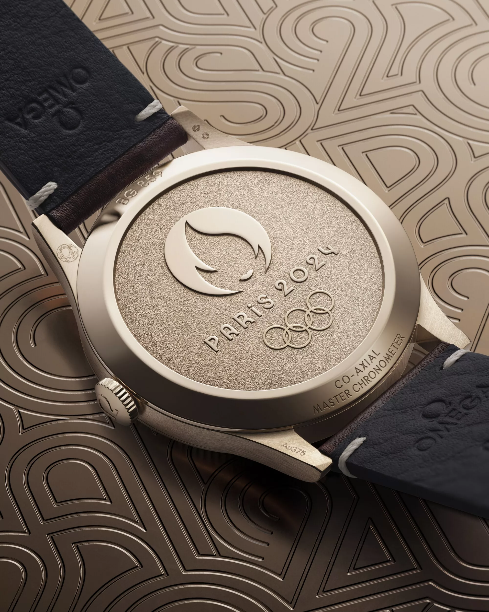 Sul fondello c’è un medaglione in cui brillano i cinque anelli olimpici e il logo delle olimpiadi parigine con finitura lucida.