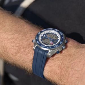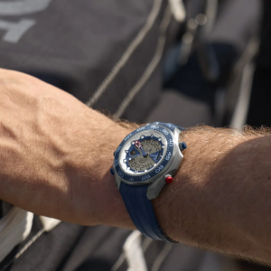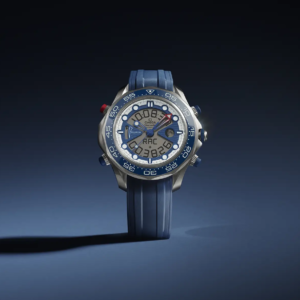 Con una cassa imponente da 46,75 mm in titanio grado 5, il Seamaster Regatta combina un display analogico e digitale, offrendo funzionalità avanzate per affrontare l’oceano con stile e precisione. Tra le sue caratteristiche principali troviamo l’indicatore delle fasi lunari, un diario di bordo, un cronografo, un indicatore di temperatura, un accelerometro, tre sveglie e una funzione cronografo specifica per le regate.