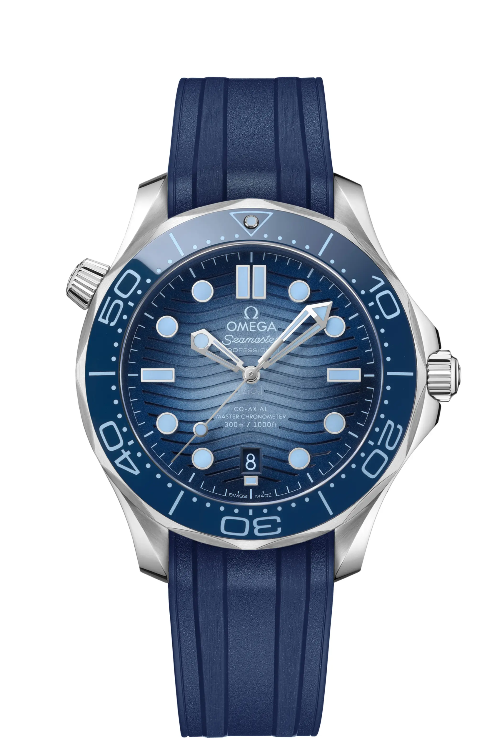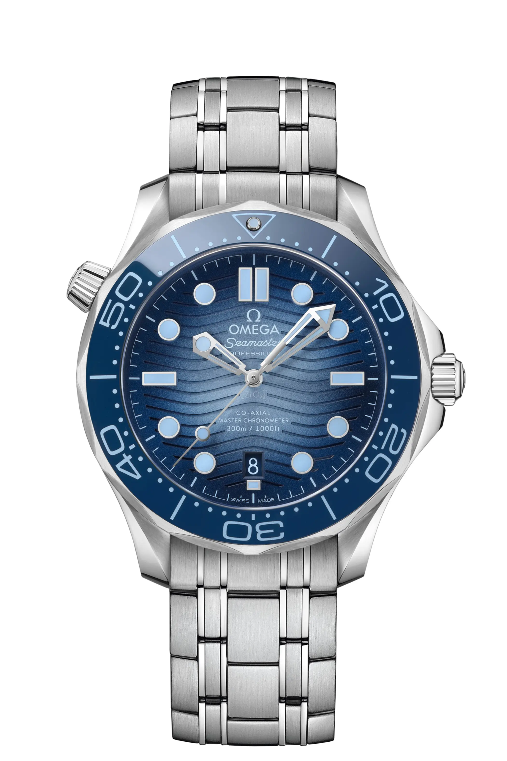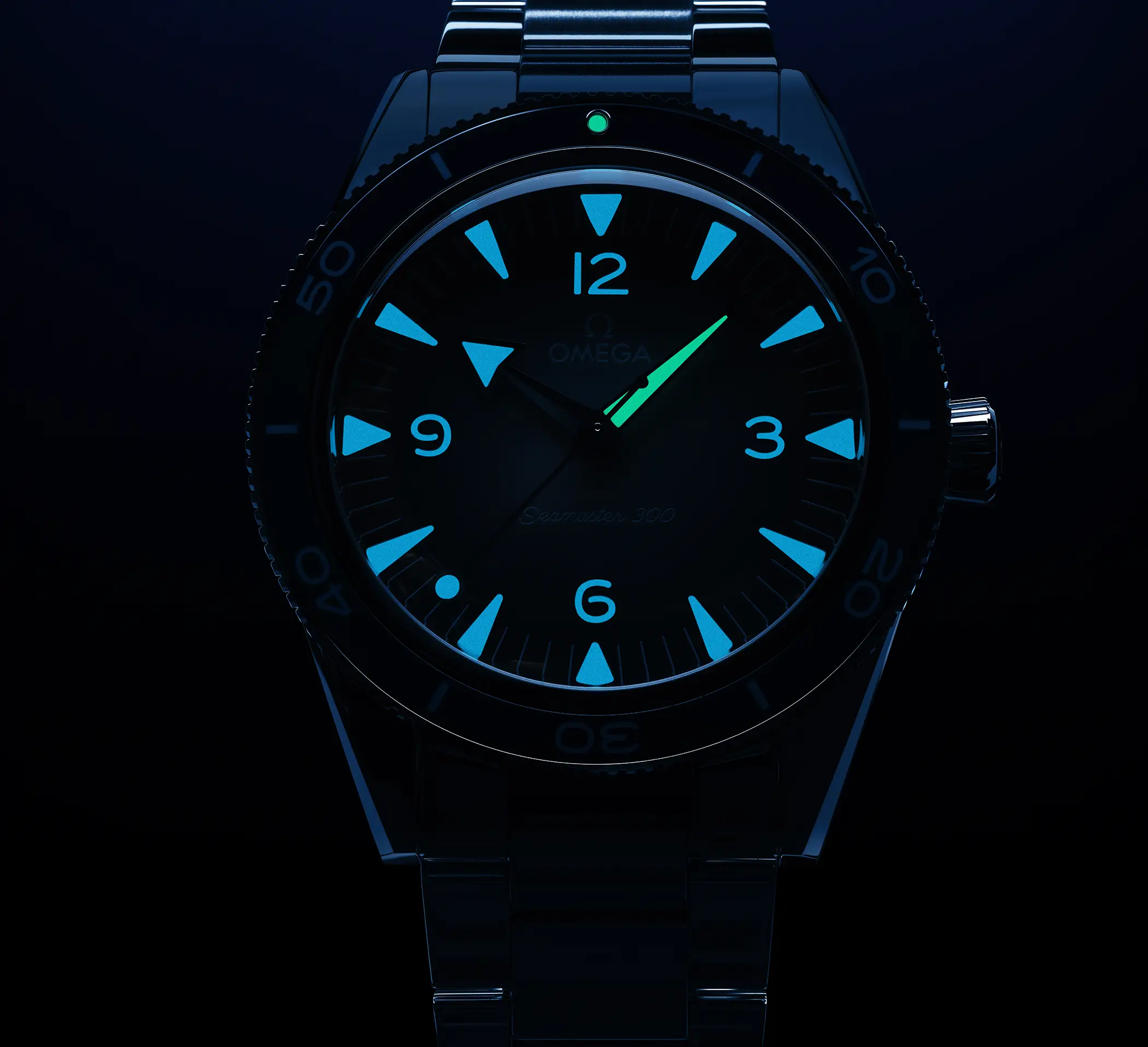 Scendendo idealmente di profondità, a 300m, ci sono due modelli ormai iconici del catalogo di Omega: il Seamaster 300, reincarnazione del capostipite del 1957, e il Seamaster Diver 300M. In entrambi i casi i quadranti sono stati declinati nella variante “Summer blue”, con tanto di indici realizzati in Superluminova azzurra. I movimenti sono gli stessi adottati per le altre configurazioni dei rispettivi modelli: Co-Axial Master Chronometer 8912 sull’erede diretto del primo Seamaster e Co-Axial Master Chronometer 8800 sul più tecnico 300M.