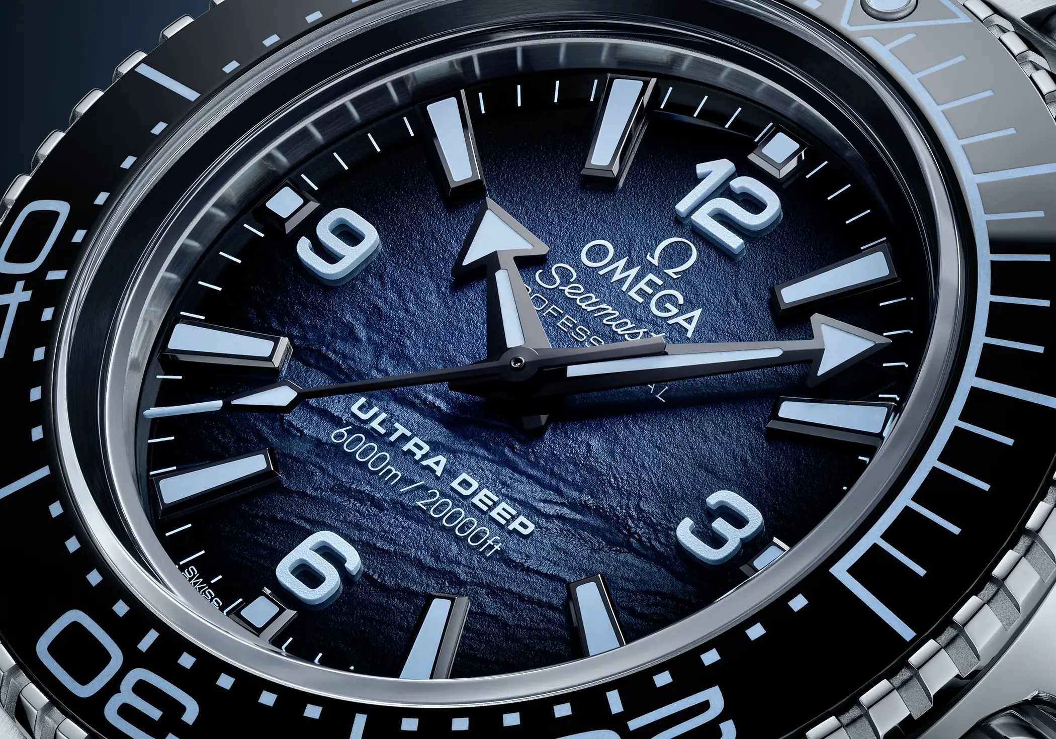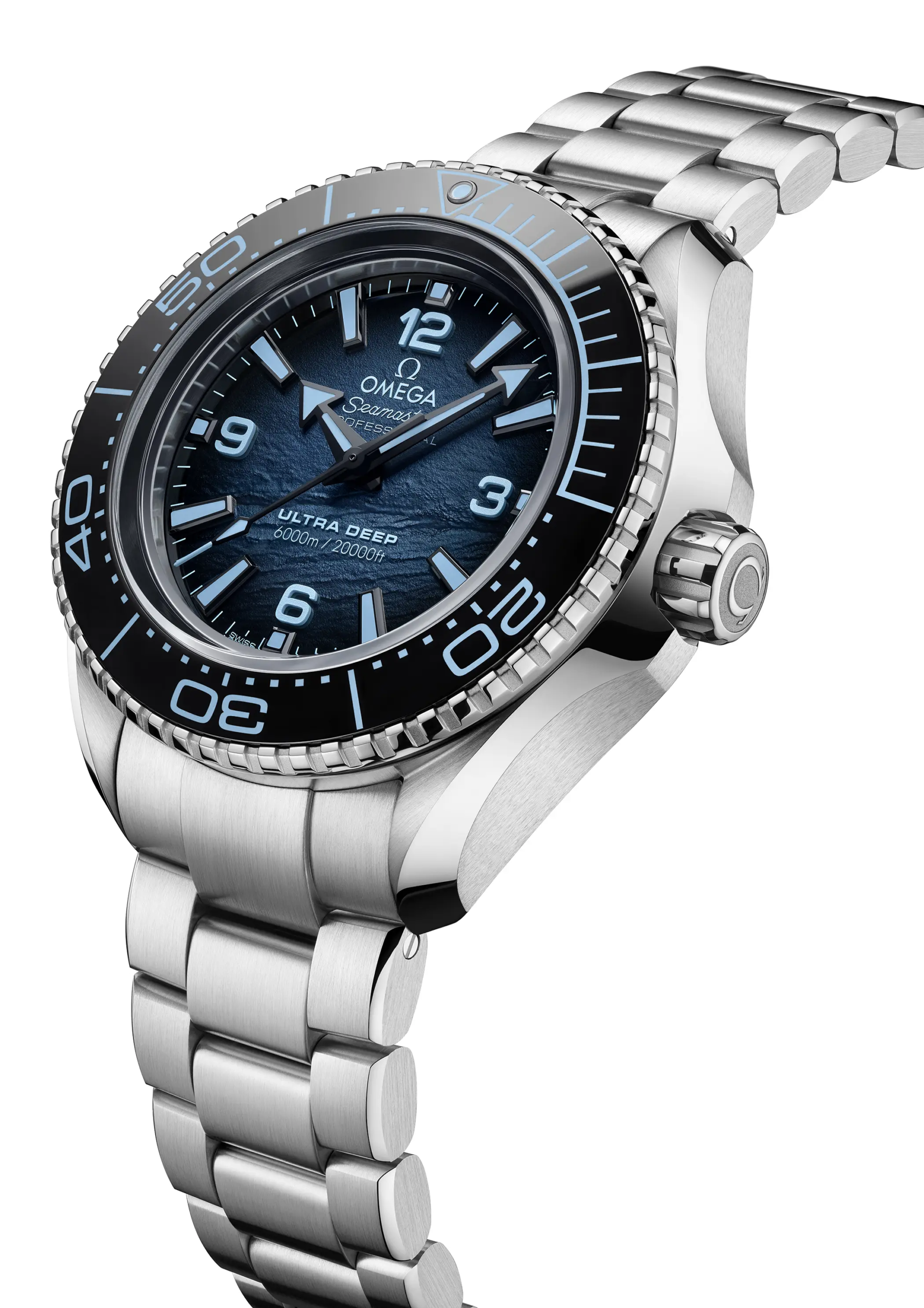 Anche il Planet Ocean 600M (nella misura da 39,5mm) e l’Ultra Deep ricevono lo stesso trattamento: caratteristiche inalterate rispetto al resto della produzione attualmente a catalogo e colorazione “Summer blue”. Sul 6000m il quadrante ha una lavorazione superficiale che, insieme alla tonalità specifica di questa versione, rende omaggio ai fondali oceanici. Calibro Co-Axial 8800 sul Planet Ocean e 8912 sull’Ultra Deep, entrambi (ovviamente) con certificazione Master Chronometer di METAS.