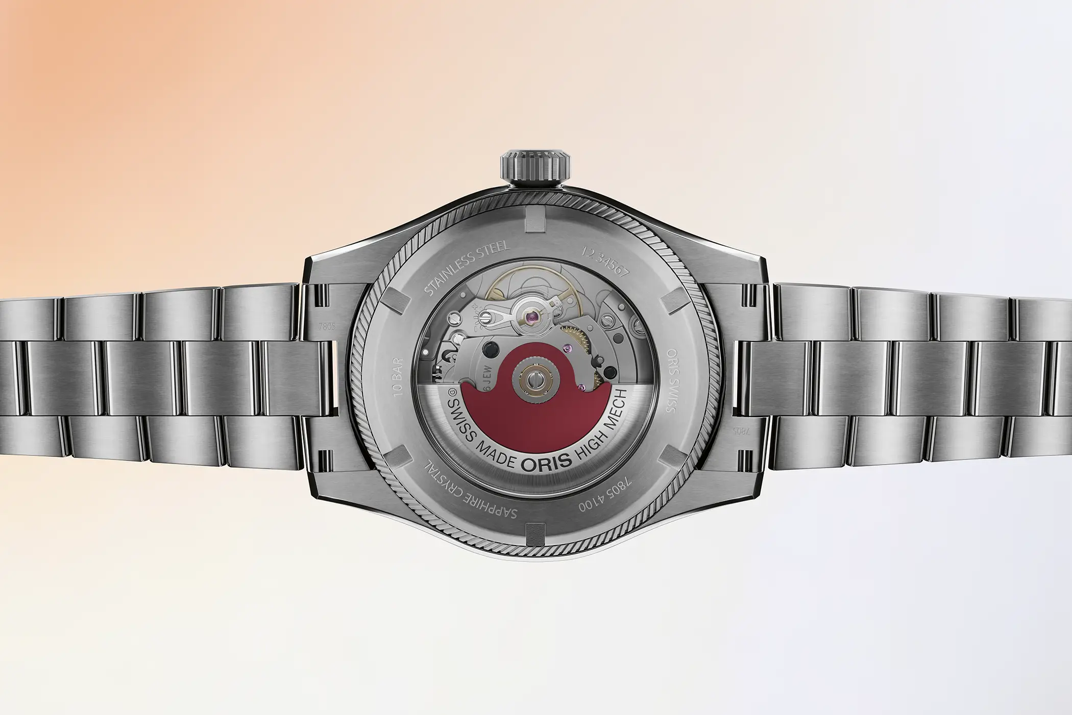 Il quadrante è protetto da un vetro zaffiro con trattamento antiriflesso interno e dal fondello è possibile osservare il movimento, l’Oris Calibre 773 (su base Sellita) con 41 ore di riserva di carica e datario a scatto istantaneo.