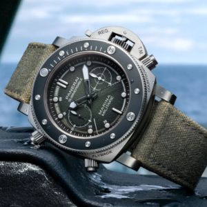 La cassa di 47mm è in titanio di grado 5, un materiale che garantisce leggerezza, solidità e un’elevata resistenza alla corrosione con caratteristiche fisiche e meccaniche degne di uno strumento militare. Anche la lunetta unidirezionale è in titanio con inserto in ceramica con elevata resistenza ai graffi. Il quadrante verde e il cinturino in tela di cotone di colore abbinato ne accentuano lo spirito tecnico. Il PAM01699 fa parte della famiglia Submersible ed è quindi progettato per resistere alle profondità marine, con test svolti anche a pressioni superiori ai 50 BAR per i quali è certificato. Nel corredo è presente anche un cinturino in caucciù nero perfetto per le immersioni. Le abbondanti porzioni di SuperLuminova grigia su indici e sfere garantiscono un’ottima leggibilità anche in condizioni di scarsa illuminazione.