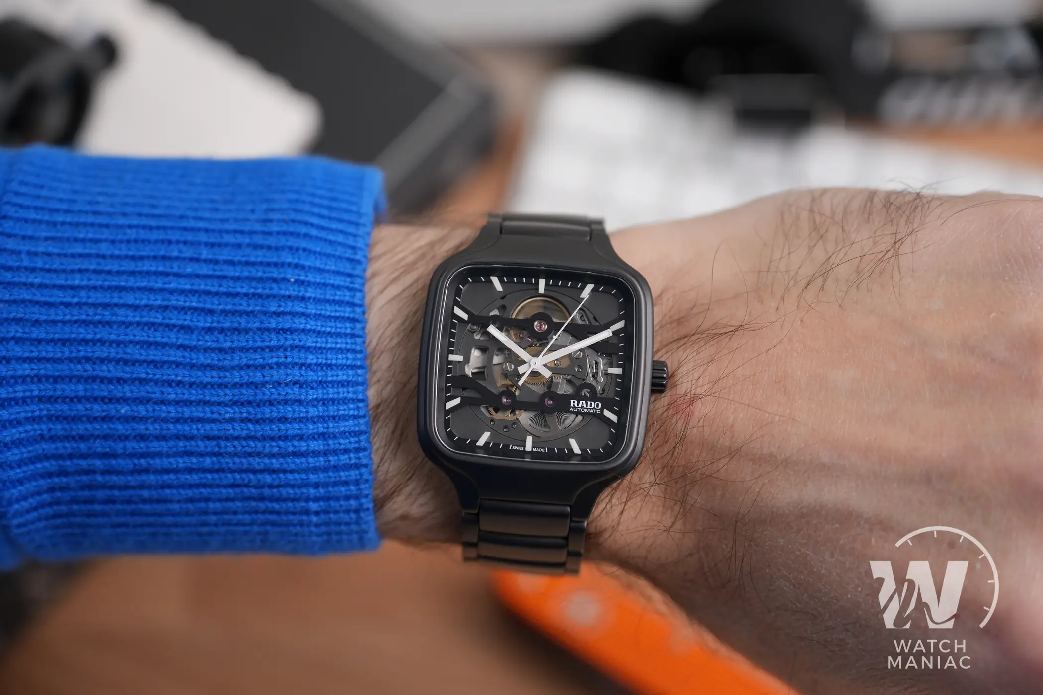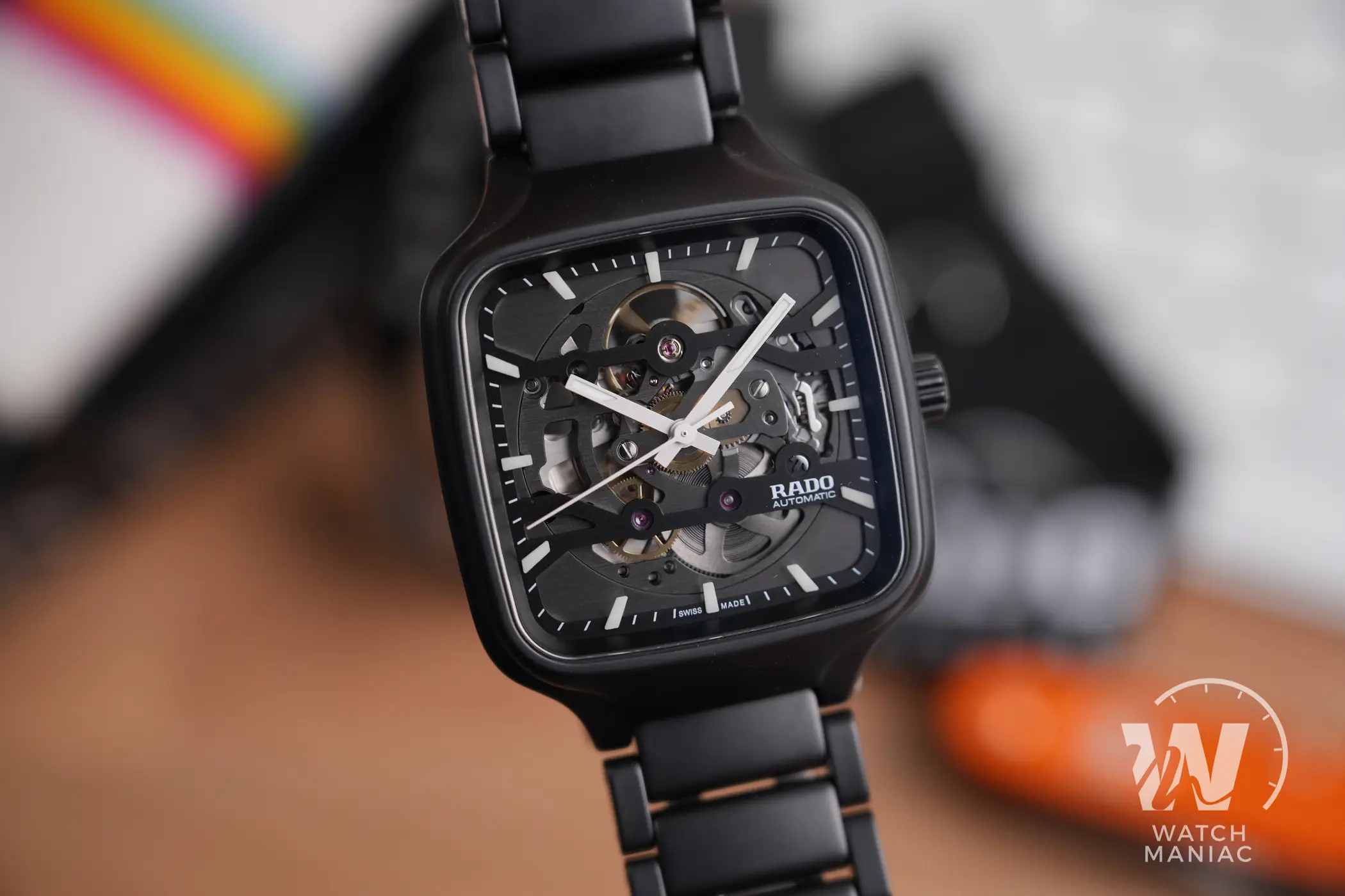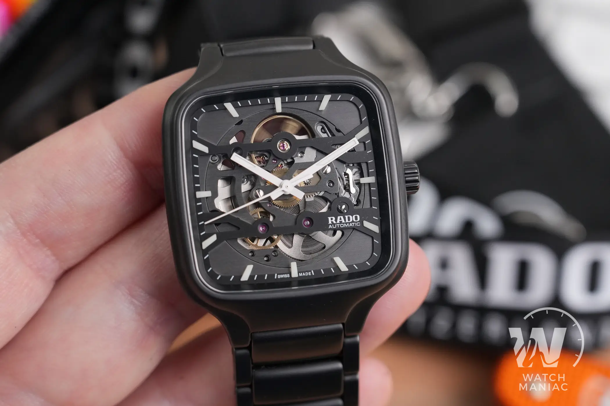 Rado è un marchio noto per la sua enorme esperienza nell’uso di materiali hi-tech. Il Diastar venne presentato nel 1962 e fu il primo orologio realizzato in Hard Metal, un materiale con una resistenza ai graffi nettamente superiore rispetto al normale acciaio. Il marchio svizzero ha poi sempre curato tantissimo i suoi design: nel catalogo attuale sono presenti vari modelli dallo stile unico e inconfondibile, basti pensare alle reinterpretazioni moderne dell’Anatom o alle riedizioni dello stesso Diastar. Se c’è un modello che rappresenta alla perfezione queste due nature, differenti ma non contrapposte, è proprio il True Square. Il suo stile rimanda al Rado Ceramica del 1990, il primo orologio di forma squadrata realizzato nel materiale antigraffio per eccezione. Nel 2023 sono state introdotte le varianti scheletrate e quest’anno si sono aggiunte alcune nuove versioni interessanti: quella in nero opaco e la bellissima colorazione Plasma.