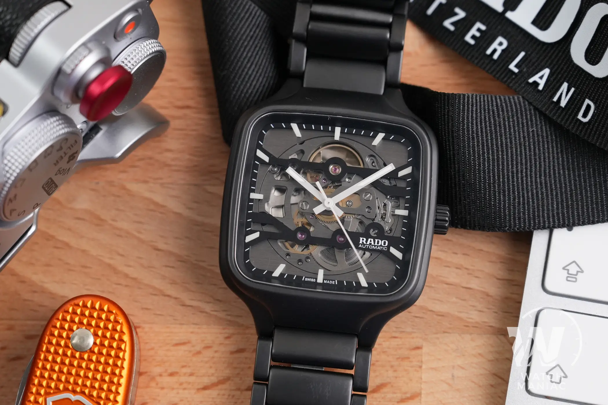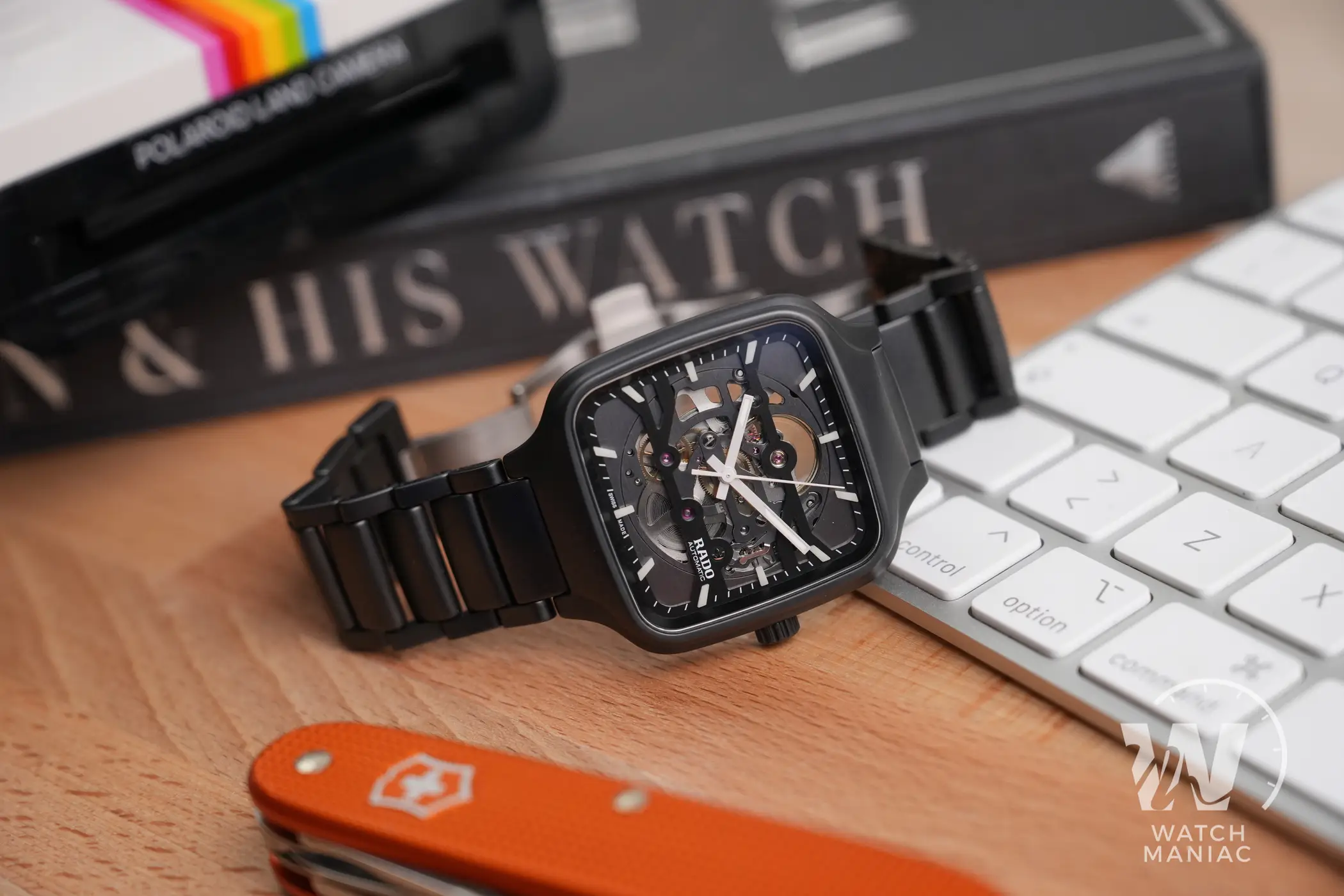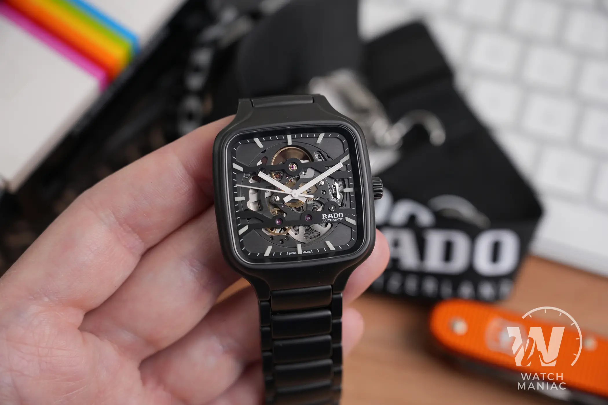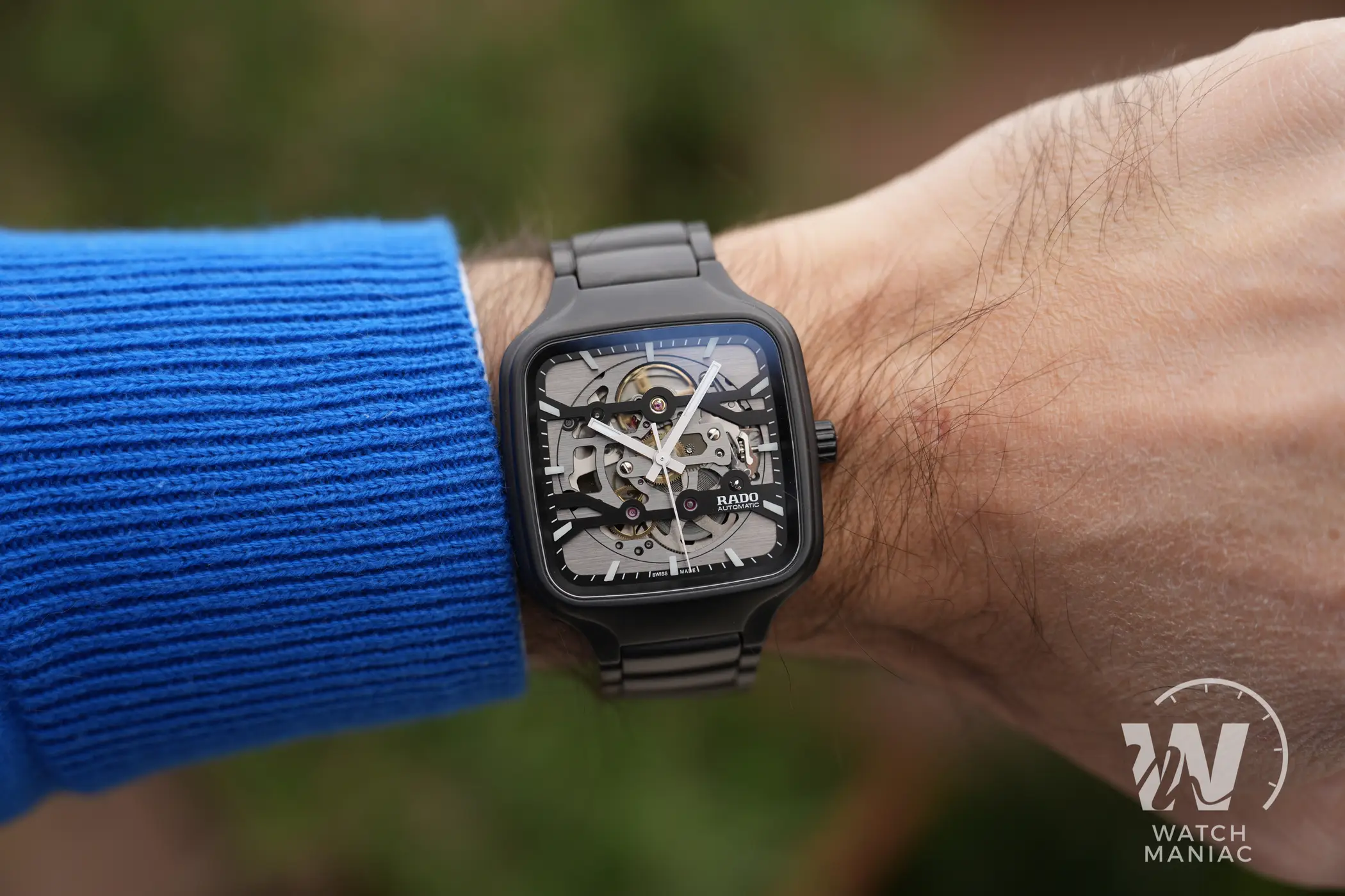 Rado è un marchio noto per la sua enorme esperienza nell’uso di materiali hi-tech. Il Diastar venne presentato nel 1962 e fu il primo orologio realizzato in Hard Metal, un materiale con una resistenza ai graffi nettamente superiore rispetto al normale acciaio. Il marchio svizzero ha poi sempre curato tantissimo i suoi design: nel catalogo attuale sono presenti vari modelli dallo stile unico e inconfondibile, basti pensare alle reinterpretazioni moderne dell’Anatom o alle riedizioni dello stesso Diastar. Se c’è un modello che rappresenta alla perfezione queste due nature, differenti ma non contrapposte, è proprio il True Square. Il suo stile rimanda al Rado Ceramica del 1990, il primo orologio di forma squadrata realizzato nel materiale antigraffio per eccezione. Nel 2023 sono state introdotte le varianti scheletrate e quest’anno si sono aggiunte alcune nuove versioni interessanti: quella in nero opaco e la bellissima colorazione Plasma.