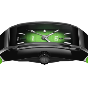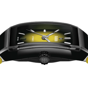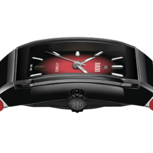 Il design raffinato è esaltato da un vetro zaffiro edge-to-edge, sagomato per seguire le linee anatomiche che danno il nome all’orologio. La cassa combina acciaio sabbiato con rivestimento PVD nero e una lunetta in ceramica high-tech nero lucido.