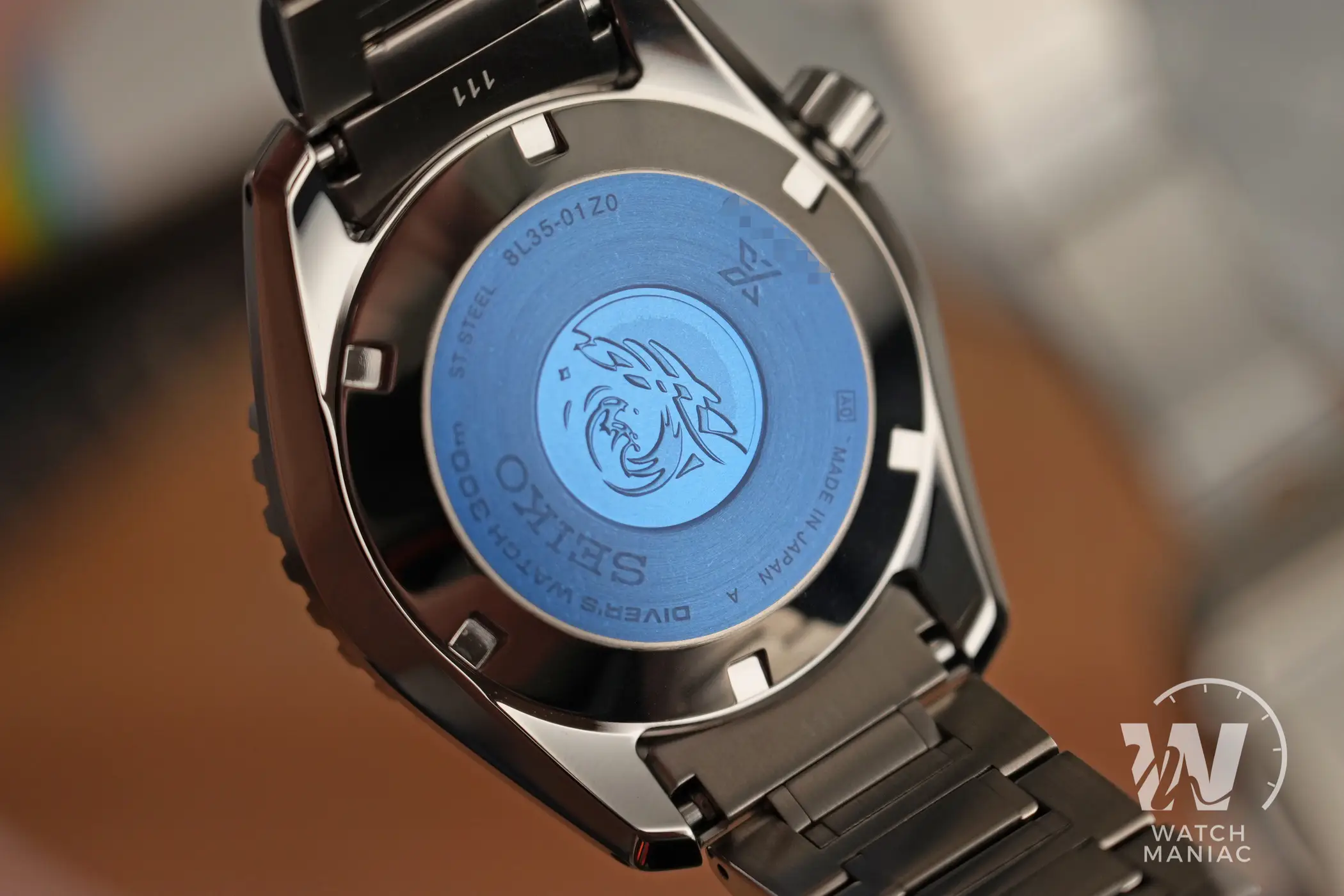 Il fondello a vite ricorda parecchio quello utilizzato su moltissimi altri diver del marchio giapponese. A parte la scritta riguardante l’impermeabilità fino a 300m, non sono presenti indicazioni relative alla resistenza all’elio. In effetti i nuovi Marinemaster sono sì dei diver certificati, ma rispetto ai monoblocco perdono la possibilità di essere utilizzati in atmosfera arricchita di elio.