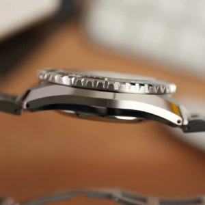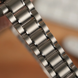 Se a livello tecnico l’abbandono della costruzione monoblocco della cassa può essere fonte di dispiacere per i puristi, al polso è difficile non rimanere impressionati dalla vestibilità eccellente di questa cassa. Come ingombri ci sono ben poche differenze rispetto alle casse dei “Baby Marinemaster”, ma qui abbiamo a che fare con diver certificati resistenti fino a 300m. Il diametro è di 42,5mm, la distanza da ansa ad ansa è di 49,1mm, lo spessore è di 13,5mm e il peso con tutto il bracciale completo è di 196g.