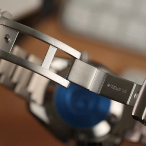 Il bracciale dell’SLA077 è sostanzialmente lo stesso utilizzato lo scorso anno sul SLA073 e rispetto ai bracciali utilizzati sui Marinemaster monoblocco la qualità è migliorata sensibilmente. Anche esteticamente è più curato e adatto al design rinnovato della cassa. Le maglie sono mobili le une sulle altre e sono tenute insieme da perni e collarini. La chiusura è molto simile a quelle adottate anche sui “Baby Marinemaster”, con 4 fori di microregolazione sulla scatoletta, bracci interni ricavati dal pieno e la piccola estensione per la muta. Sarebbe stato bello vedere una clasp nuova e un po’ più esclusiva per uno dei diver di punta di Seiko, ma comunque svolge egregiamente il proprio dovere.