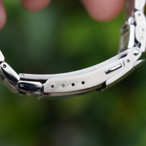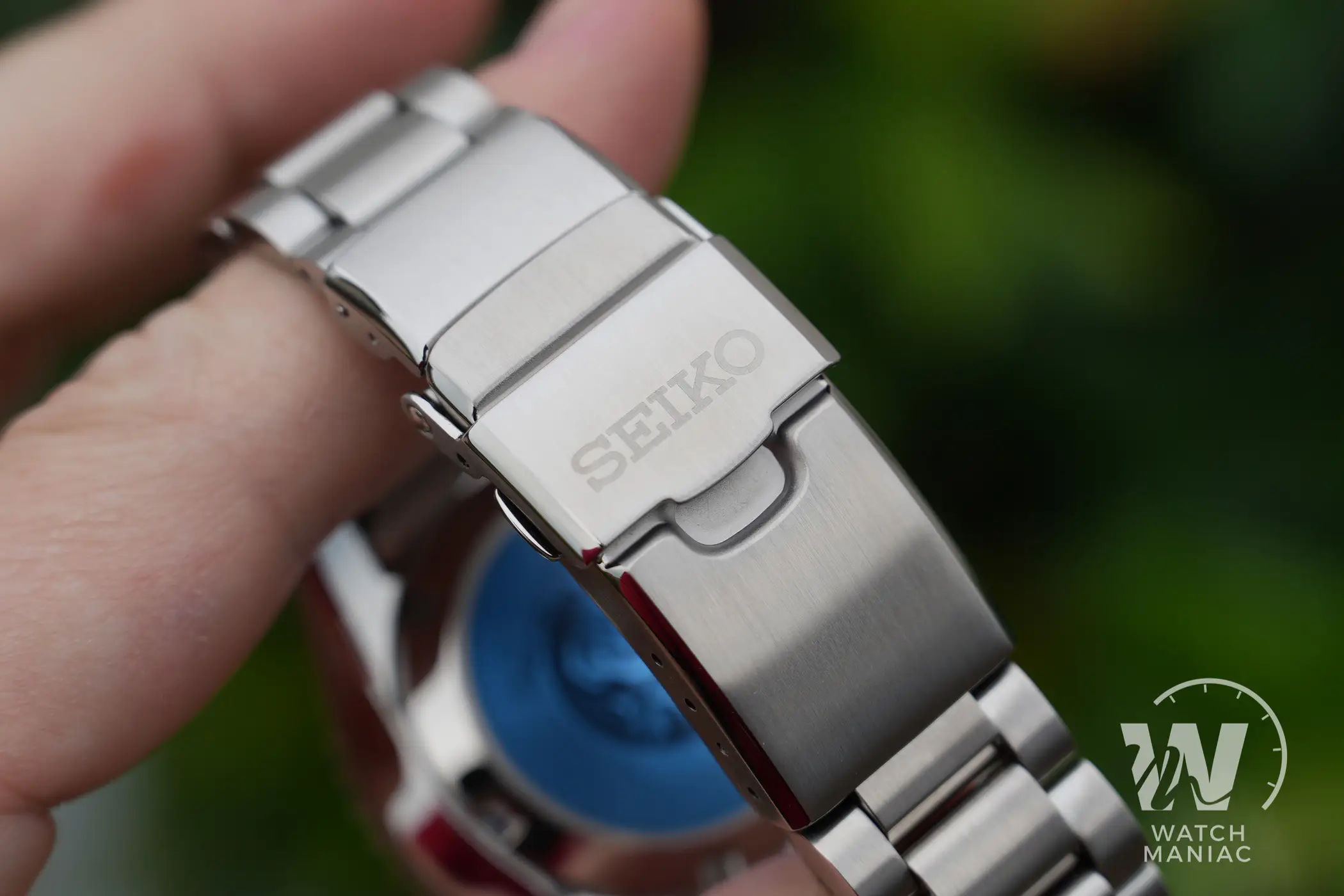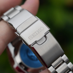 Il bracciale ha un design che si integra molto bene allo stile della cassa e, fortunatamente, ha anche dei terminali precisi che non lasciano spazi tra le anse. A livello qualitativo è in linea con i bracciali utilizzati sugli altri diver di fascia media di Seiko e ritroviamo infatti anche la clasp, aggiornata un paio di anni fa, con fermo di sicurezza più moderno e i classici 4 fori di microregolazione.