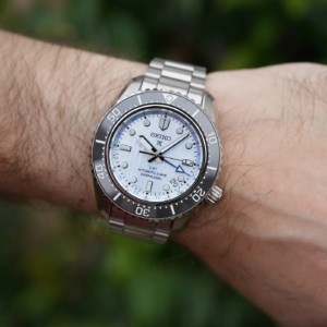 Le sfere poi hanno un design in linea con quello adottato anche su altri diver di fascia media del marchio, in questo caso rifinite splendidamente con una metà spazzolata e una metà lucida. La leggibilità non può certamente essere ai livelli del classico quadrante nero, dove le lancette contrastano in modo perfetto, ma è comunque meglio rispetto ad altri modelli con quadrante più chiaro.