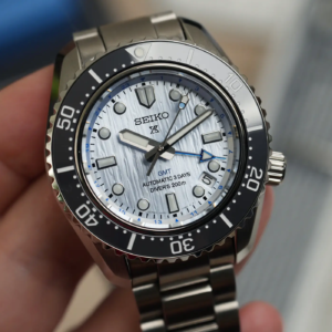 Il design e le scelte cromatiche fatte da Seiko sono l’enorme punto di forza di questo nuovo “Baby MarineMaster” GMT in edizione limitata Save the Ocean, che al polso è davvero fantastico. Il quadrante non è per tutti, un po’ per il colore e un po’ per la lavorazione, ma eventualmente esistono anche le altre due varianti. La piccola défaillance sulle finiture della cassa può passare in secondo piano e potrebbe essere legata solo ad un controllo qualità poco efficace sul mio esemplare. Il movimento, pur rientrando nel range dichiarato ufficialmente da Seiko, resta invece una grande delusione. Da un marchio che negli anni 60 partecipava alle competizioni di cronometria non è giusto accontentarsi, nel 2023, di prestazioni del genere in questa fascia di prezzo. Soprattutto quando la concorrenza, da parte di Gruppo Swatch con i vari movimenti della famiglia Powermatic e da parte di Sellita con alcuni suoi calibri certificati COSC, è decisamente agguerrita. Il prezzo di listino per questo Seiko Prospex SPB385 limited edition, prodotta in 4000 esemplari, è di 1.900€.