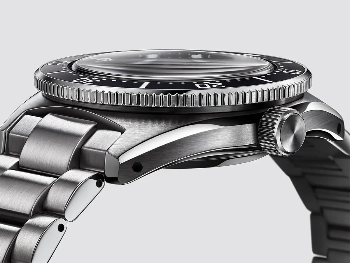 Persino il bracciale sembra essere lo stesso, ma non è così. Le maglie sono più corte, passando da 9,6mm a 8mm di lunghezza, proprio per garantire una maggior adattabilità alla forma del polso e, di conseguenza, una maggior comodità. La chiusura invece rimane quella compatta già introdotta su altre precedenti referenze della linea Prospex, con un classico fermaglio di sicurezza e due fori per la microregolazione.