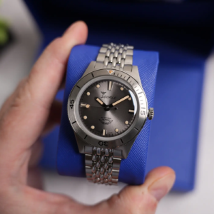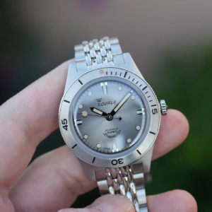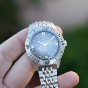 La moda delle riedizioni di orologi vintage si sta tutt’altro che affievolendo, ma alcuni marchi hanno forse più titolo di altri per riproporre alcuni design del passato: Squale è sicuramente tra questi. Il Super Squale, aggiungendosi al Sub39 entrato a catalogo già un paio di anni fa, offre un’alternativa in più a tutti quelli che amano il marchio e che preferiscono scegliere orologi dalle misure più contenute. A livello qualitativo questo modello è molto curato, soprattutto per quanto riguarda la cassa e il quadrante (davvero bellissimo in questa colorazione grigia con lavorazione soleil). Il prezzo di listino di questa versione è di 1.355€.