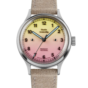 L’idea è stata quindi quella di creare un orologio che rispettasse queste caratteristiche storiche con una forte rivisitazione in chiave moderna e in perfetto stile Underd0g. L’orologio viene proposto in 4 varianti: Pink Lem0nade, Steffany Blue, Full Mo0n e Midnight. In tutte le configurazioni è presente, tra il quadrate e il vetro bombato in zaffiro, un disco trasparente (anch’esso in vetro zaffiro) fissato con due viti a vista. Su di esso sono stampati gli indici in numeri arabi e il marchio, che sembrano quasi fluttuare.