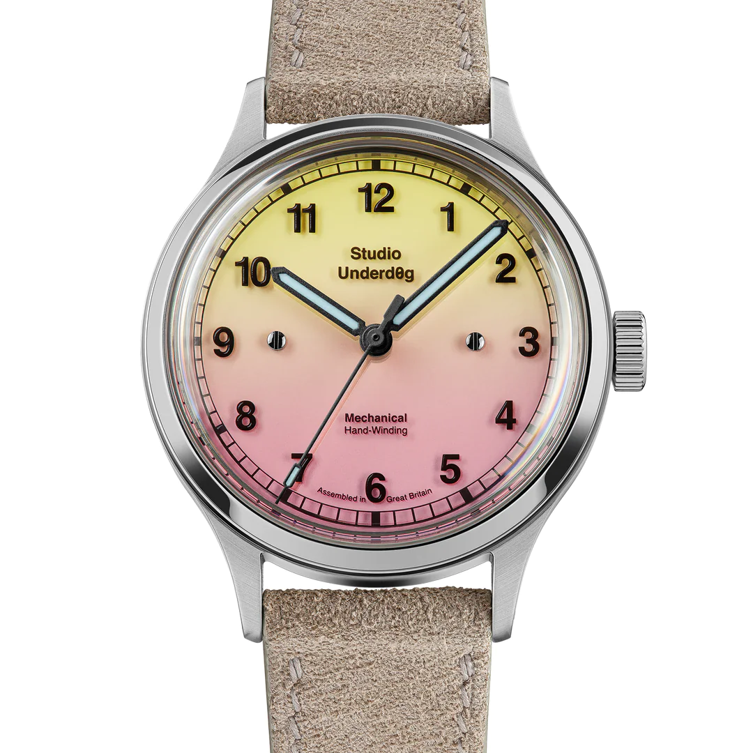 Da qualche giorno è stato presentato il nuovo modello firmato da Richard Bec, fondatore del giovane marchio inglese Studio Underd0g. A distanza di qualche anno dall’uscita della collezione Chronograph, nasce il field watch 02 Series, un nuovo progetto con nuove grafiche ma con la stessa voglia di stupire e di giocare con i colori. La scelta delle misure e dello stile dell’orologio arrivano da molto lontano nel tempo, e più precisamente dalla seconda Guerra Mondiale. All’epoca il Ministero della Difesa britannico definì una lista di caratteristiche indispensabili per gli orologi idoneo ad essere utilizzati in battaglia, dando così origine ai “Dirty Dozen”.