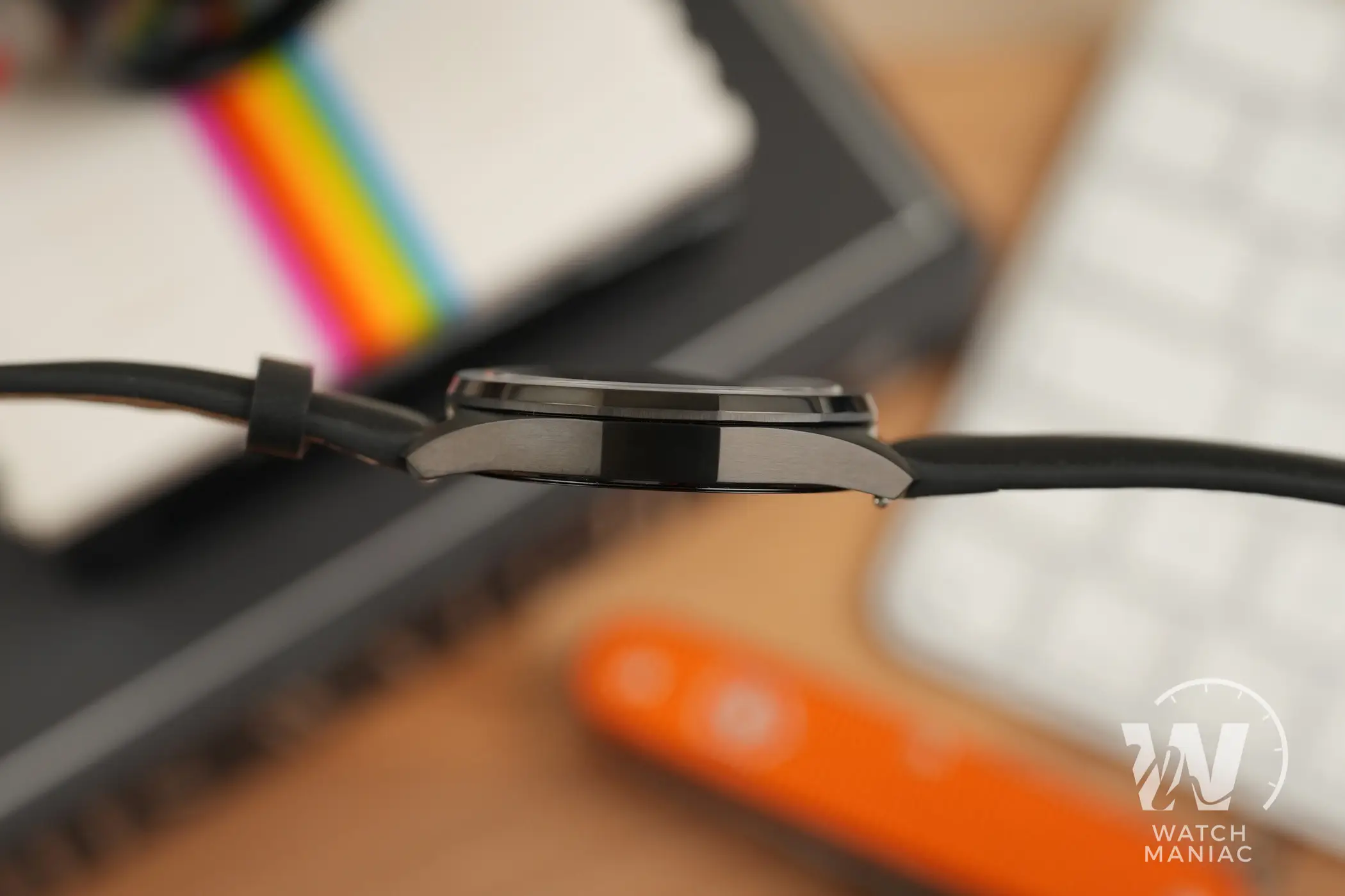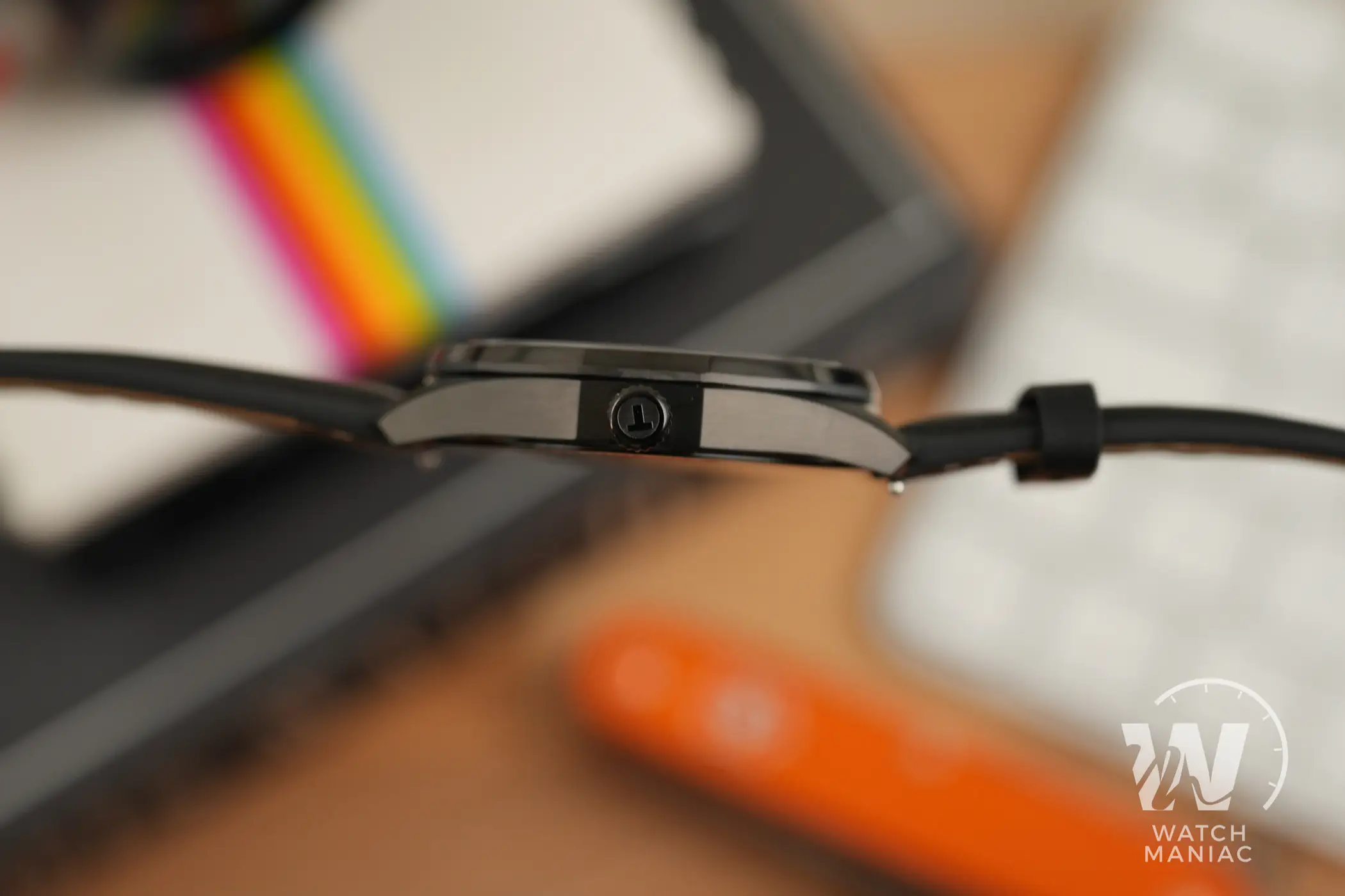 La cassa ha linee moderne e pulite. La lunetta poligonale con spigoli smussati crea qualche suggestione anni ’70, soprattutto se si sceglie una delle varianti con bracciale in acciaio. In questo caso il PVD nero dà alla cassa un aspetto più tecnico, con finiture curate, satinature regolari a grana piuttosto fine e biselli lucidi sulla lunetta intorno al vetro. Lo spessore è piuttosto contenuto, una caratteristica sicuramente da apprezzare nell’utilizzo quotidiano per cui questo orologio è pensato.
