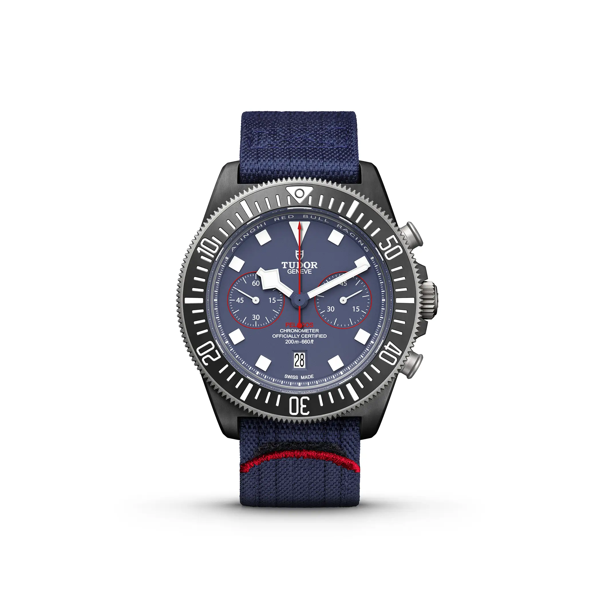 Tudor celebra la collaborazione con Alinghi Red Bull Racing con il lancio di due nuovi Pelagos FXD. Come si può facilmente intuire da queste tre lettere, si tratta di modelli con un design comune al Pelagos FXD “Marine Nationale” presentato alla fine del 2021, ma presentano alcune caratteristiche uniche. Così come per la costruzione dell’AC75 (lo scafo con hydrofoil per l’America’s Cup) anche le casse dei due nuovi orologi sono realizzate in carbonio hi-tech. Materiali simili sono impiegati già da alcuni anni nell’industria dei segnatempo, ma questa è la prima volta assoluta per Tudor. Ed è l’ennesima conferma di quanto il marchio svizzero sia incline alla sperimentazione, dopo aver lanciato sul mercato orologi in titanio, in bronzo, in ceramica e in argento.  Anche la ghiera ha un inserto in carbonio racchiuso all’interno di un anello in titanio, mentre il fondello è in acciaio.