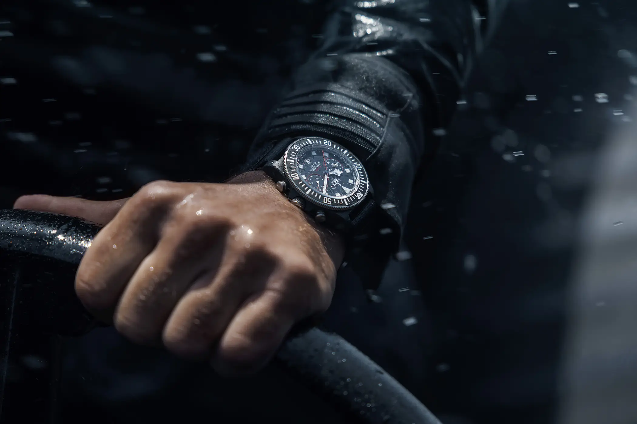 Se il solo tempo, al di là dei materiali, non presenta novità sostanziali rispetto al Pelagos FXD, è il cronografo ad attirare su di sé gran parte dell’attenzione. È infatti la prima volta che questa complicazione, certamente affine al mondo delle regate, viene inserita all’interno del design del Pelagos. Non sarebbe poi così strano se, dopo questo lancio in partnership con Alinghi Red Bull Racing, vedessimo arrivare altre varianti.