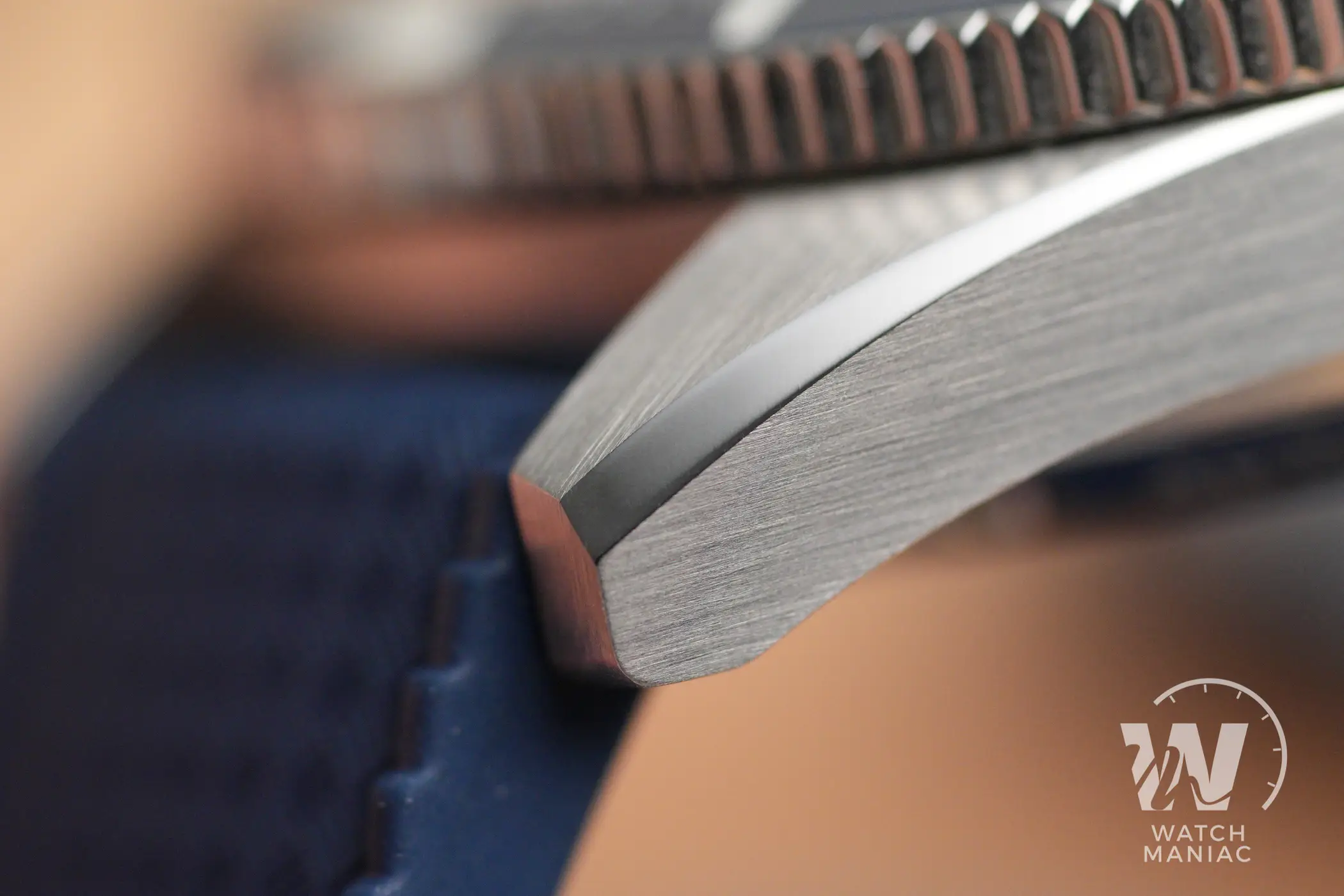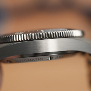 La cassa ha un design di tipo piuttosto tradizionale, non ci sono guizzi creativi particolarmente significativi, ma è impossibile non notare l’estrema cura con cui è lavorata e la precisione delle finiture, persino su questo esemplare pre-serie, è impeccabile. Le parti superiori delle anse e i fianchi sono satinati e sono intervallati da biselli lucidi belli evidenti. Lo spessore totale è equilibrato ed è assolutamente normale per un diver impermeabile fino a 200m di profondità.