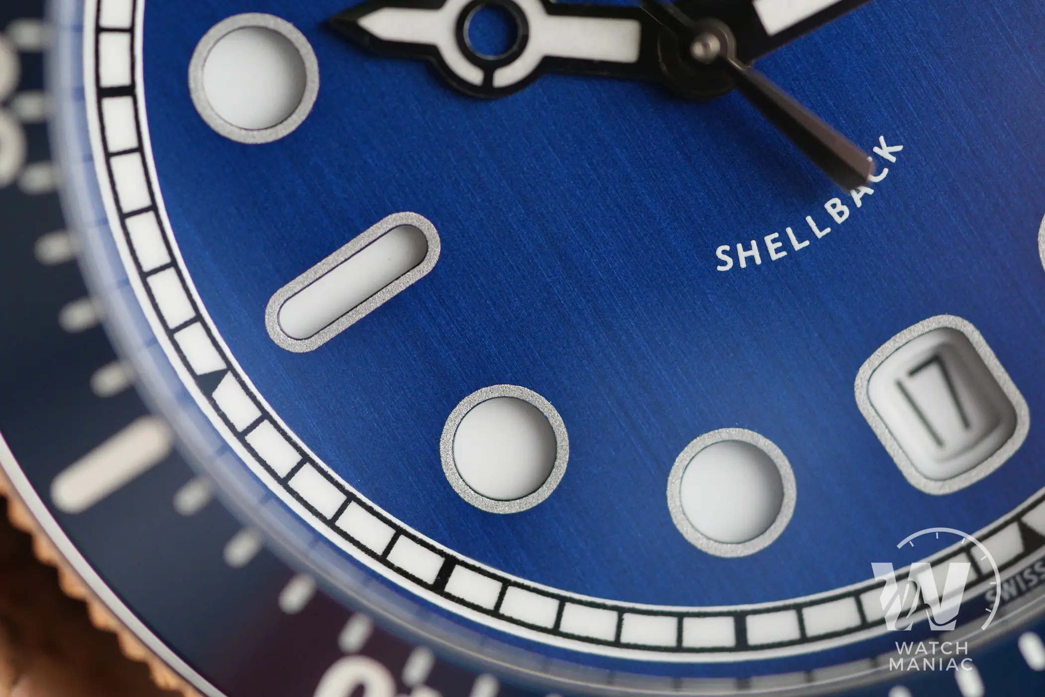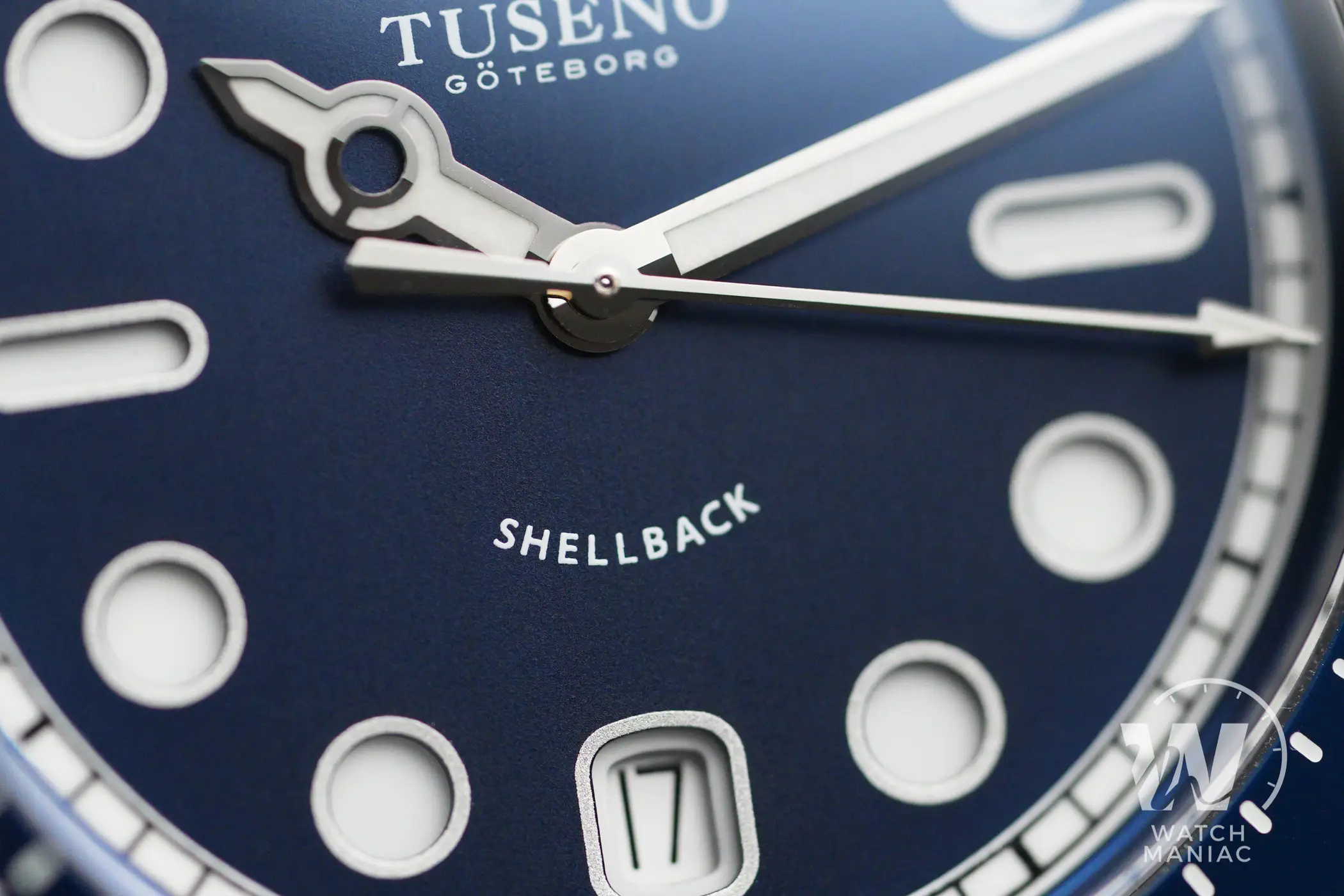 Anche per le lancette la parola d’ordine è originalità. Quella delle ore ha una forma veramente insolita e ricercata che è diventata un po’ la firma del marchio svedese per quanto riguarda i propri diver. Mantiene una buona leggibilità, pur dando giustamente maggior risalto alla sfera dei minuti. Sul Shellback V2 il foro al centro passa esattamente in corrispondenza della scritta con il nome del modello, un fatto curioso e simpatico.