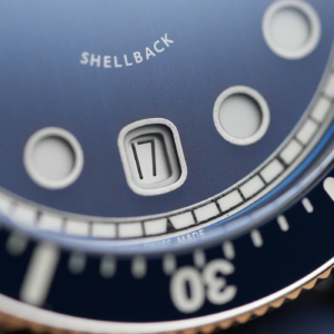 Il Shellback ha proporzioni che trovo perfette, pensate per soddisfare un larga fetta di appassionati. Al polso è ben bilanciato e l’ottimo bracciale lo mantiene sempre nella giusta posizione. Il diametro effettivo è di 39,7mm, la distanza da ansa ad ansa è di 47,1mm, lo spessore è di 12,9mm compresa la lieve curvatura del vetro e il peso con il bracciale regolato per un polso da 16cm è di 151g.