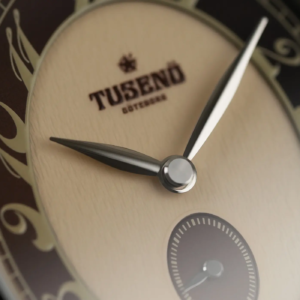 Il lettering utilizzato su questo quadrante è perfettamente in linea con lo spirito un po’ d’altri tempi del modello e persino il marchio è in una versione inedita rispetto a quanto fatto finora per il resto della produzione di Tusenö. Questa è una scelta che denota una grande cura dei dettagli ed è un po’ il filo conduttore che deve aver guidato nella realizzazione dell’intero orologio.