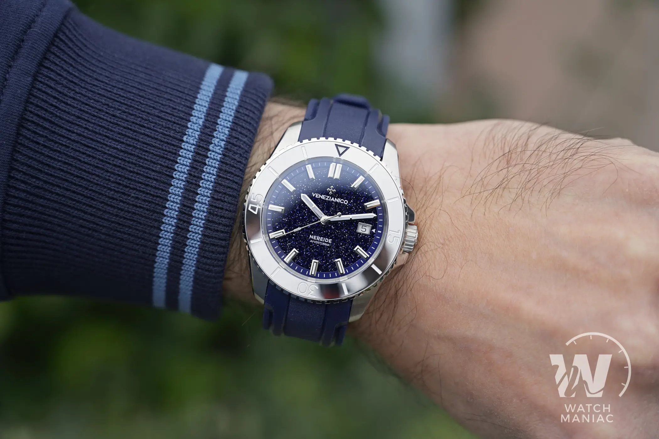 Esaminando con attenzione la produzione di Meccaniche Veneziane prima e di Venezianico poi, al di là dei gusti personali, è impossibile non notare un miglioramento costante della qualità. Ad esempio il Nereide, uno dei modelli di punta all’interno del catalogo del marchio italiano, dalle sue origini a oggi è cambiato in modo profondo. Ogni aspetto è stato rivisto, dai dettagli del quadrante alla finitura della cassa, dal bracciale ai movimenti utilizzati. Questa crescita è innegabile constatando anche quante gioiellerie sparse per il mondo stiano credendo in questa giovane realtà. E poi qualche settimana fa il marchio ha ricevuto il premio della rivista l’Orologio nella categoria “Rapporto qualità/prezzo”. Il Nereide Avventurina è una delle varianti più vendute del dress diver di Venezianico e porta con sé alcune migliorie persino rispetto al primo Nereide Tungsteno, uscito solo poco più di un anno fa.