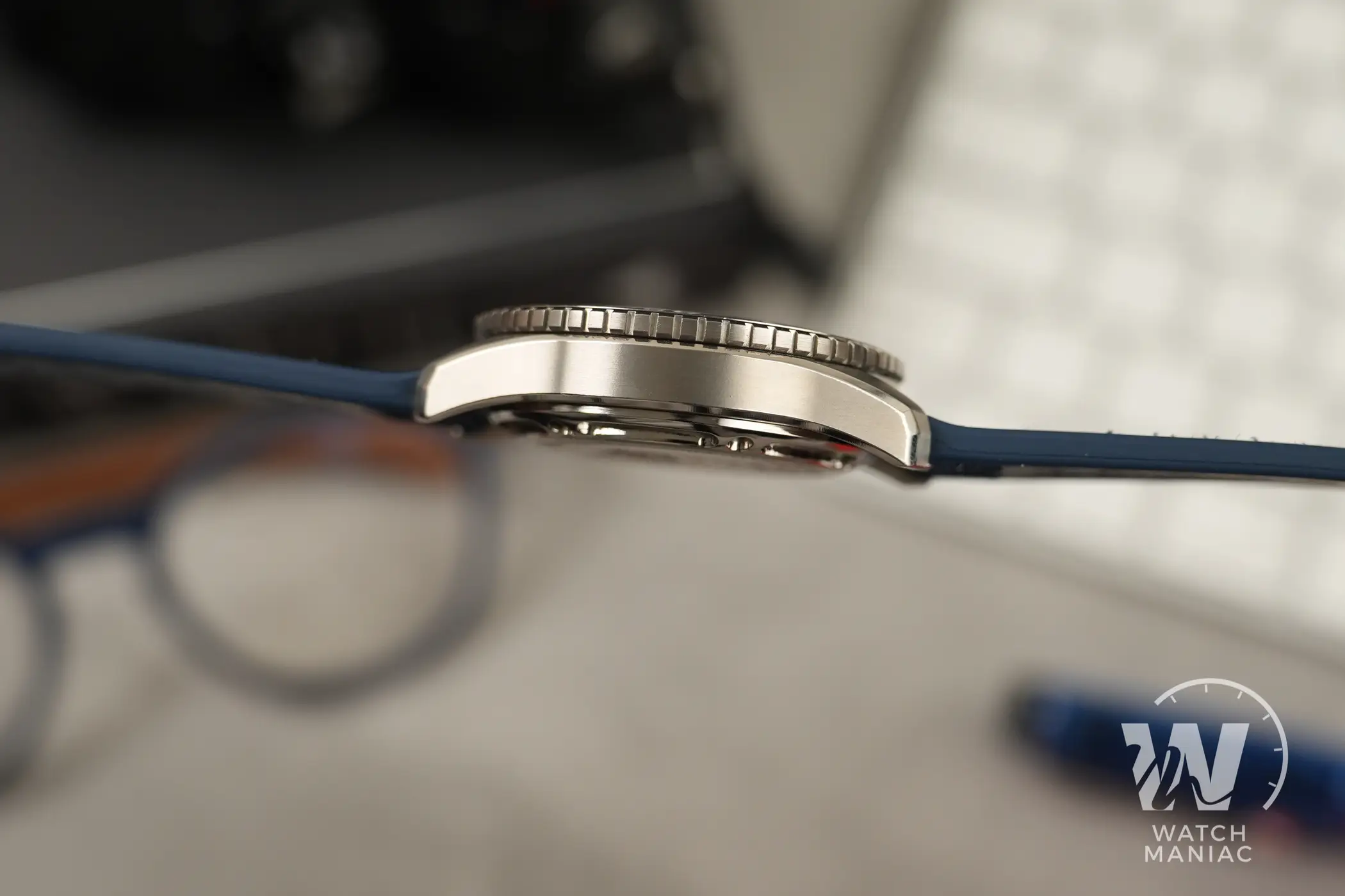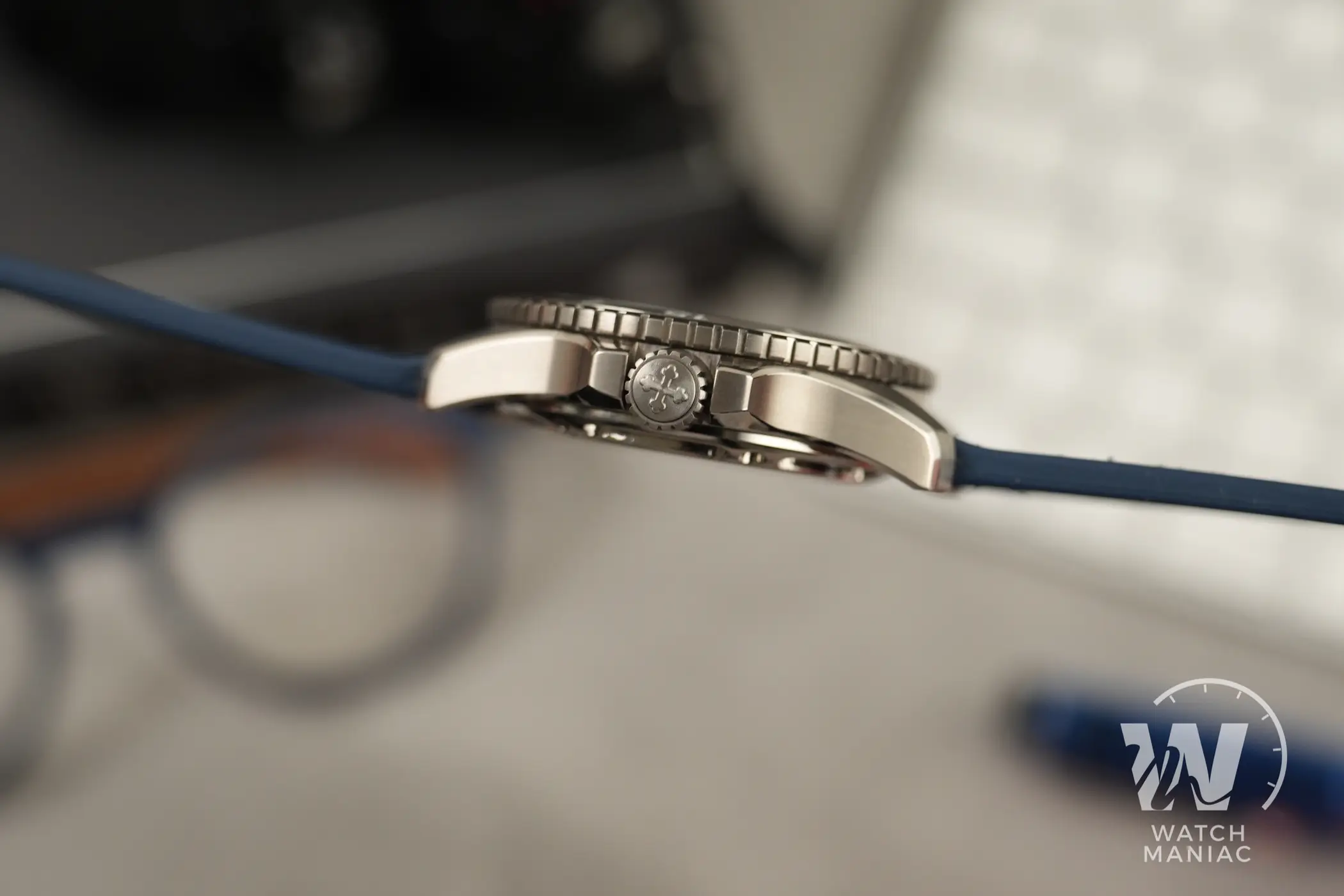 La cassa riprende le linee del Nereide che ormai abbiamo imparato a conoscere, ma questa è la prima volta che Venezianico decide di utilizzare il titanio. Si tratta di un grado 2, che garantisce maggior resistenza alla corrosione a fronte di una resistenza ai graffi inferiore rispetto al grado 5. È una scelta solo in parte legata al contenimento dei costi, dato che sul mercato ci sono vari modelli di marchi di lusso venduti a cifre nettamente superiori che sfruttano lo stesso materiale. Le finiture sono curate e ben realizzate, con satinature sulla maggior parte delle superifici, sia sulle anse che sui fianchi, e dei bei biselli lucidi al di sopra e al di sotto della carrure. Insomma, per essere il primo orologio in titanio proposto dal marchio italiano, il risultato è davvero degno di nota. Lo spessore poi, se si tiene conto dell’impermeabilità che è passata da 20atm a 30atm, non è assolutamente esagerato. La corona a ore 3 è ben protetta dalla spallette. Ha una finitura satinata con il logo in rilievo ed è naturalmente a vite, con una filettatura molto precisa sia in apertura che in serraggio.