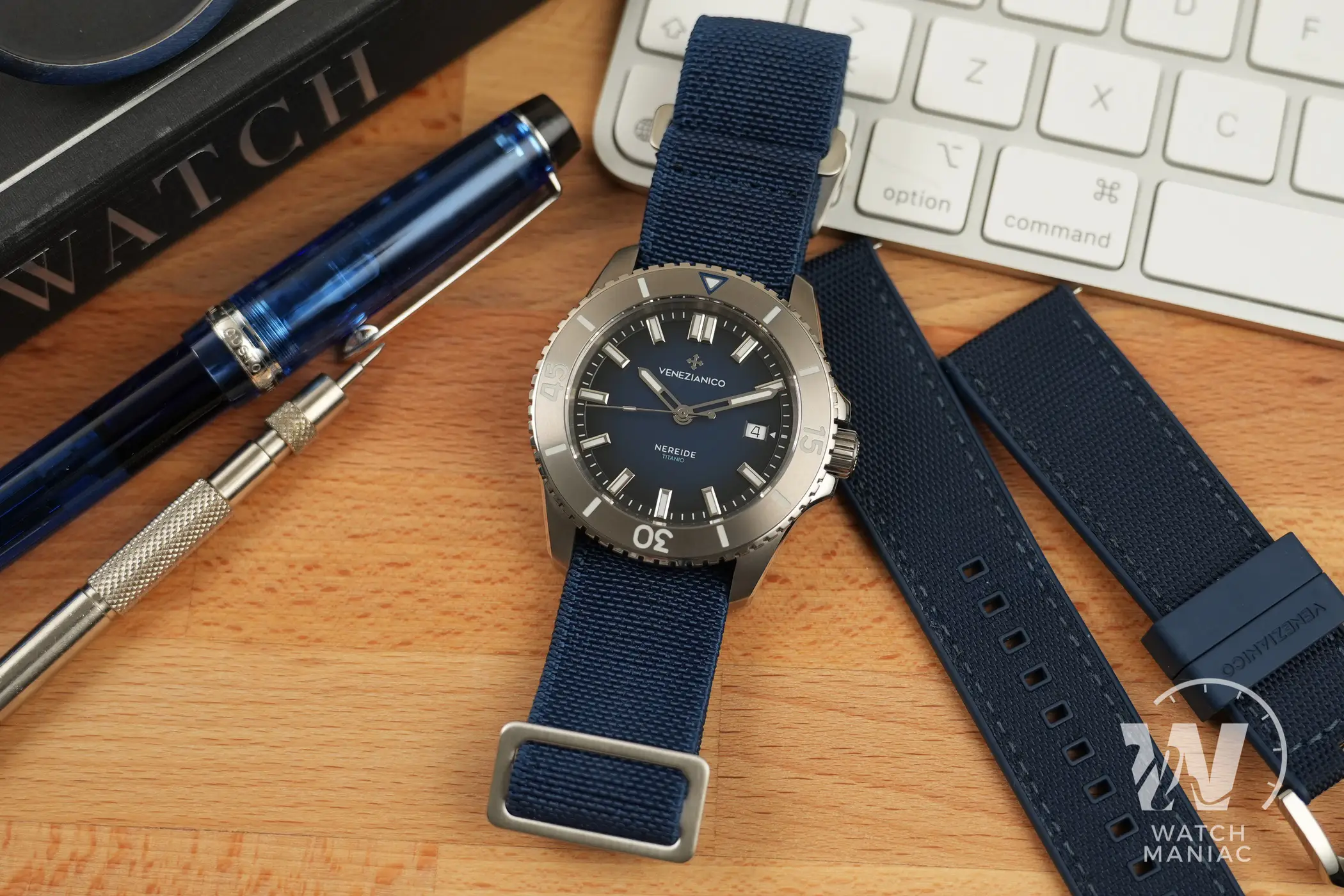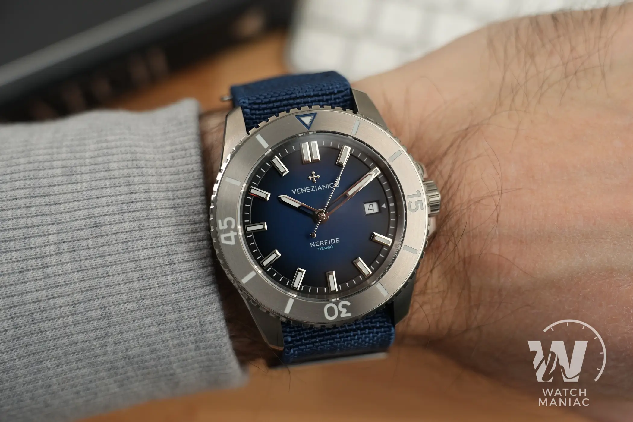 Il Venezianico Nereide è ormai un punto fermo all’interno del catalogo del marchio italiano e l’ho sempre trovato gradevole e ben riuscito. Da amante dei diver tecnici e da grande estimatore del titanio nell’orologeria, trovo decisamente azzeccata questa nuova referenza. Il colore grigio più scuro tipico di questo materiale si sposa alla perfezione con il blu profondo del quadrante e la sua leggerezza lo rende comodissimo da indossare. La luminescenza è quasi da primo della classa, inclusi i riferimenti sulla ghiera. L’impermeabilità, portata a 300m grazie all’adozione di un fondello a vite, non va ad incidere negativamente sullo spessore della cassa ed è una bella ciliegina sulla torta. Il prezzo di listino è di 1.095€, assolutamente in linea con le caratteristiche generali dell’orologio, e le consegne previste dal 31 gennaio in poi.