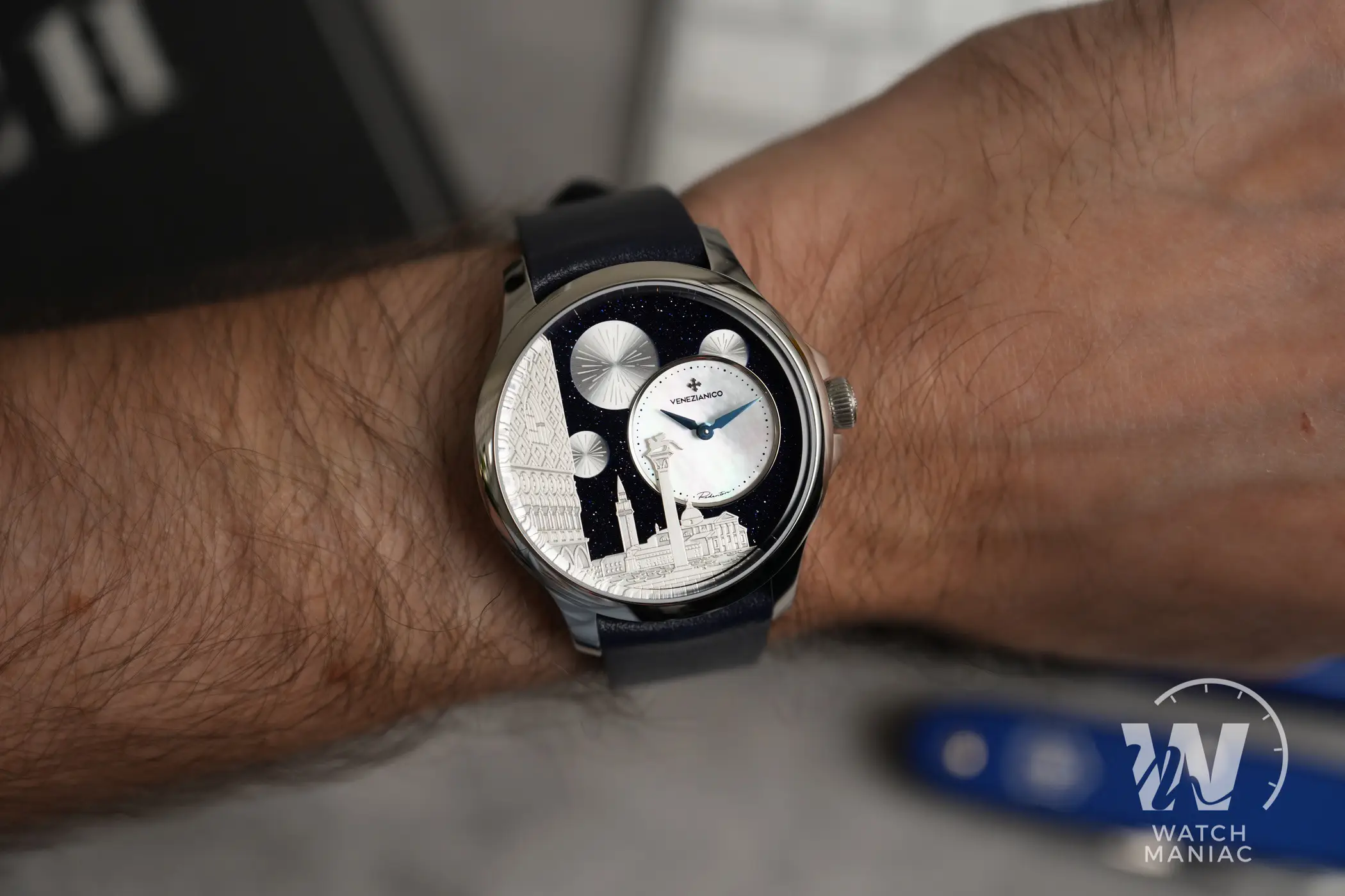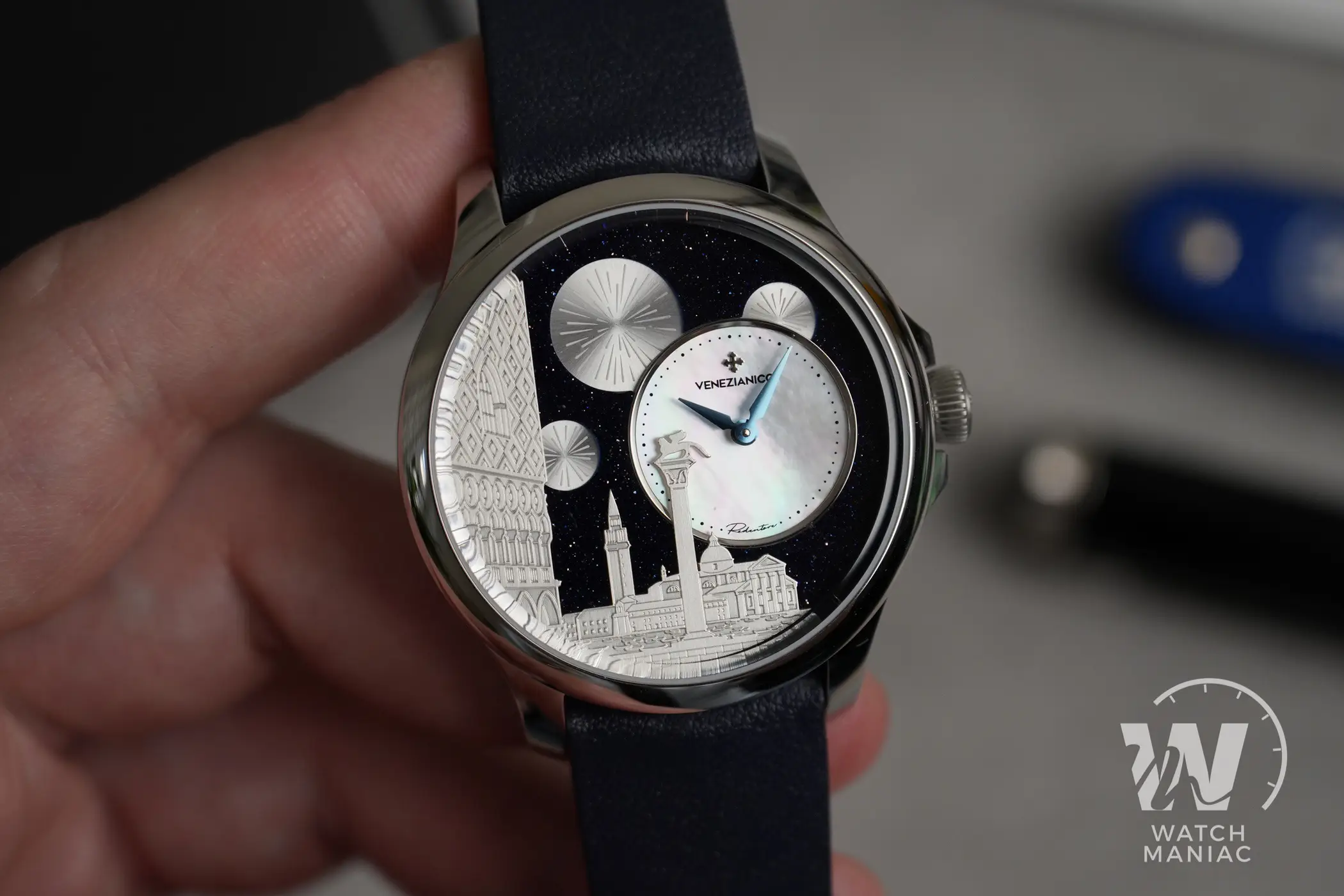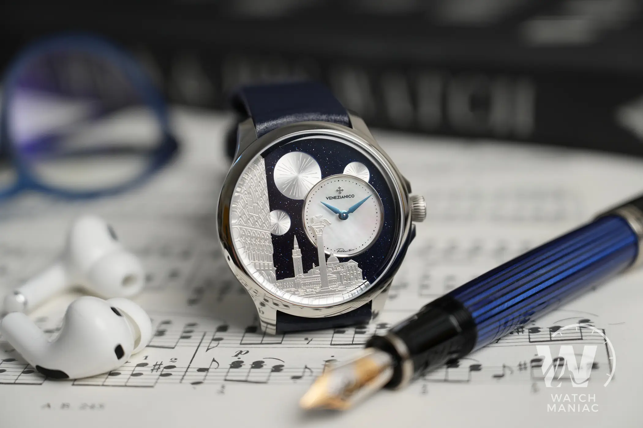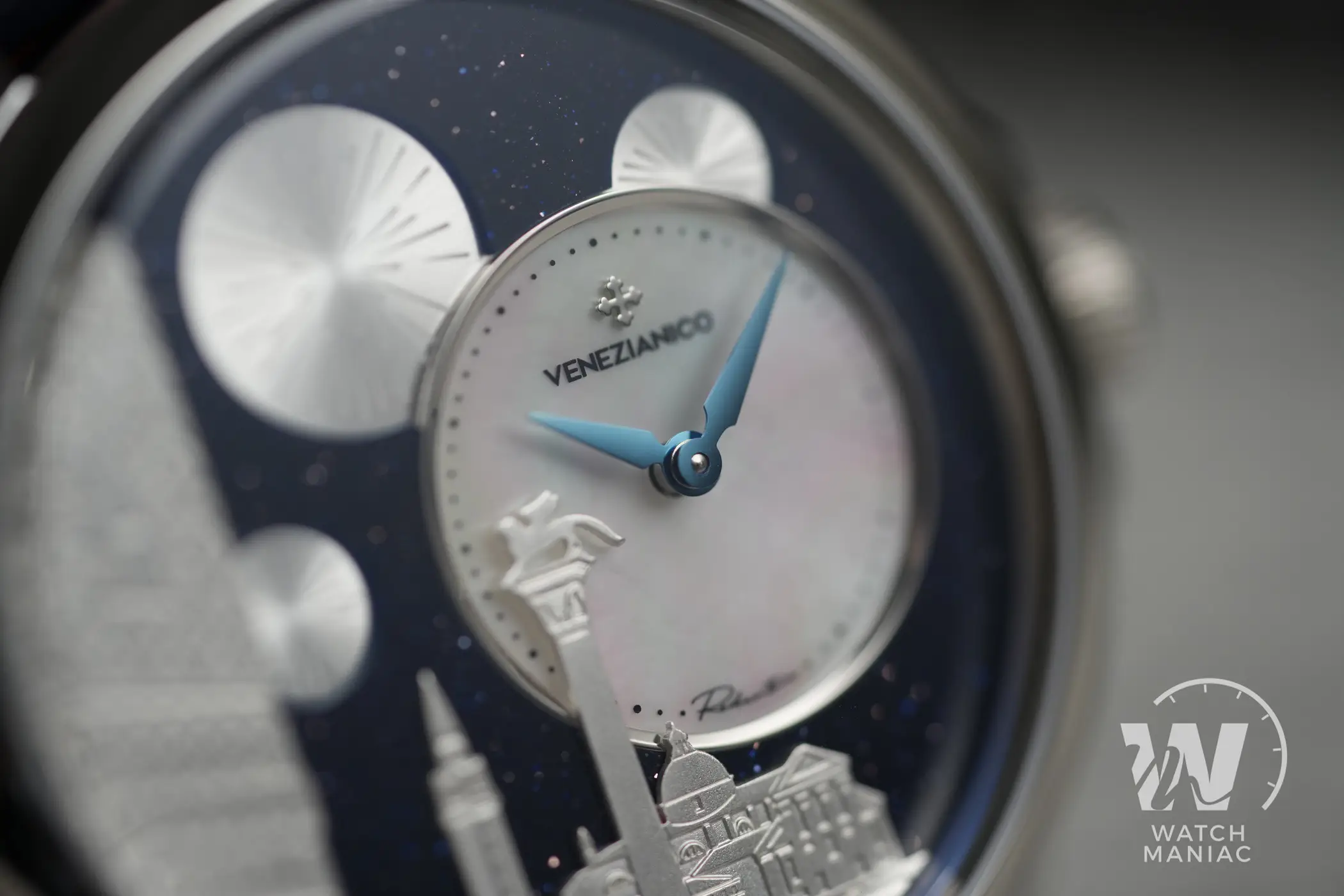 Venezianico, nel giro di pochissimi anni dalla sua fondazione, ha saputo far crescere in modo consistente il fatturato e la sua quota di mercato a suon di miglioramenti continui e intuizioni intelligenti. Il nuovo Redentore Bellanotte è un orologio davvero particolare, l’ennesimo progetto ambizioso per il marchio italiano, con un quadrante che è assolutamente unico nella sua fascia di prezzo. Intanto perché propone la soluzione di ore e minuti decentrati a destra, e poi perché ricrea uno scorcio suggestivo della città di Venezia. Scopriamolo insieme!