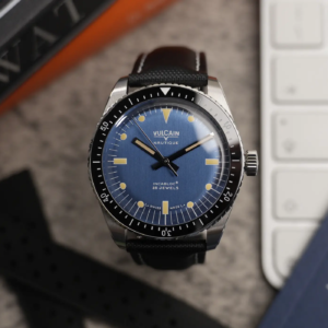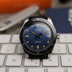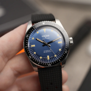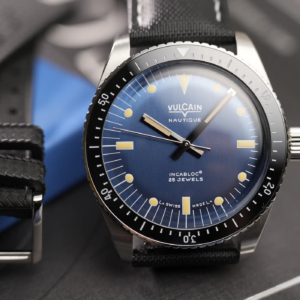 Le origini di questo modello, così come per tanti altri skin diver, risalgono ai primi anni ‘60 quando Vulcain, marchio svizzero fondato nel 1858, decise di avventurarsi nel settore degli orologi per immersioni ricreative. L’orologio presentato all’inizio del 2023 riprende in gran parte il design del primo Nautique. Il corredo, pur non essendo realizzato in materiali lussuosi, si presenta molto bene e la controscatola in cartone racchiude un cofanetto nero opaco con logo stampato sul coperchio. All’interno ci sono una piccola card, dove viene indicato di collegarsi al sito ufficiale per consultare il manuale di istruzioni, e un piccolo libretto con le informazioni relative alla garanzia internazionale.