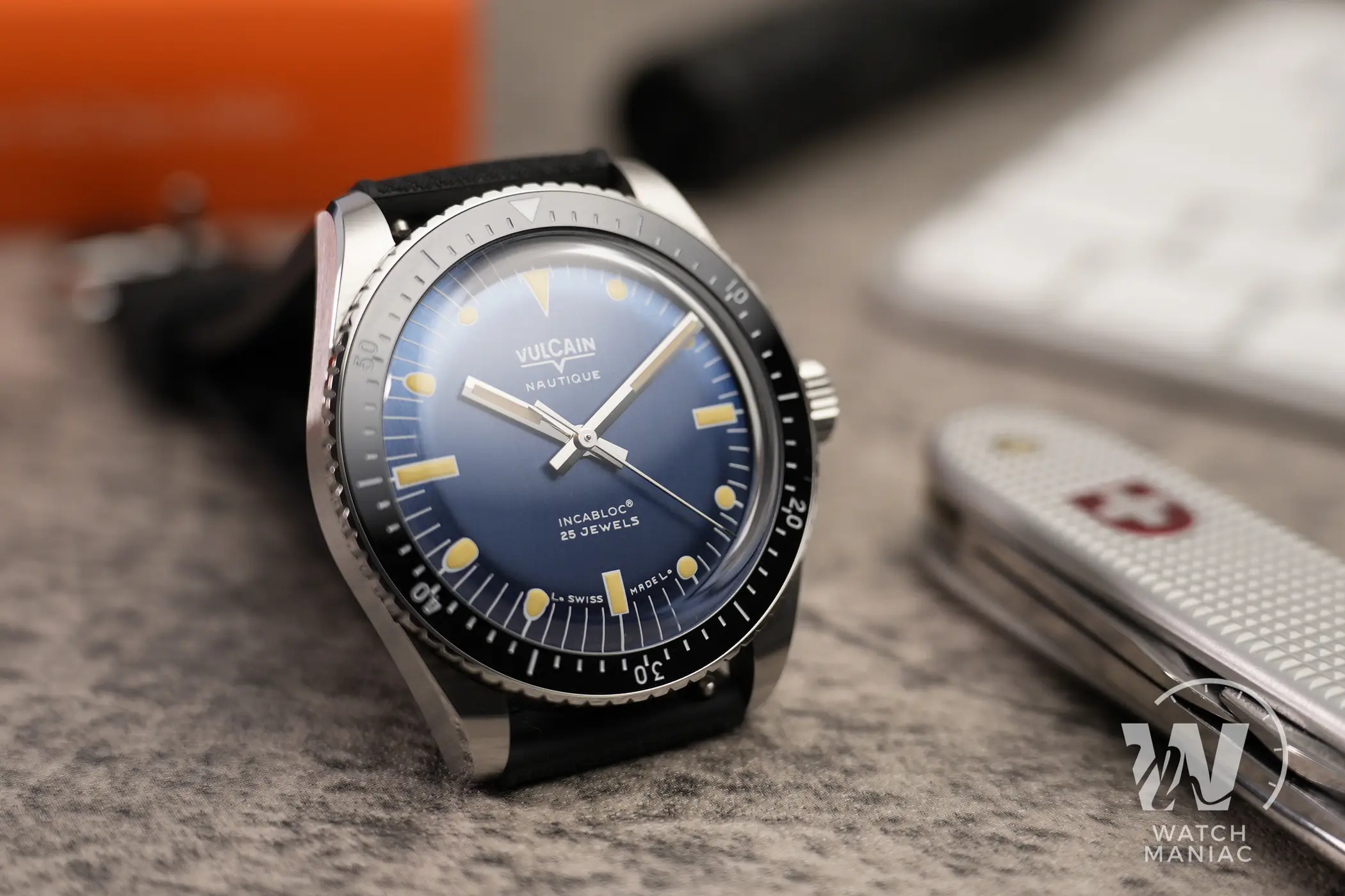 Le origini di questo modello, così come per tanti altri skin diver, risalgono ai primi anni ‘60 quando Vulcain, marchio svizzero fondato nel 1858, decise di avventurarsi nel settore degli orologi per immersioni ricreative. L’orologio presentato all’inizio del 2023 riprende in gran parte il design del primo Nautique. Il corredo, pur non essendo realizzato in materiali lussuosi, si presenta molto bene e la controscatola in cartone racchiude un cofanetto nero opaco con logo stampato sul coperchio. All’interno ci sono una piccola card, dove viene indicato di collegarsi al sito ufficiale per consultare il manuale di istruzioni, e un piccolo libretto con le informazioni relative alla garanzia internazionale.