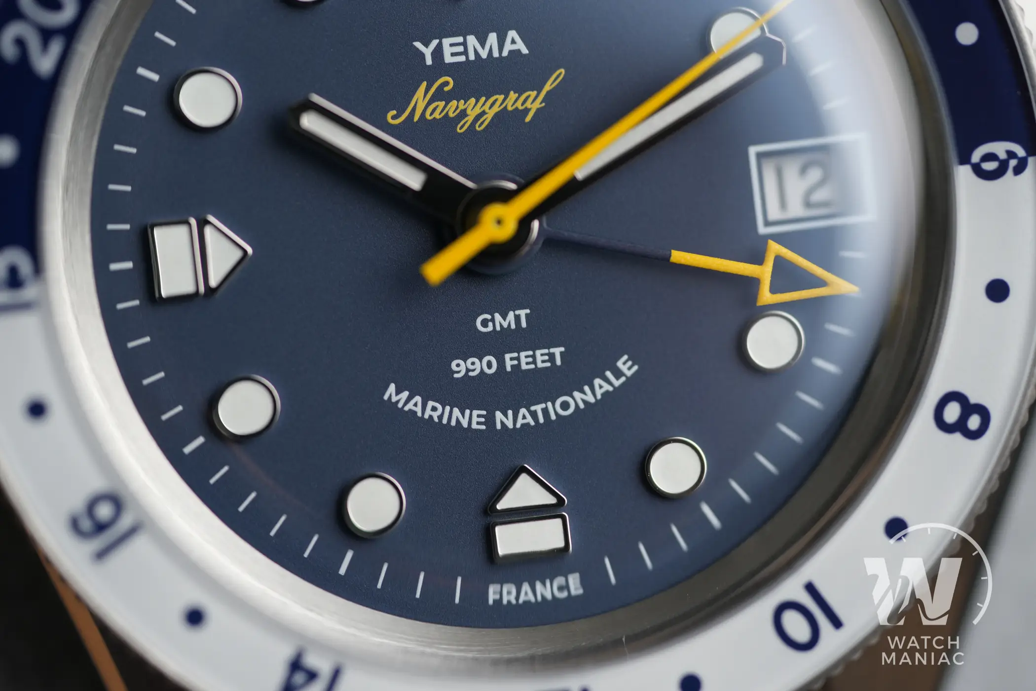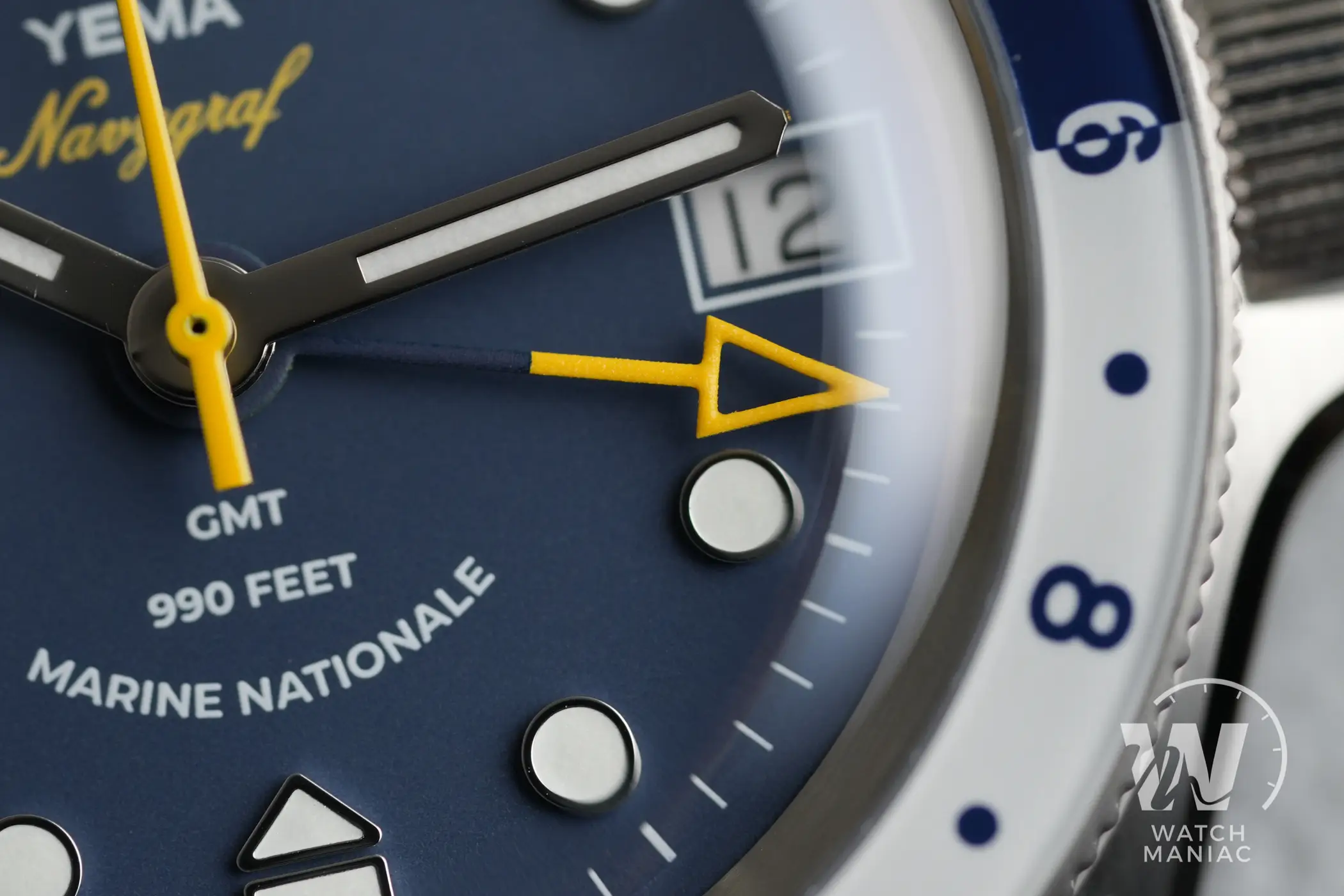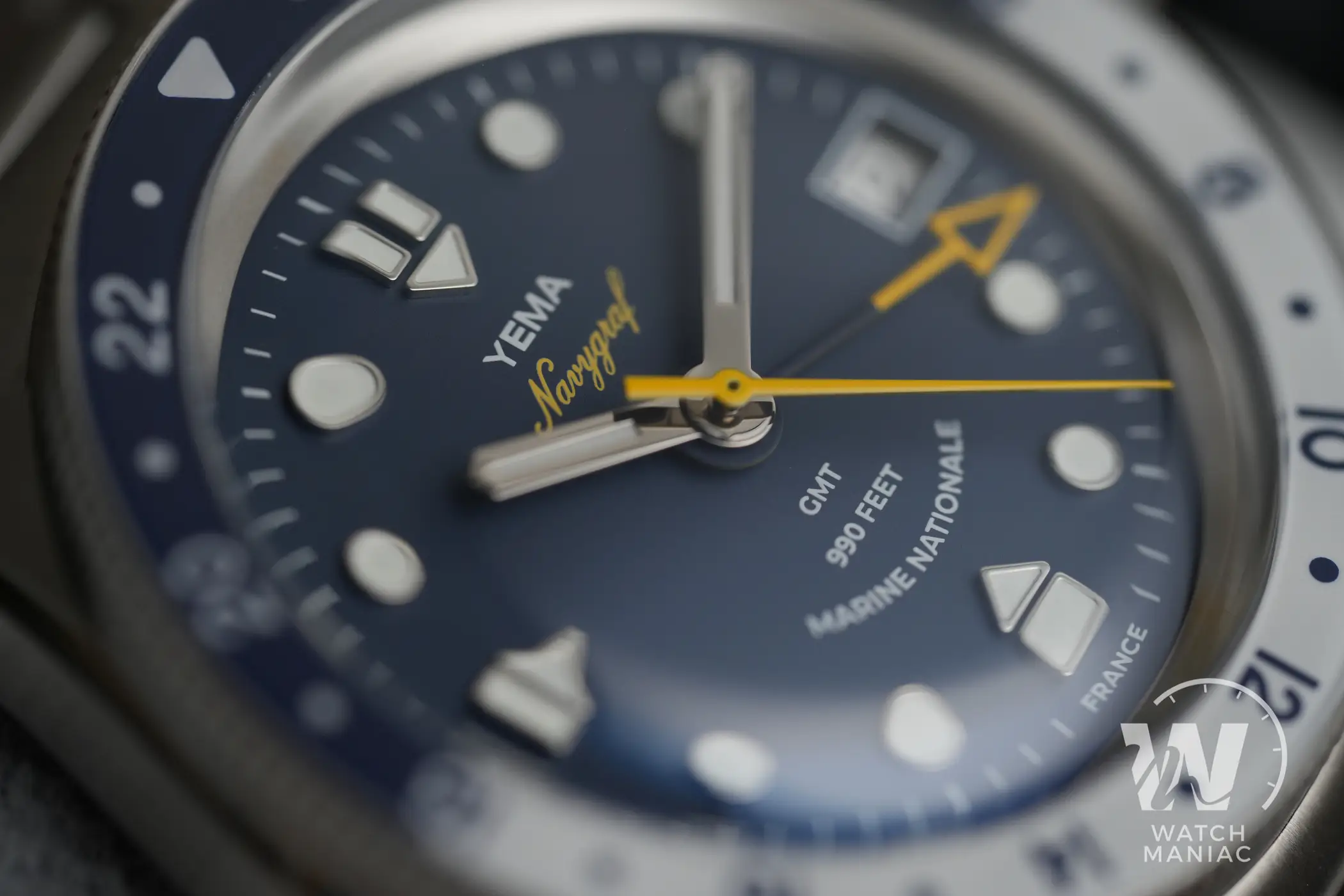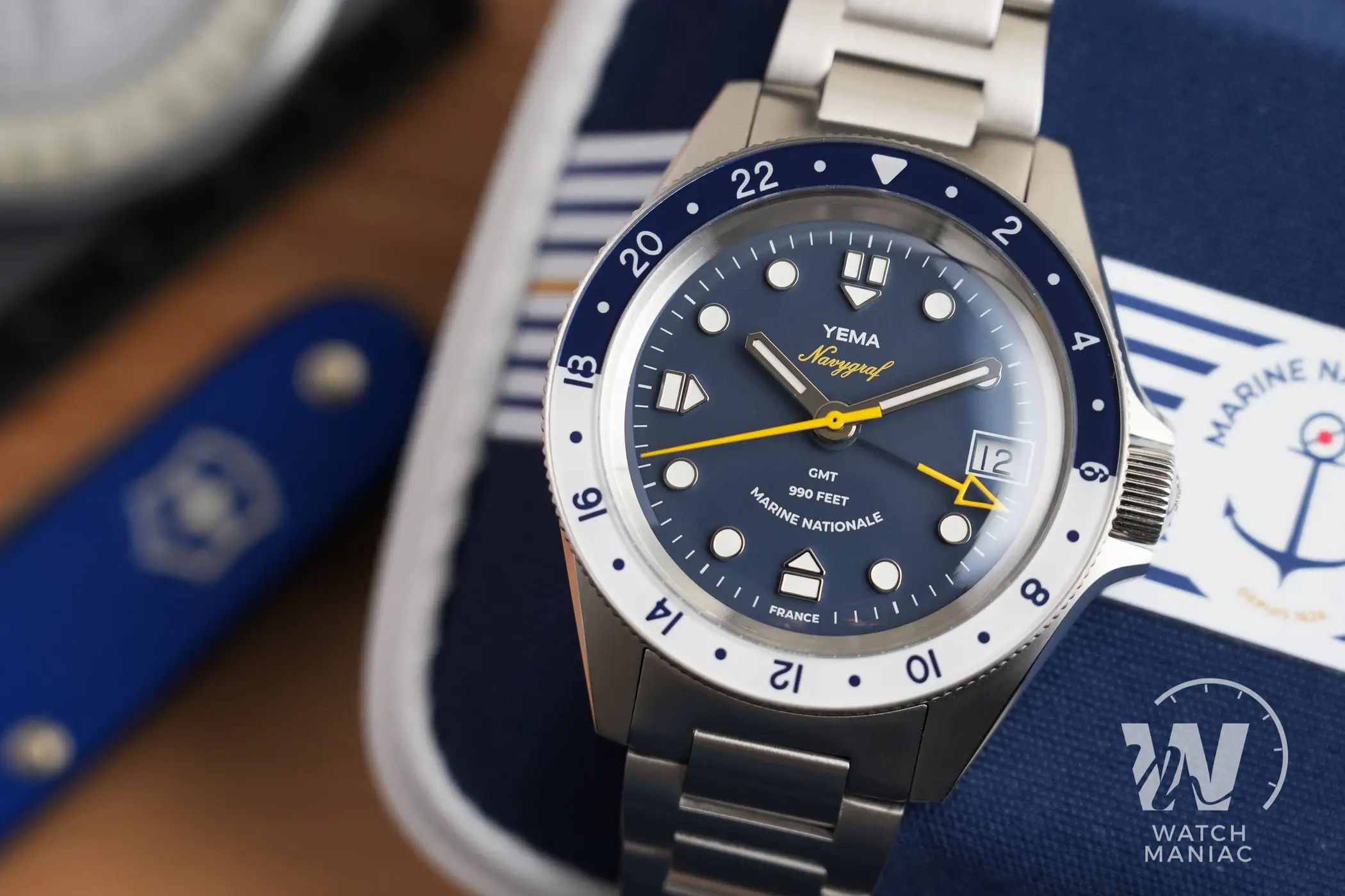 Il Navygraf GMT in collaborazione con Marine Nationale è uno dei modelli più interessanti tra tutti quelli presentati da Yema nel corso del 2023. Fin dal primo colpo d’occhio è possibile notare gli enormi passi avanti fatti sulla cassa rispetto ai modelli precedenti del marchio. Lo schema di colori scelto dal marchio francese non è totalmente innovativo, dato che è lo stesso utilizzato da Tag Heuer sull’Aquaracer GMT. Però, a scanso di equivoci, le somiglianze si esauriscono lì perché è non c’è neppure un singolo dettaglio estetico in comune tra i due orologi.