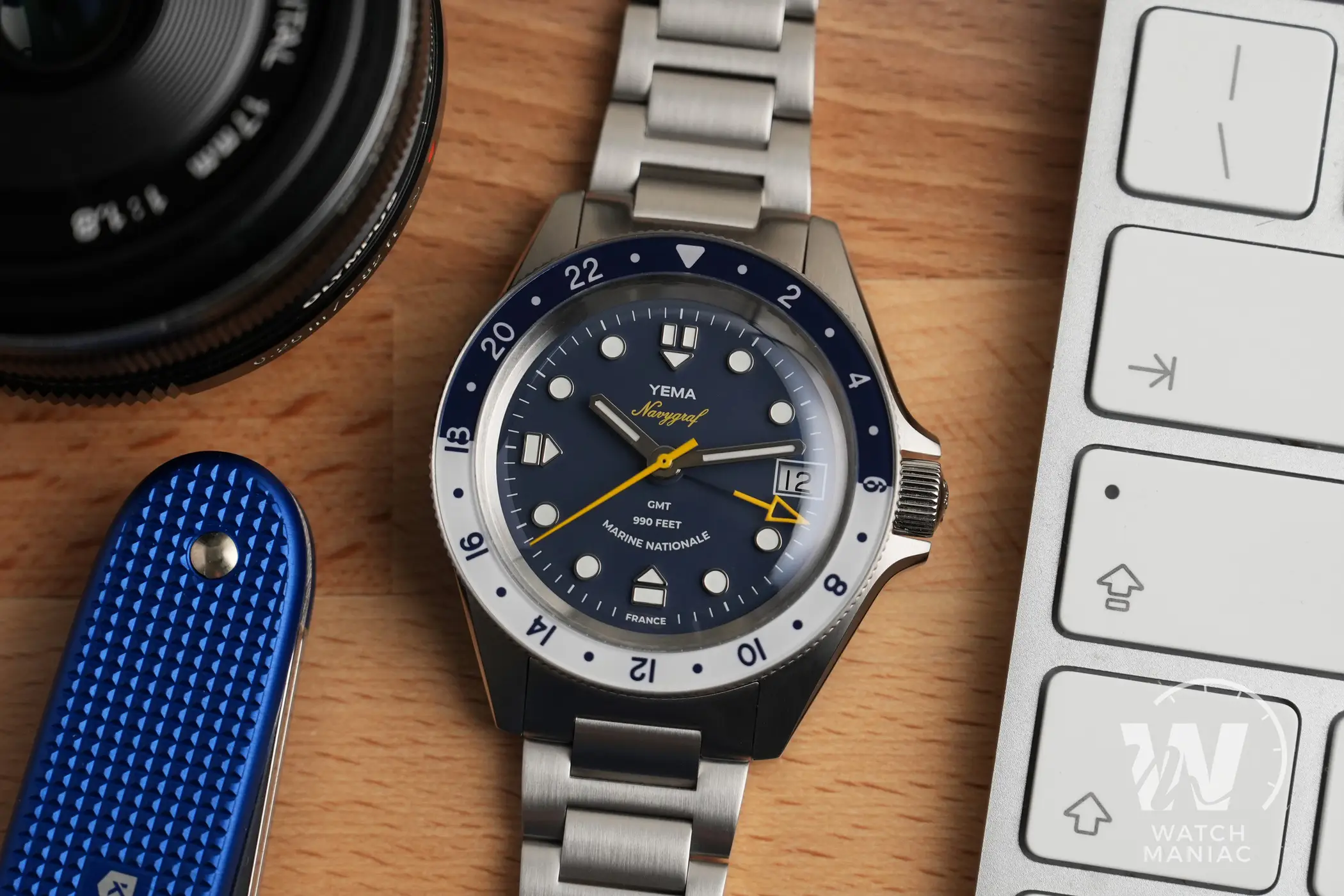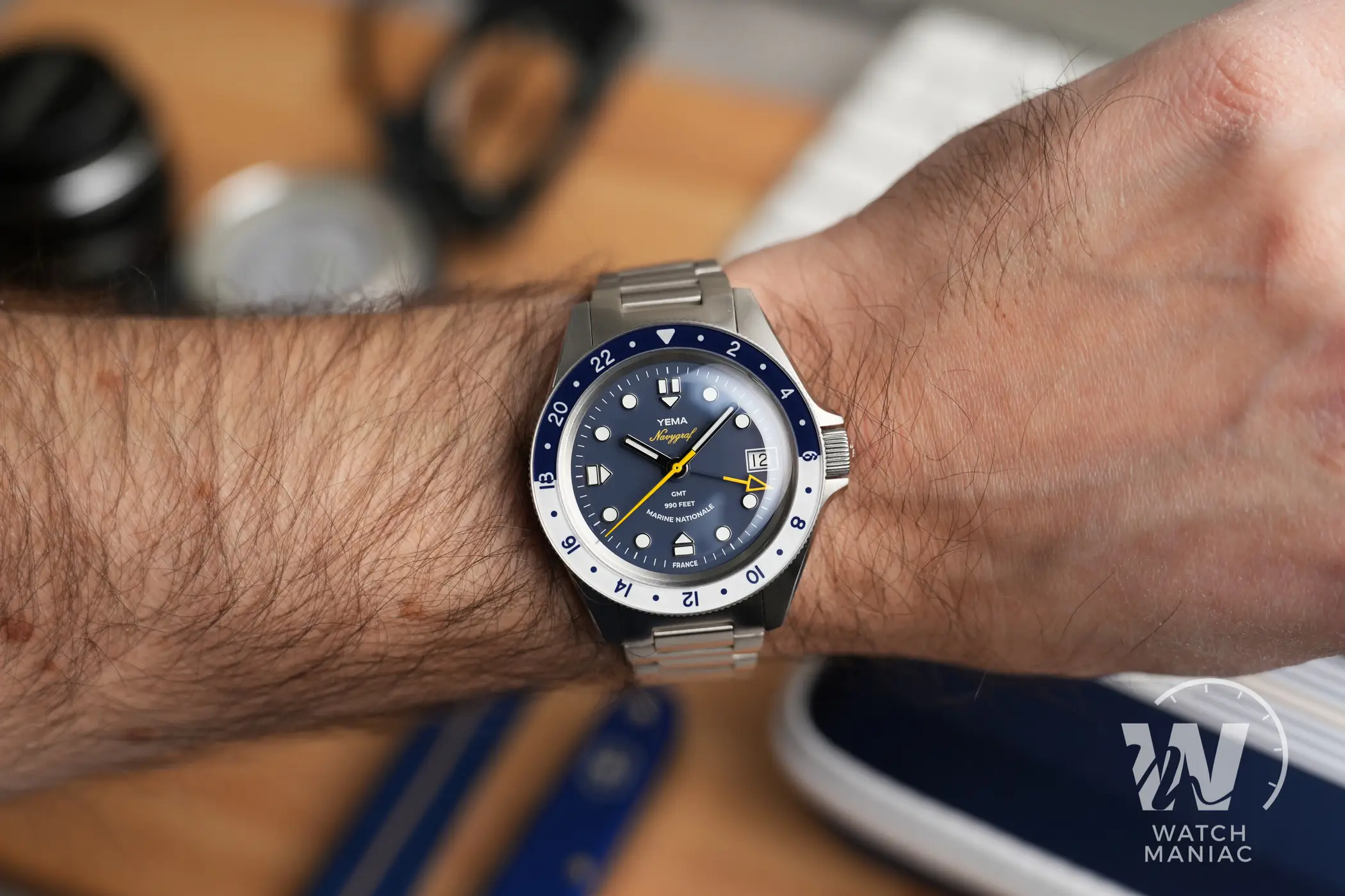 Il Navygraf GMT è uno dei fiori all’occhiello all’interno della produzione di diver di Yema e non si può fare a meno di sottolineare gli enormi passi avanti fatti dal marchio francese per quanto riguarda finiture e lavorazioni delle casse. Le proporzioni sono azzeccate e anche chi non ama troppo gli orologi più compatti sarà soddisfatto della sua vestibilità. Con il cinturino elasticizzato diventa comodissimo da indossare e i colori di sfere e quadrante risaltano ancora di più. Nota di merito, poi, per l’ottima luminescenza al buio su sfere e indici e solo sulla ghiera potrebbe essere migliorata. Il prezzo di listino è di 1.349€.