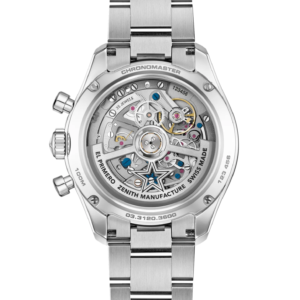 Il Chronomaster Sport Meteorite mantiene il DNA del A386 del 1969 ed è animato dal calibro El Primero 3600, un’icona dell’orologeria svizzera con frequenza a 5 Hz (36.000 alternanze/ora) e riserva di carica di 60 ore. Il sistema cronografico è in grado di misurare il tempo con una precisione al decimo di secondo e la lancetta cronografica compie un giro completo in soli 10 secondi. La cassa è in acciaio e misura 41mm diametro, 13,6mm di spessore e 47mm di lug to lug. È impermeabile fino a 100 metri e ha il fondello in vetro zaffiro che permette di ammirare il movimento con ruota a colonna rodiata blu. Il bracciale, sempre in acciaio, è a tre maglie ed alterna finiture lucide e satinate. In confezione è poi fornito di serie anche un cinturino nero in gomma.
